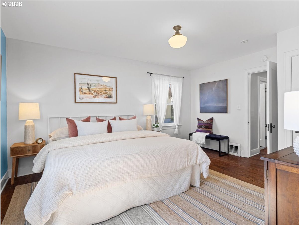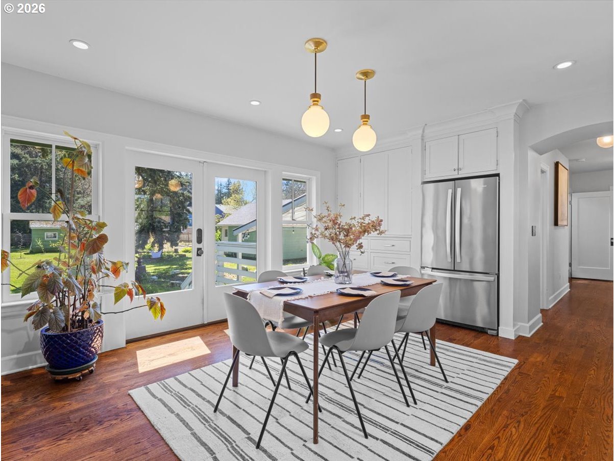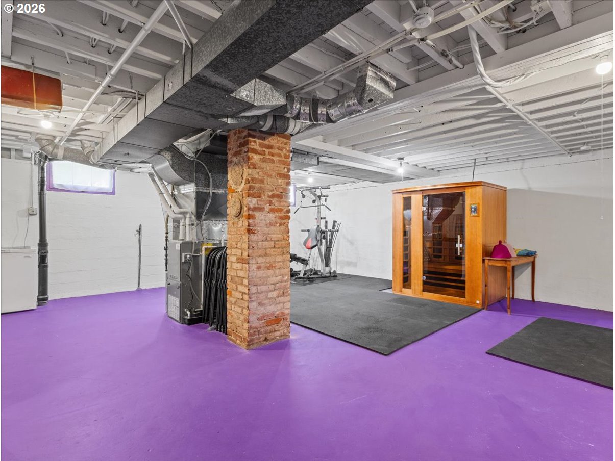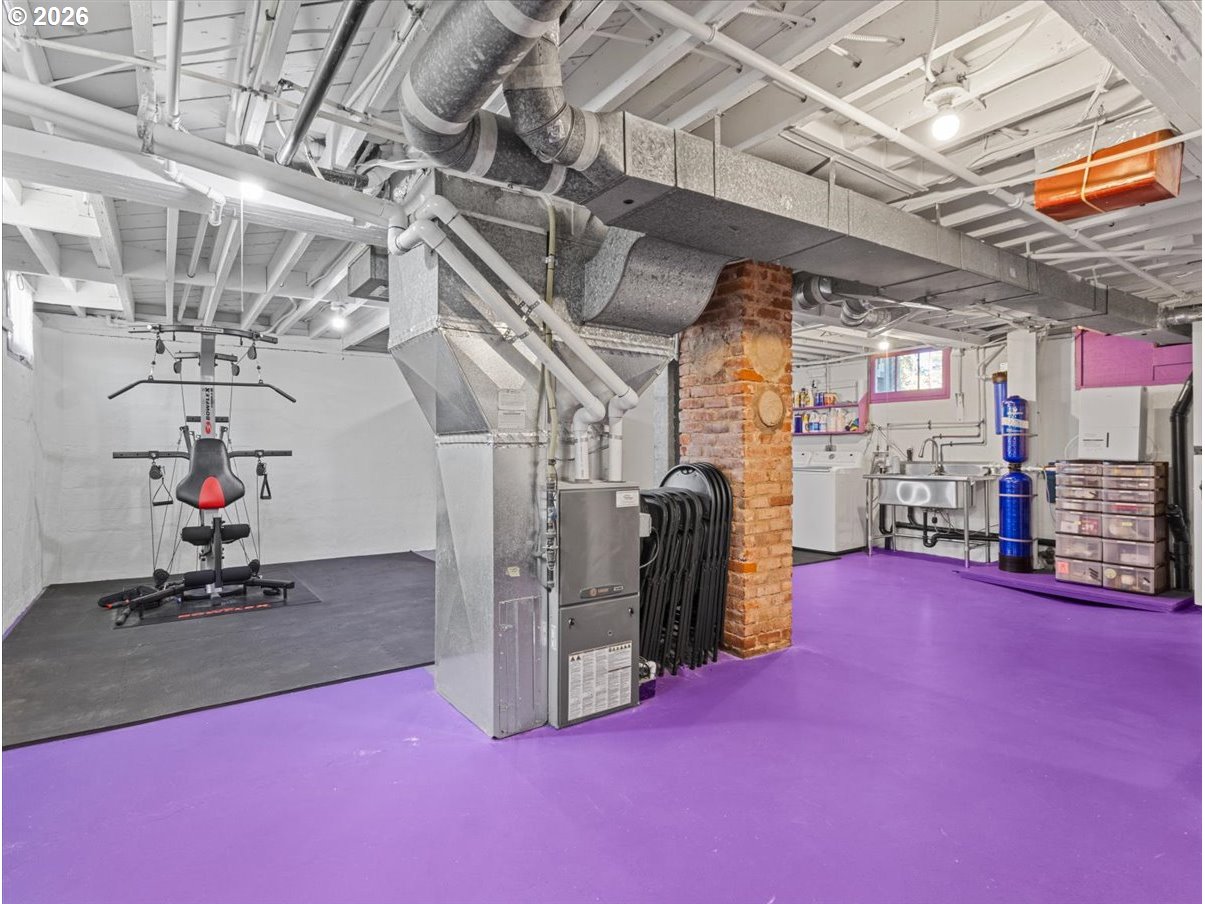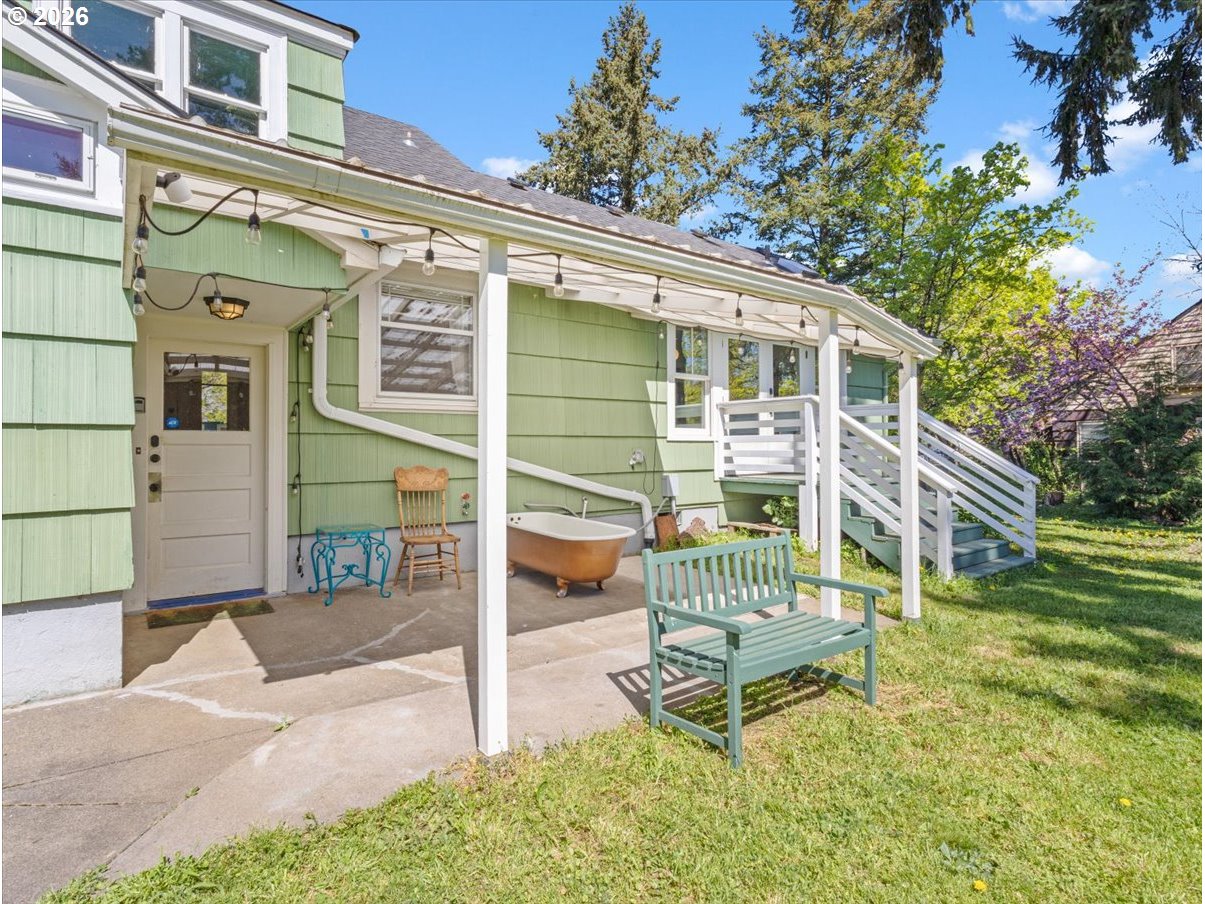 This is the one people wait years for! On a sweet side street in inner SE, this 1926 Craftsman bungalow sits on just over half an acre... an almost unheard-of slice of land this close in. It’s been thoughtfully revived and deeply loved and you can tell... Inside, the renovation hits all the right notes. The eat-in kitchen is the heart of the home with a farm sink, high-end gas stove, marble counters, and French doors that open straight to the backyard... perfect for slipping out to snip herbs mid-dinner. The main floor lives easy with a spacious primary bedroom, a dedicated office/2nd bedroom, and nicely remodeled bath. Upstairs, you’ll find two more generous bedrooms. Design lovers will appreciate the details: Schoolhouse and Rejuvenation lighting, Pratt & Larson tile, and reclaimed gym flooring from Kellogg Middle School that adds both story and soul. Downstairs, an unfinished basement with super high ceilings offers more potential, it already has workout space with the bonus of a sauna already in place. The systems are solid and updated: central A/C, radon mitigation, whole house water filtration, newer electrical panel and gas furnace—so you can focus on living, not fixing. And then there’s the land. The front yard is a native plant haven with wild strawberries, Oregon iris, ferns, and red flowering currant all buzzing with life. Out back, it’s a full-on edible landscape with plums, cherries, blueberries, figs, and espaliered apples and pears, including some heritage varieties. Towering Douglas firs frame the space, giving it that tucked-away private feel, with plenty of room to expand your vision. A back patio with hot and cold water, a firepit and an oversized two-car garage, plus tool and woodsheds round out the property. Zoning allows for potential flag lot and additional build. Or an ADU? Tiny house? All of this, just minutes from the charm of Woodstock restaurants, shops and parks. It’s not just a home, it’s an urban homestead with roots and room to grow! [Home Energy Score = 1. HES Report at https://rpt.greenbuildingregistry.com/hes/OR10029418]