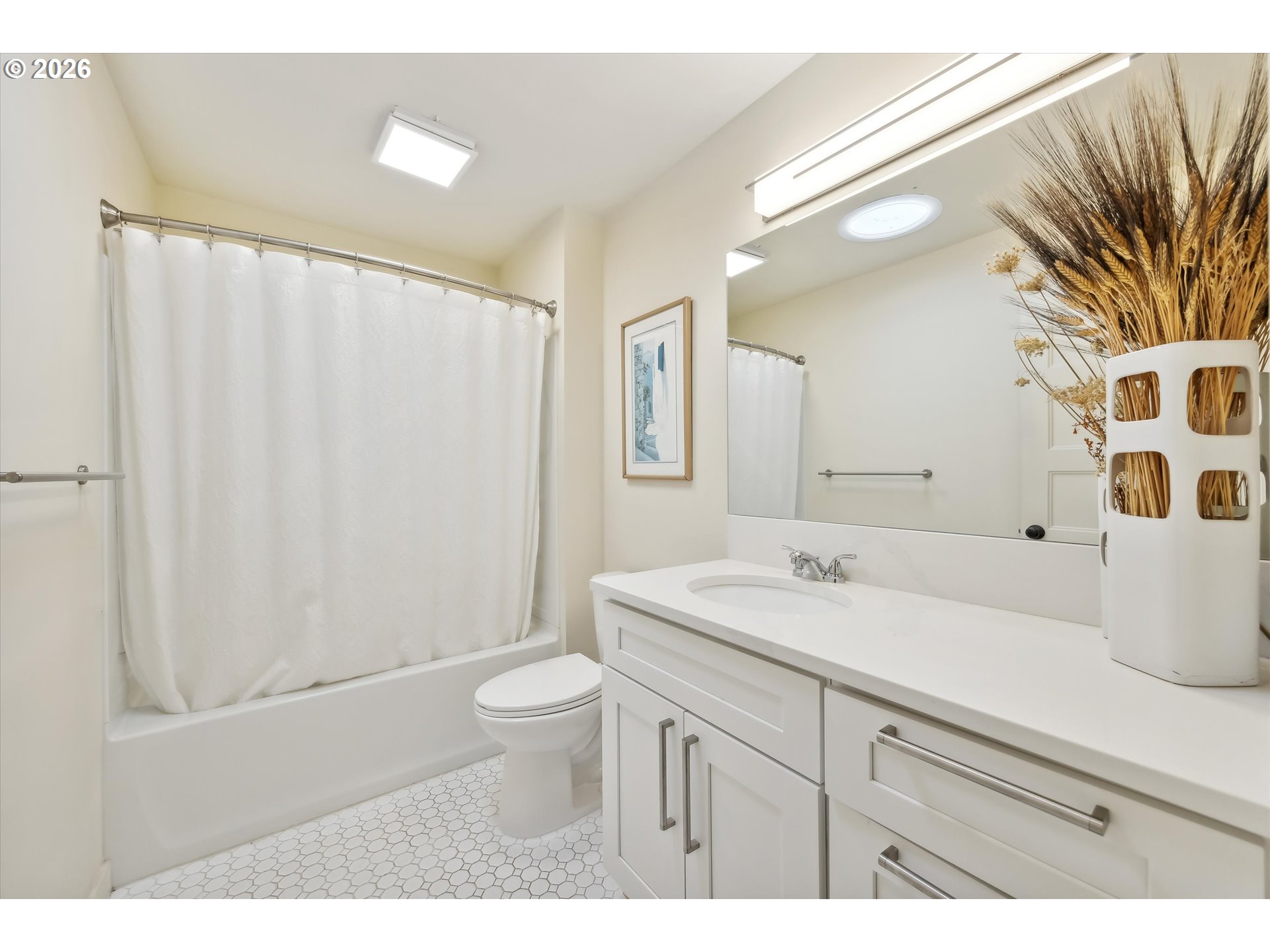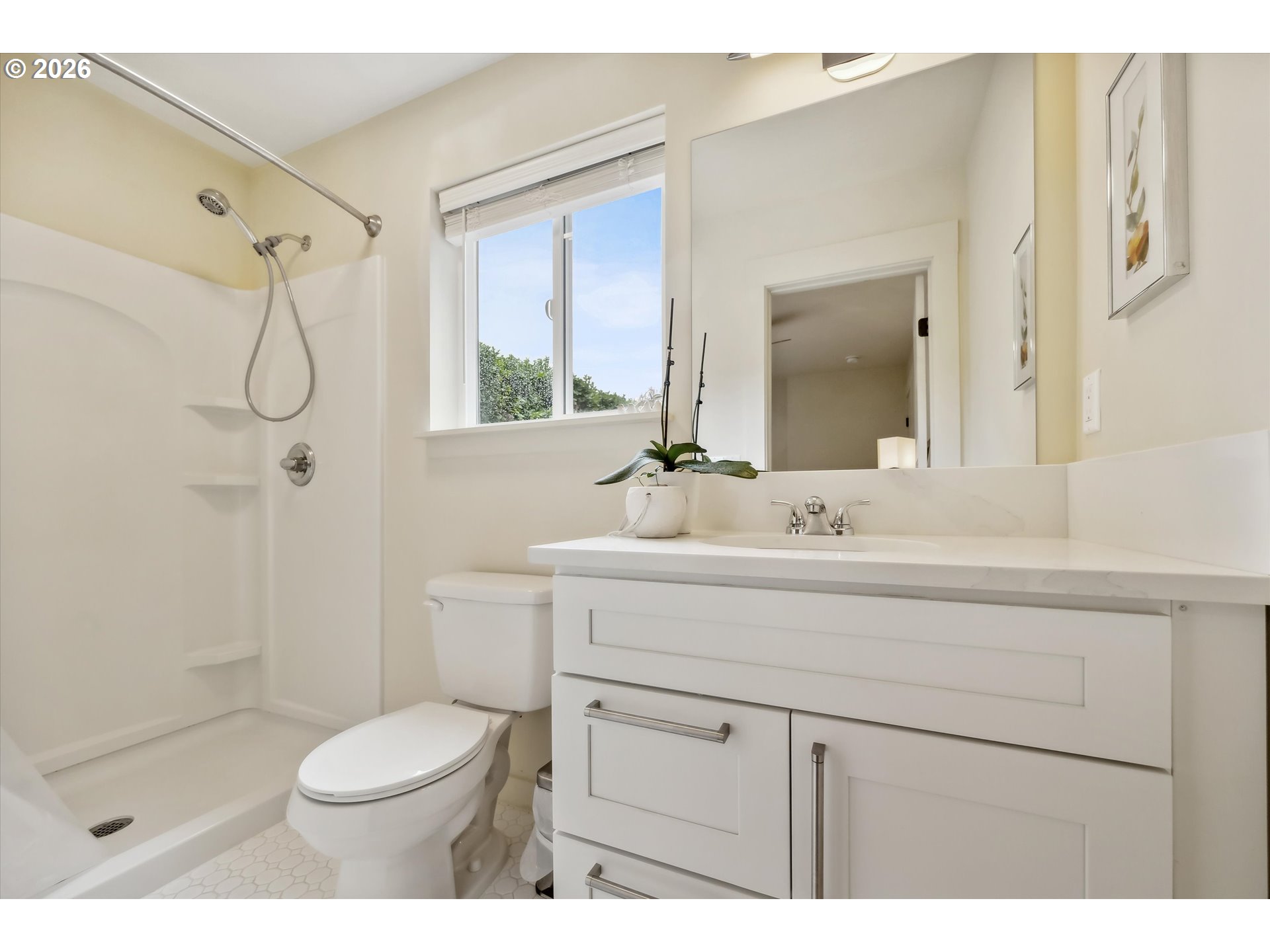 Modern University Park Home remodeled in 2018. This light-filled home offers easy one-level living with an open floor plan, engineered wood floors, and a seamless flow between the living, dining, and kitchen spaces. The kitchen features quartz countertops, stainless steel appliances, and a large island —perfect for everyday living and entertaining — with direct access to the spacious backyard.The primary bedroom is a true suite with a walk-through closet and private bathroom, complemented by three additional bedrooms and two full baths.The lower level provides generous storage space. Situated on a quiet street with alley access. The large backyard offers room to relax, entertain, or explore future ADU potential. Conveniently located with access to the University of Portland and a variety of amenities, including New Seasons, restaurants, and more. [Home Energy Score = 8. HES Report at https://rpt.greenbuildingregistry.com/hes/OR10123489]