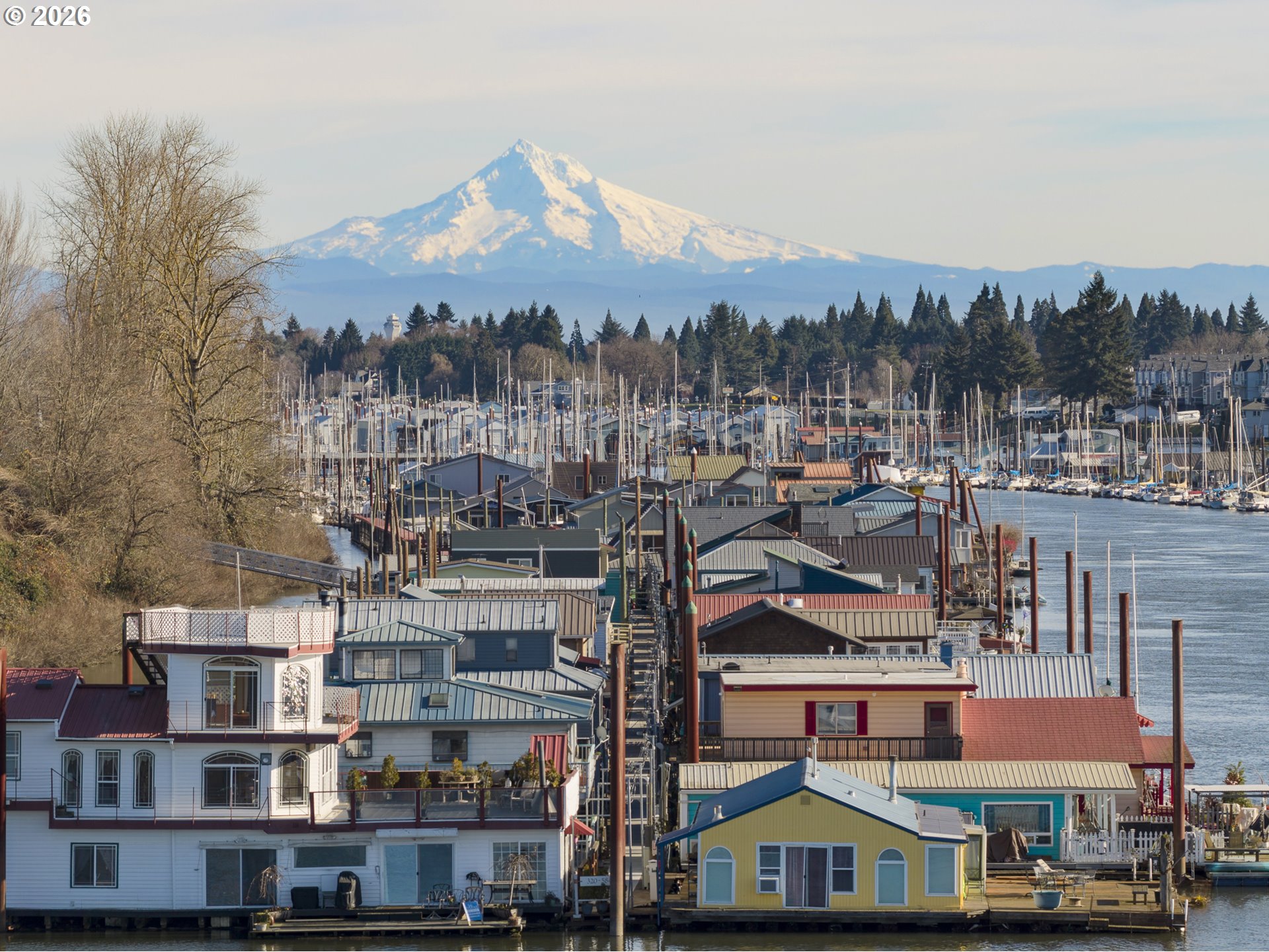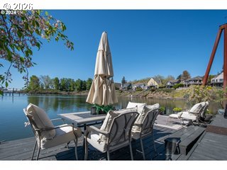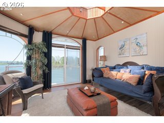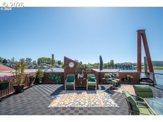 Two homes in one—on the water. This rare duplex style home was originally designed as two residences, the home provides exceptional versatility: live in one and offset costs by renting the other (minimum 6-month rentals allowed), create a multi-generational setup, co-own with a friend, design a live/work lifestyle, or enjoy the entire home as a spacious retreat. Set on one of the largest slips in Tomahawk Floating Home Community, this home features unobstructed river views, a private boat garage/well, sun room, and multiple decks designed for true waterfront living. A beautiful wood spiral staircase inside connects both levels, allowing the home to function as one cohesive space or be closed off & locked for privacy when used as two separate residences.The main level includes a remodeled chef’s dream kitchen with a gas range, granite counters,, custom cabinetry, a large prep island, and excellent storage, opening to living & dining spaces with wall-to-wall river views and access to a private deck for al fresco dining. This level also includes a bedroom, 3/4 bath, sun-porch entry, and access to the enclosed boat well/garage.The upper residence offers its own private entrance, full kitchen, inviting living room with pellet stove, primary suite with ensuite bath and walk-in closet, additional bedroom, and expansive water views. A light-filled sun room on the 3rd level provides flexible space for an office, studio, or retreat, with access to rooftop decks for unbelievable sunrise views over the mountain to the east & sunset views to the west. Slip ownership included. HOA $430/month covers water, sewer, and garbage. Pet-friendly community. Float rated a 4. Enjoy an active, social moorage with gatherings and shared gardening, plus the added distinction of a certified yacht club with reciprocal privileges worldwide—bringing both connection and adventure right to your doorstep. **Don't forget to check out the virtual tour!