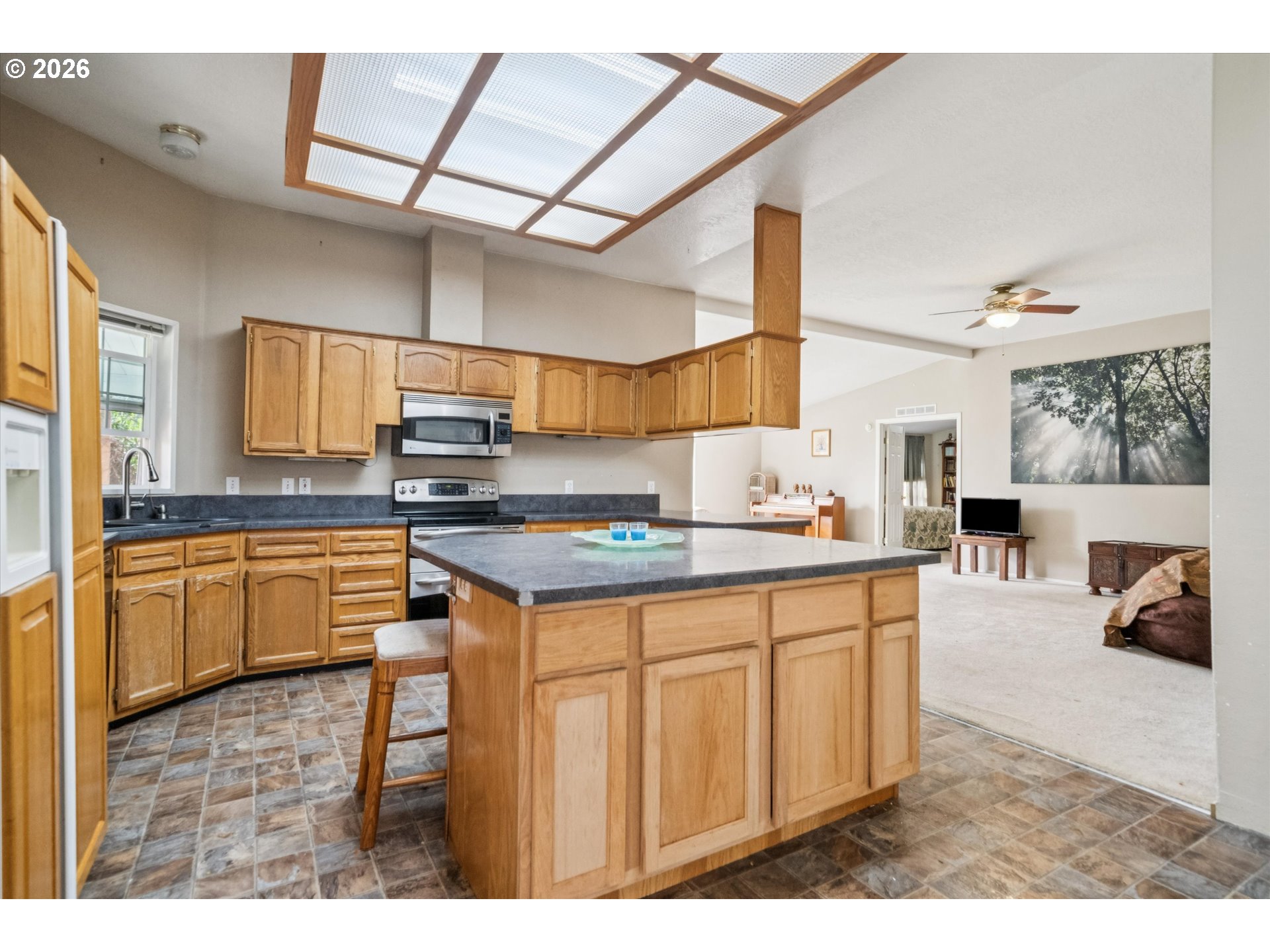 Opportunity awaits with this triple-wide manufactured home set on a generous 0.8-acre (34,848 sq ft) lot, nestled on a quiet road and surrounded by peaceful green space. Featuring 3 bedrooms and 2 bathrooms, the home offers a spacious, open layout with over 9’ ceilings, two large living areas, and abundant natural light from windows spanning the entire perimeter, plus a skylight in the primary bathroom.The open kitchen is designed for functionality and gathering, with a large central island, ample counter space, and plentiful cabinetry. The primary suite includes a 9’ x 6’ walk-in closet and a private bath with dual sinks, a soaking tub, and a separate shower. A cozy pellet stove adds warmth and charm to the living space.Outdoor features shine with a massive front and backyard, ideal for gardening, play, or simply enjoying the surrounding wildlife and private nature trail. The front porch offers a welcoming space for relaxing or entertaining. A 60’ x 20’ level concrete driveway provides abundant parking for vehicles, RV, boat, or trailer, and includes an outlet suitable for RV hookup or potential EV charging.Conveniently located with easy access to I-5 and I-205, and just a short commute to Portland Airport and Vancouver, WA. Close proximity to the Columbia River and Gleason Boat Ramp adds to the appeal for outdoor enthusiasts.Home is supported on a poured concrete foundation with earthquake straps and is ready for updates—bring your vision, tools, and creativity to restore and build equity in this serene, nature-filled setting.