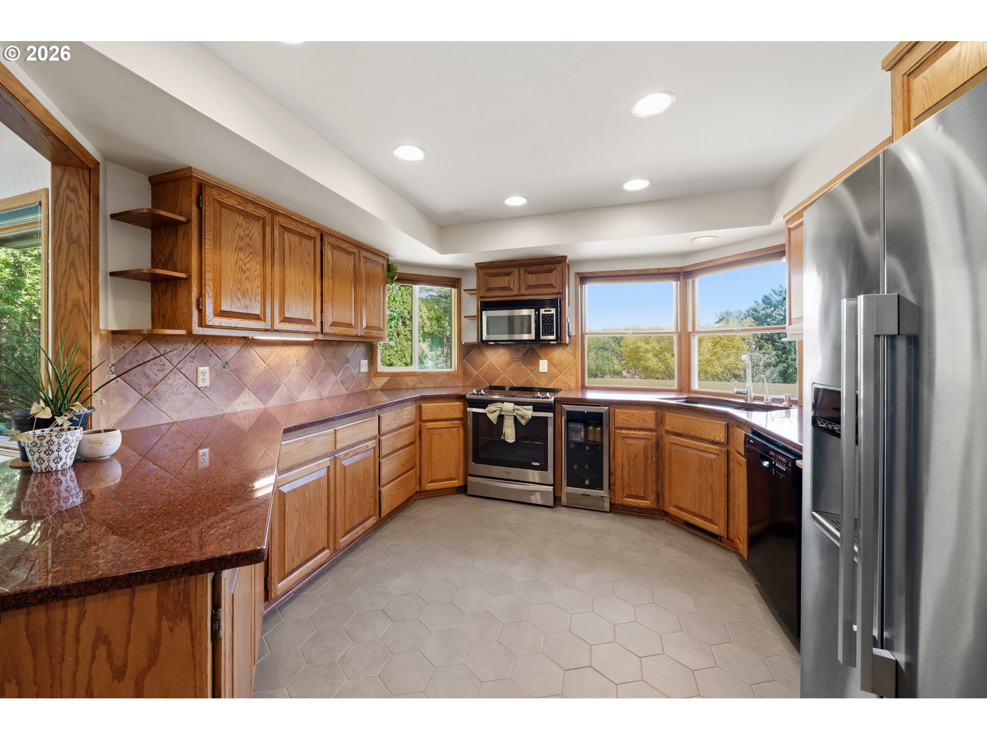 Dishwasher, FreeStandingRange, FreeStandingRefrigerator, StainlessSteelAppliance, Tile, WineCooler