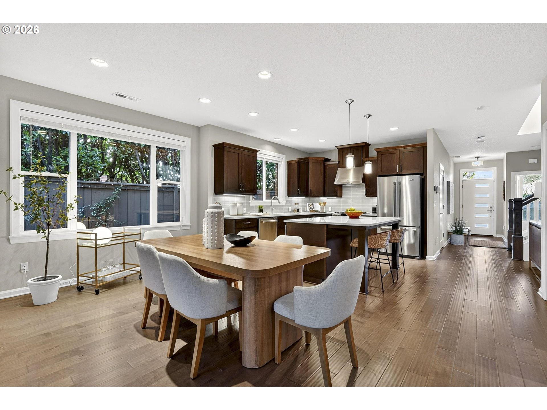 If you’re looking for easy living, an exceptional layout, and a prime location, this lightly lived-in 2017 Concordia Contemporary/Prairie style home is the one. The open-plan main level features high ceilings, hardwood floors, and abundant windows, creating a bright and inviting space that’s ideal for both everyday living and entertaining. The gourmet kitchen offers all the bells and whistles including stainless appliances, quartz counters, and a spacious pantry, plus a charming nook perfect for a home office. Just off the spacious living room with gas fireplace and custom built-ins you’ll find easy access to the delightful back garden with a custom shed for additional storage. Sun-filled stairs lead to a generous primary suite, two additional bedrooms, a second full bathroom, a library/office loft, and laundry. Set on a charming block in a sought-after neighborhood with easy access to the Kennedy School, New Seasons, Alberta Street, and more. LEED certified with an impressive Home Energy Score of 9. [Home Energy Score = 9. HES Report at https://rpt.greenbuildingregistry.com/hes/OR10109926]