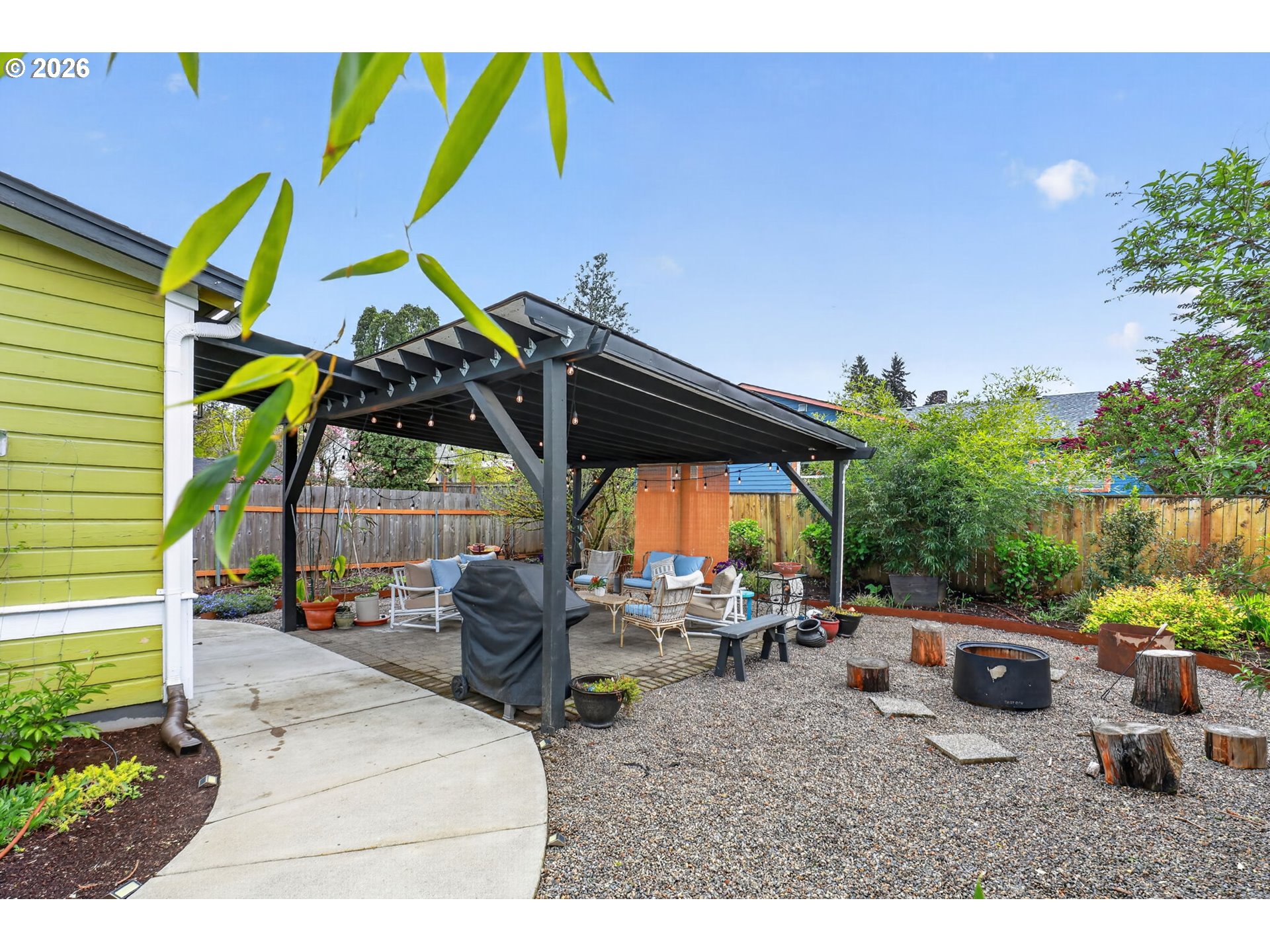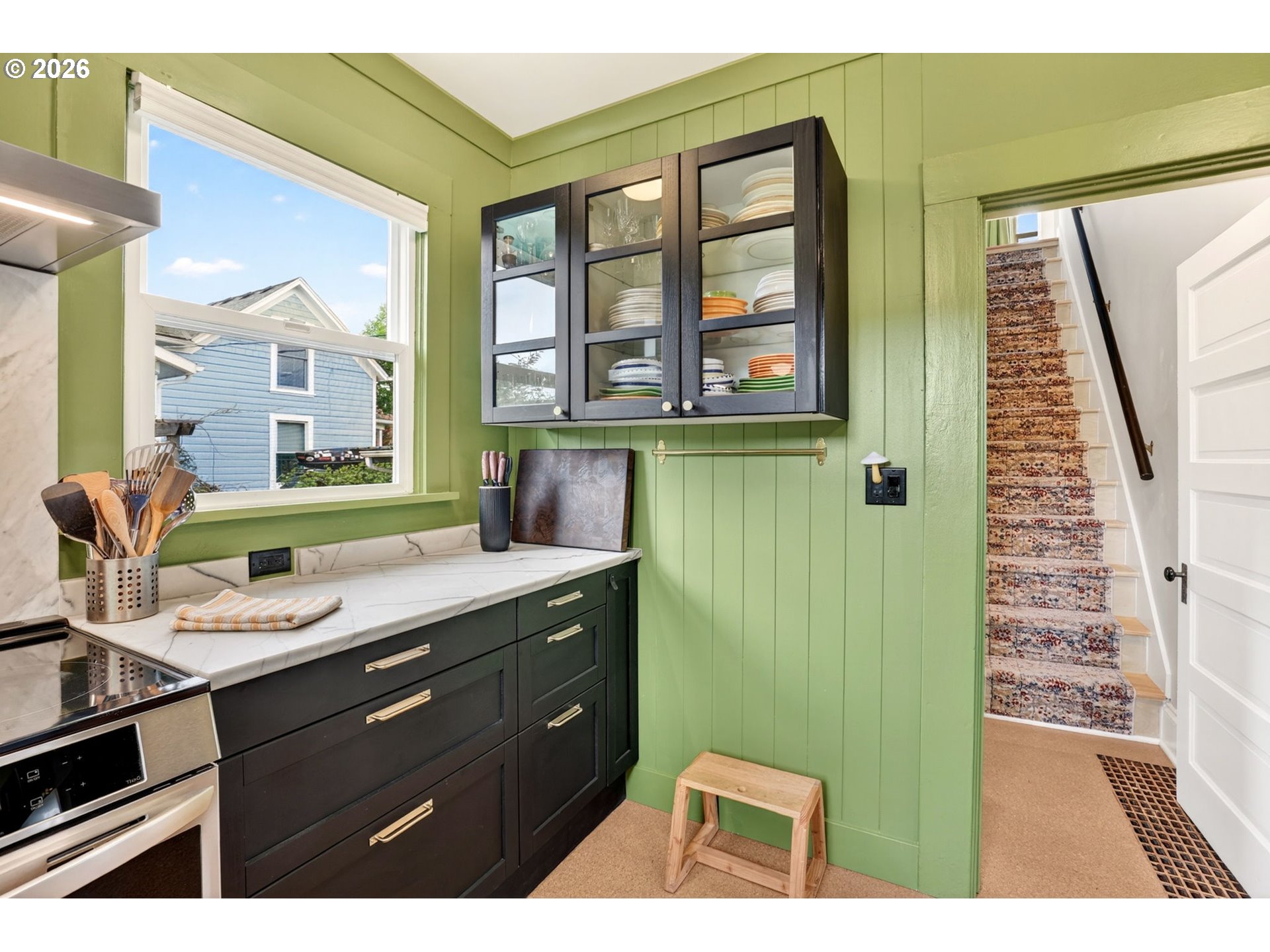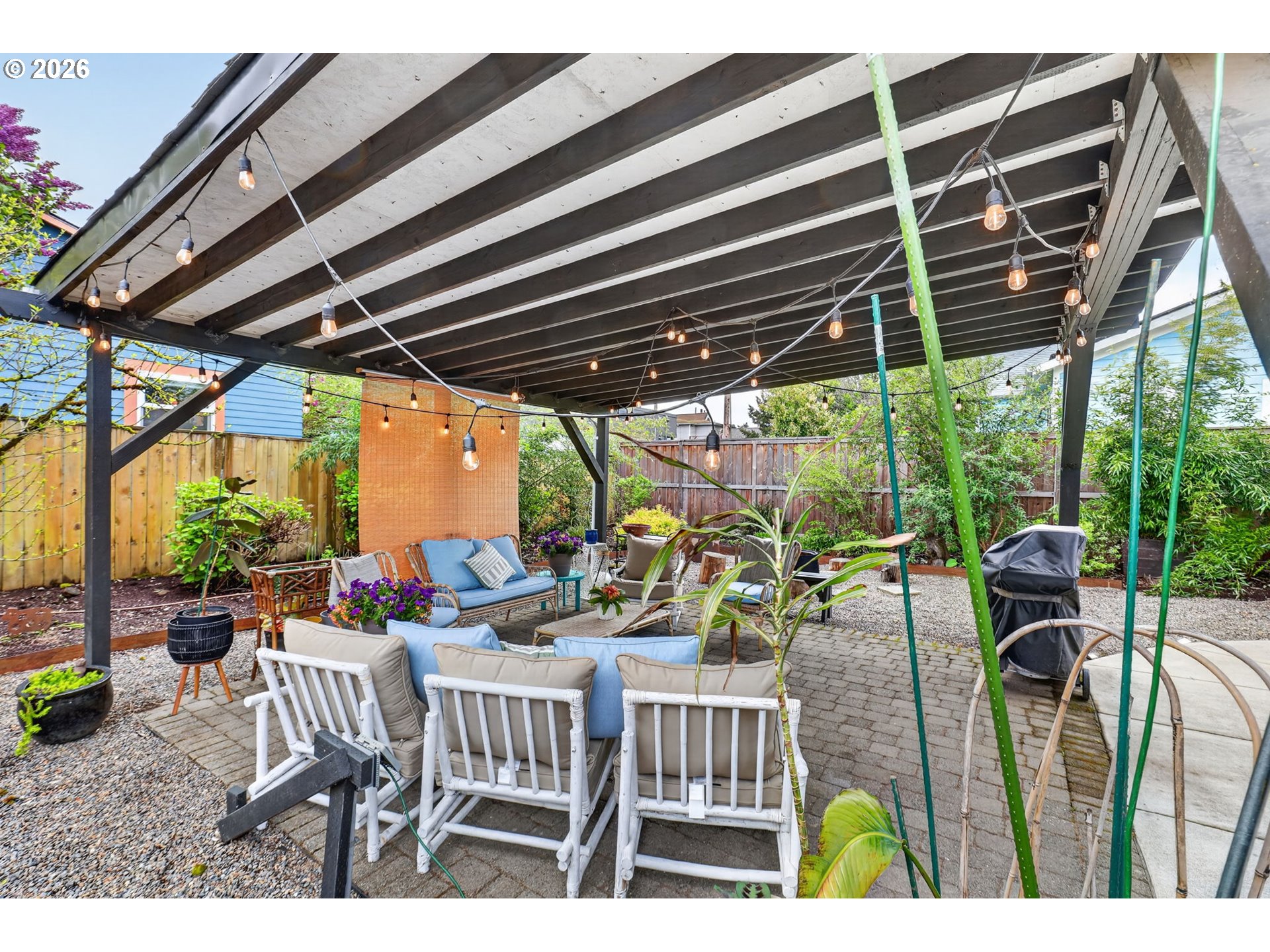 This vintage Victorian gem has been conscientiously and lovingly upgraded by her owner over the past two decades. Thoughtful remodeling throughout enhanced and restored character and architectural details, while adding sophistication and modern conveniences through the full kitchen remodel, lower bathroom remodel, and upper bathroom addition. The new 2025 kitchen leads to a sun-filled vaulted vestibule before flowing out through French doors to the outdoor living room. There, the seller has created a 15ftx16ft covered patio and dedicated areas for outdoor fireplaces and bbq'ing. The backyard is fully fenced and gated on both sides. Drip irrigation supplies perennials and evergreens, pollinators and vines (see plant list), making this a serene retreat. Add raised garden beds on the west side in time for veggie planting this summer! Upgrades to this home, (and too much to list here, please see the full list): 2026 96% efficiency Carrier furnace, 2026 hot water heater. 2022 Carrier central A/C. 2018 200amp panel (with surge protection), wiring and outlets throughout most of the home. All radiant upper-level heat system, 2021. New 2025 kitchen (see improvements list for details). 2025 new wood interior staircase with carpet runner. 2021 upgrade to upper bathroom to include subway tile shower and radiant tile flooring. 2021-2022 vestibule concrete steps and outdoor concrete walkways. Blown-in insulated exterior walls and attic. Covered carport and concrete parking pad. There is more! See full improvements list. (One disclosure note: the main floor bedroom is currently a reading room. Add back the wall, a French door, or trolley door to re-create a true bedroom.) North Mt. Tabor location, close to Max line, hospital, shopping and restaurants with high walk, transit, and biking scores. No open houses scheduled as per seller request. Private showings only. Offers due Monday by 5pm. [Home Energy Score = 4. HES Report at https://rpt.greenbuildingregistry.com/hes/OR10246666]