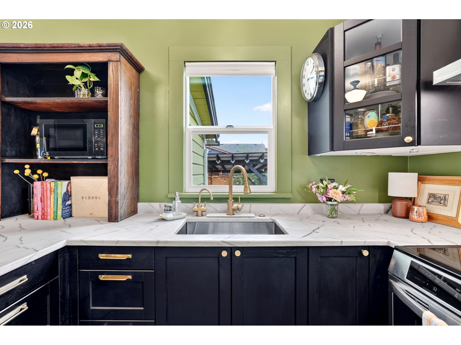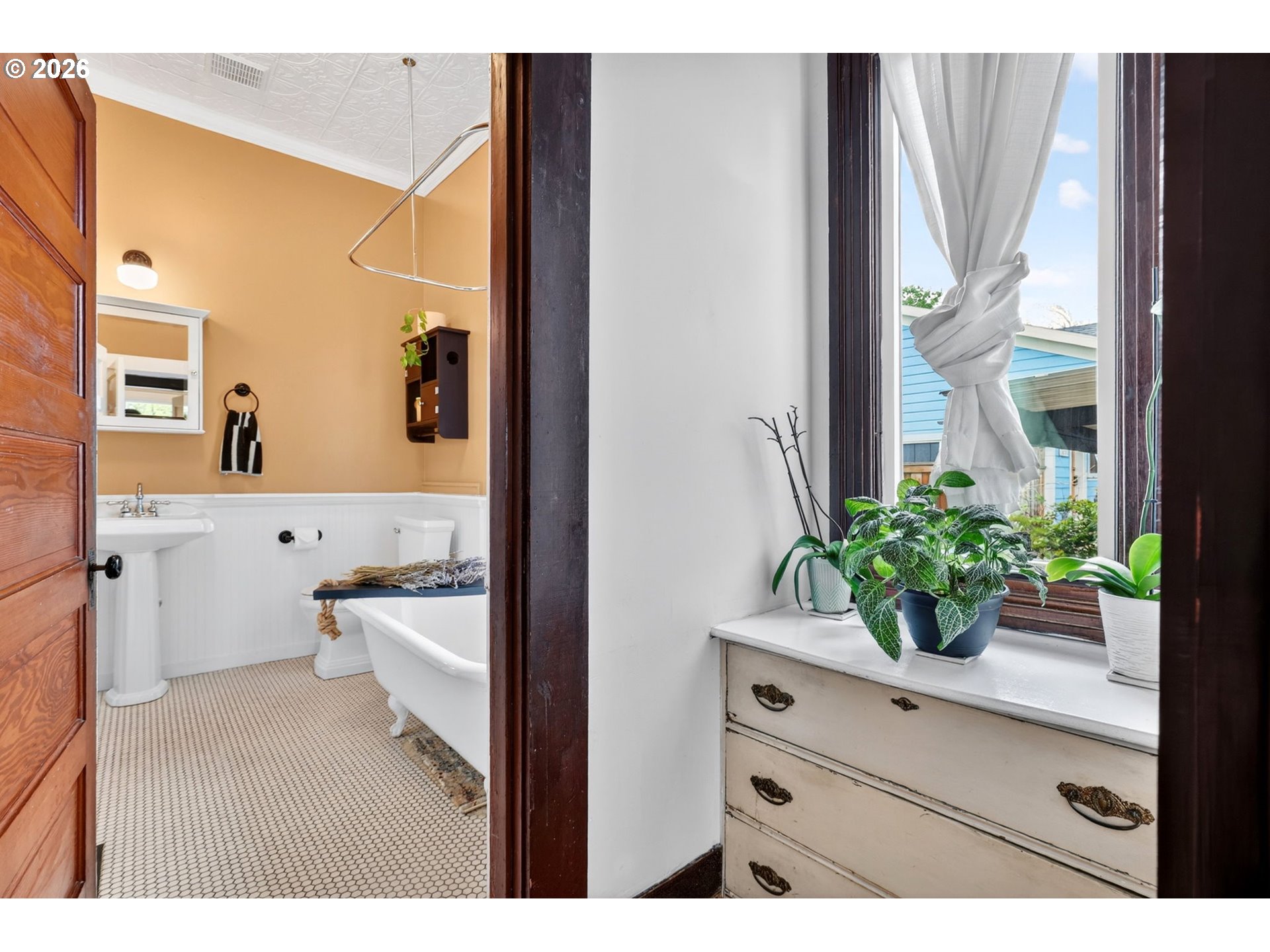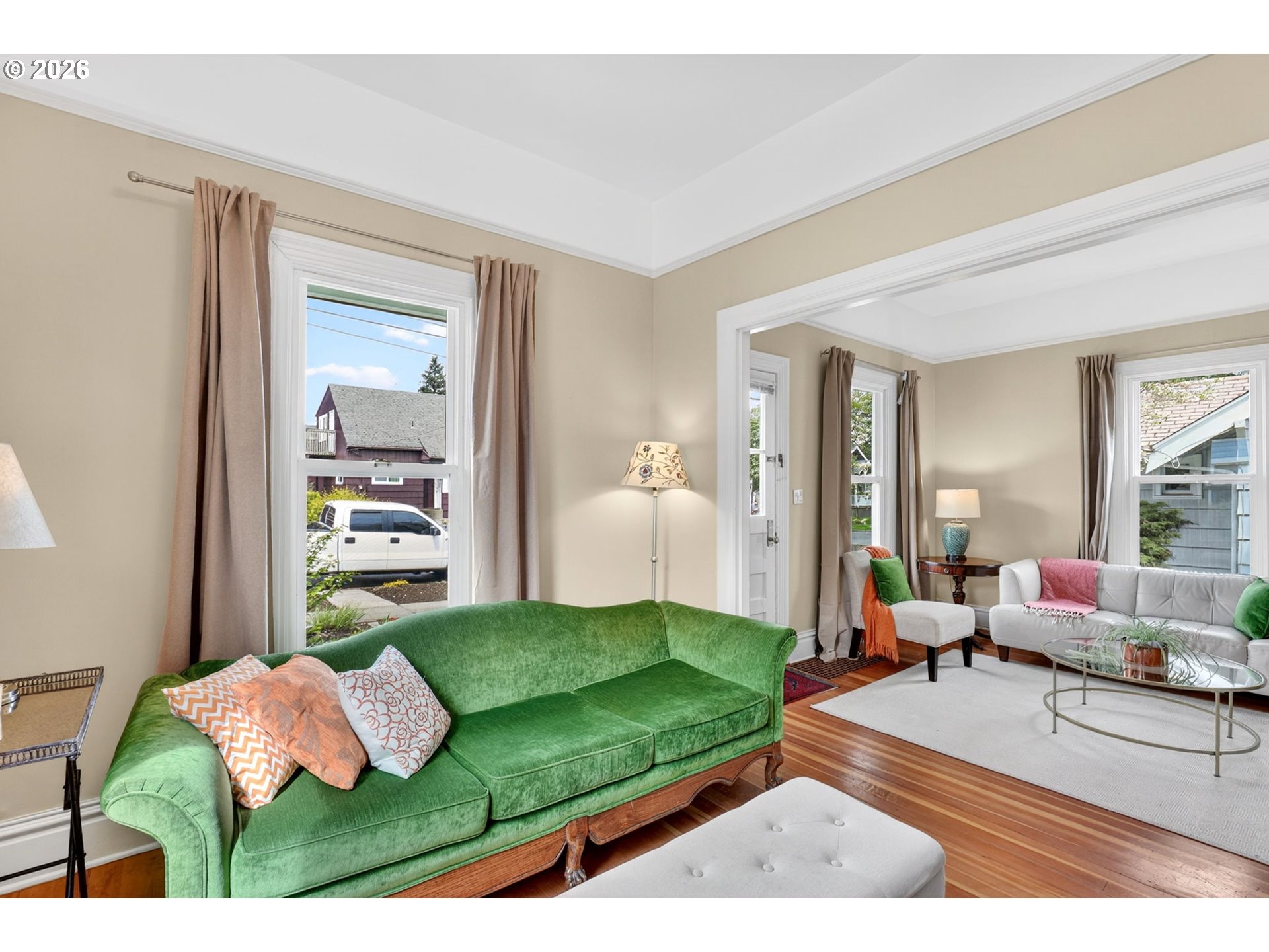 This vintage Victorian gem has been conscientiously and lovingly upgraded by her owner over the past two decades. Thoughtful remodeling throughout enhanced and restored character and architectural details, while adding sophistication and modern conveniences through the full kitchen remodel, lower bathroom remodel, and upper bathroom addition. The new 2025 kitchen leads to a sun-filled vaulted vestibule before flowing out through French doors to the outdoor living room. There, the seller has created a 15ftx16ft covered patio and dedicated areas for outdoor fireplaces and bbq'ing. The backyard is fully fenced and gated on both sides. Drip irrigation supplies perennials and evergreens, pollinators and vines (see plant list), making this a serene retreat. Add raised garden beds on the west side in time for veggie planting this summer! Upgrades to this home, (and too much to list here, please see the full list): 2026 96% efficiency Carrier furnace, 2026 hot water heater. 2022 Carrier central A/C. 2018 200amp panel (with surge protection), wiring and outlets throughout most of the home. All radiant upper-level heat system, 2021. New 2025 kitchen (see improvements list for details). 2025 new wood interior staircase with carpet runner. 2021 upgrade to upper bathroom to include subway tile shower and radiant tile flooring. 2021-2022 vestibule concrete steps and outdoor concrete walkways. Blown-in insulated exterior walls and attic. Covered carport and concrete parking pad. There is more! See full improvements list. (One disclosure note: the main floor bedroom is currently a reading room. Add back the wall, a French door, or trolley door to re-create a true bedroom.) North Mt. Tabor location, close to Max line, hospital, shopping and restaurants with high walk, transit, and biking scores. No open houses scheduled as per seller request. Private showings only. Offers due Monday by 5pm. [Home Energy Score = 4. HES Report at https://rpt.greenbuildingregistry.com/hes/OR10246666]