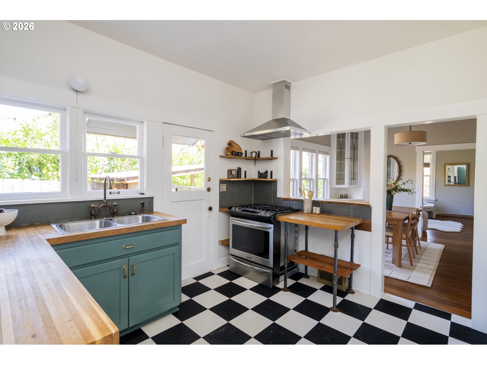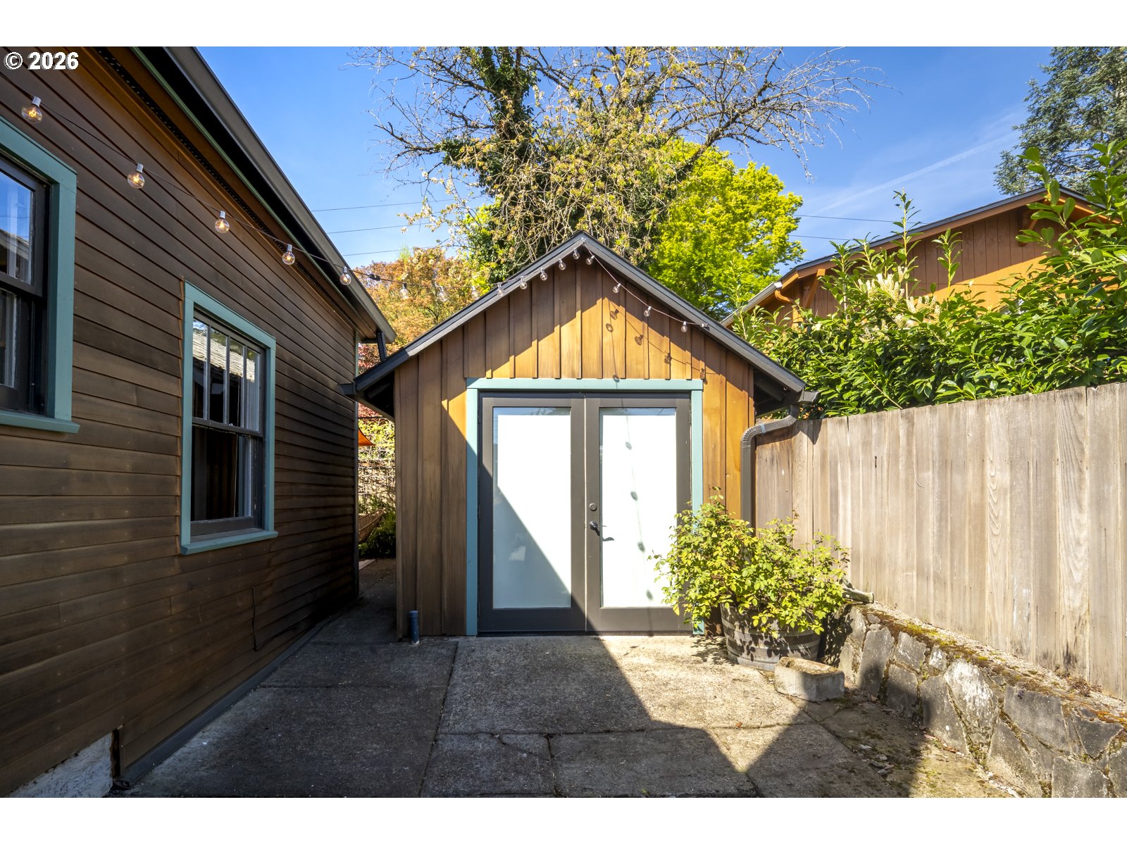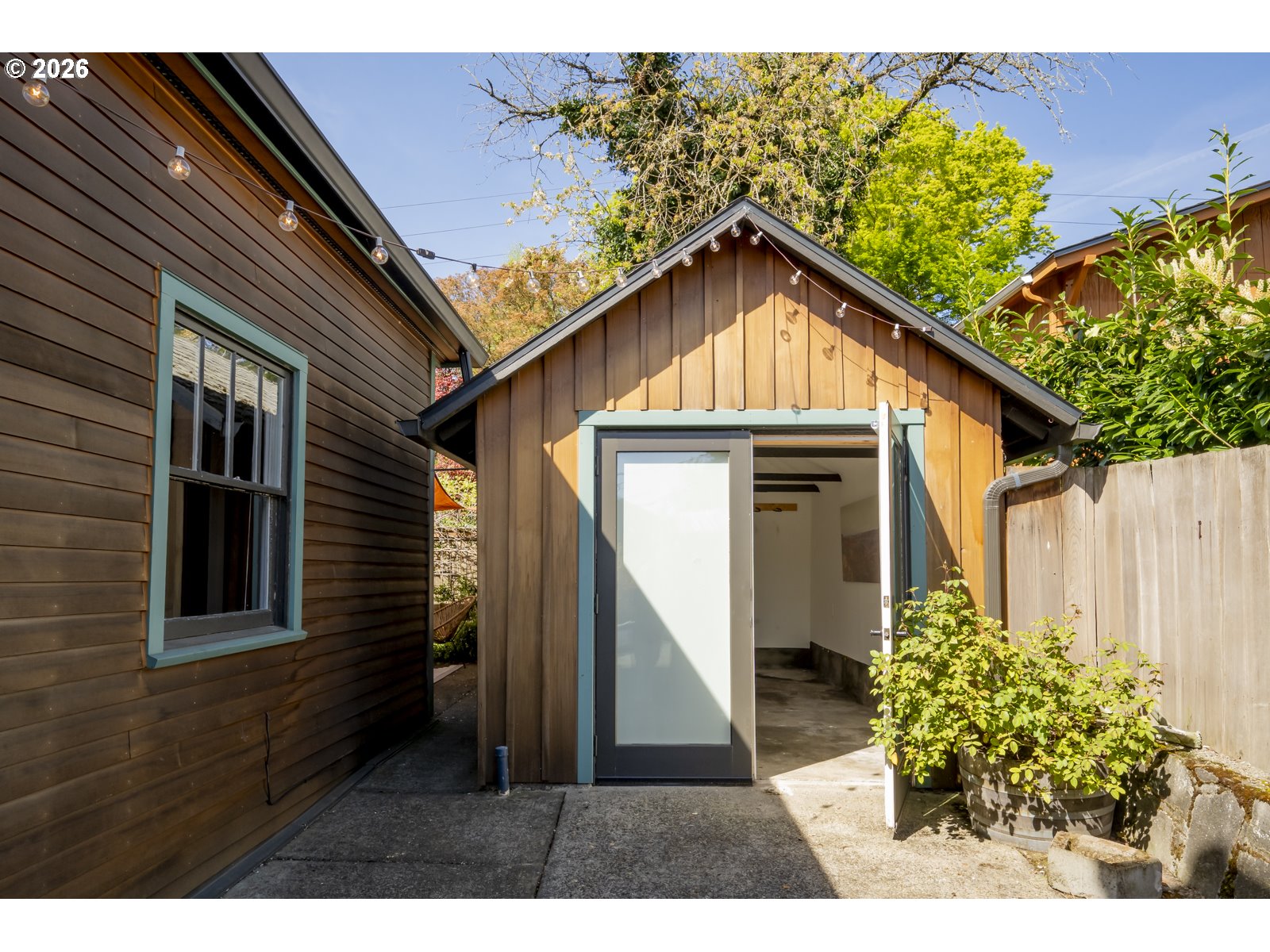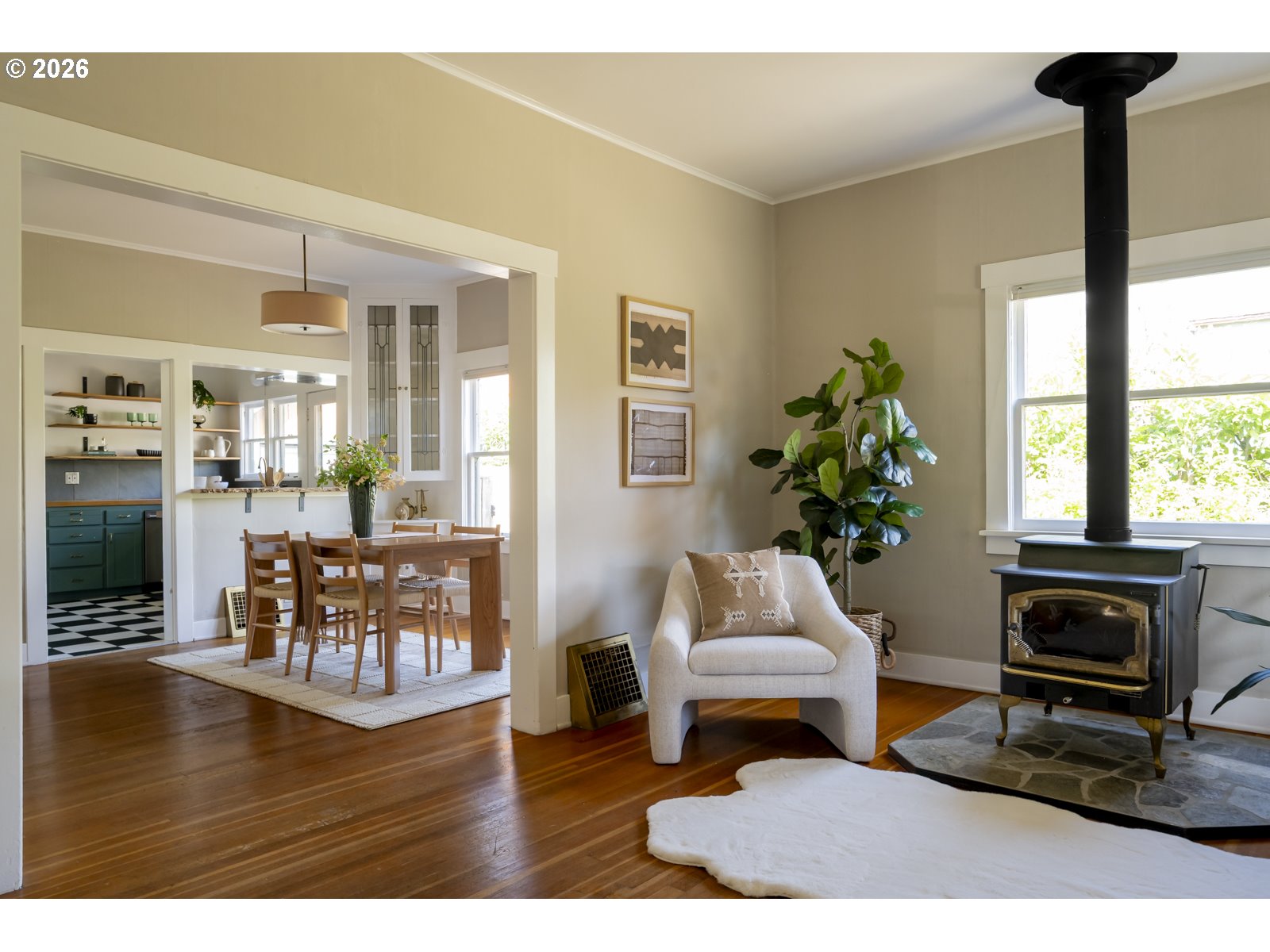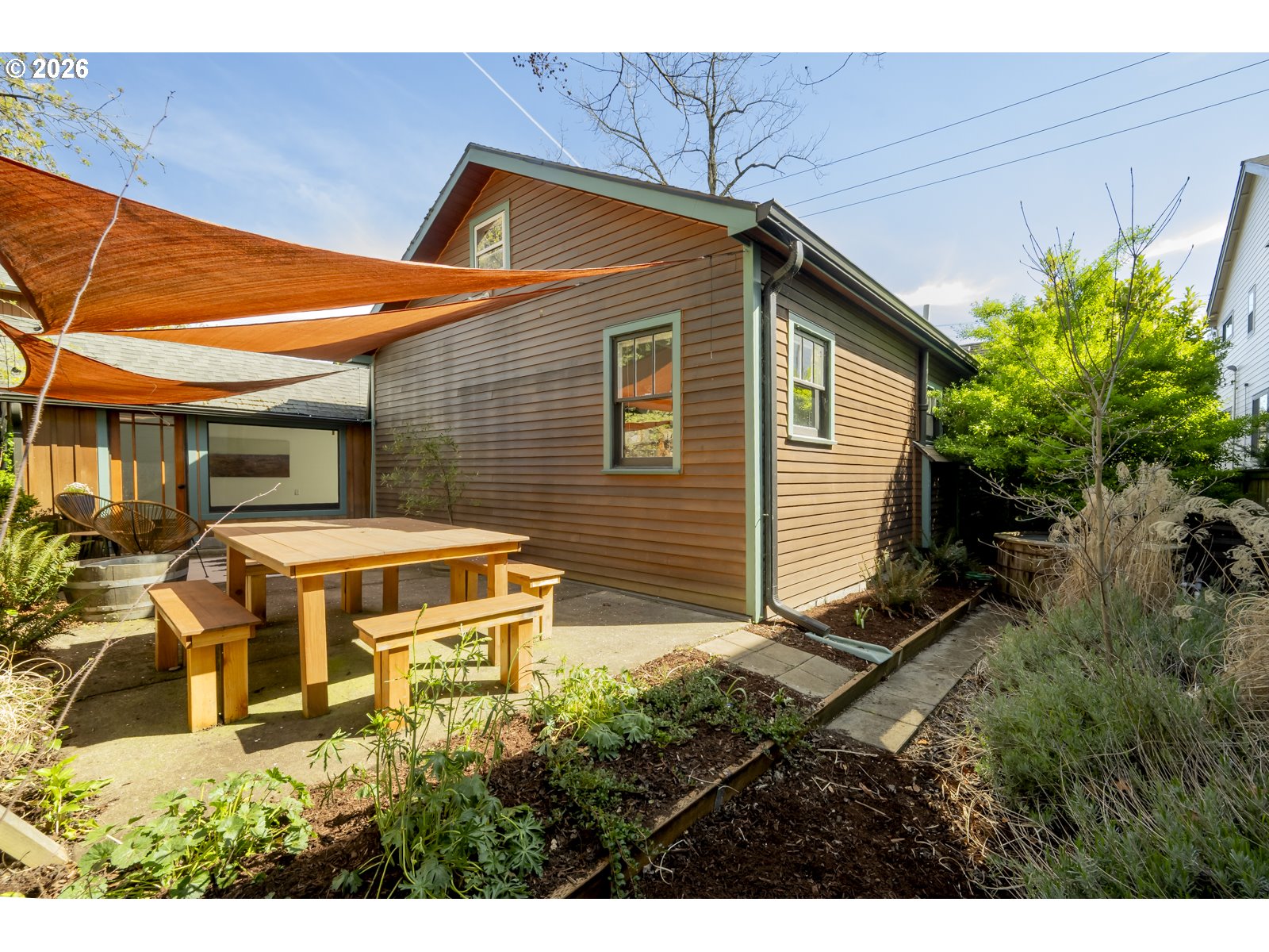 Perched above Spokane Street in the heart of Sellwood, this quintessential Sellwood bungalow nods to Portland’s earliest days. Originally built to house workers at the historic lumber mill on Spokane, its spirit has been thoughtfully carried forward by generations of stewards. Today, it strikes a rare balance, preserving original character while enhancing it with tasteful and functional updates. Original fir floors, twin leaded-glass built-ins, and a rustic woodstove ground the home in its history, while an open, efficient layout keeps spaces feeling defined yet connected. Sightlines stretch from front to back, making the space feel larger than its footprint—equally suited for cozy nights in or lively dinners with friends. The kitchen blends old and new with intention: butcher block counters, custom shelving, a vintage-inspired faucet, and stainless steel appliances, including a gas range. A side entrance offers easy flow for dining al fresco. It’s warm, functional, and quietly dialed. Three bedrooms offer flexibility, with one positioned perfectly for a home office or study, and two tucked at the back for privacy—each with generous walk-in closets. The bespoke aesthetic continues into the bathroom, featuring a custom ceramic sink from Wolf Ceramics and handcrafted wood shelving. Outside, the broad front porch invites slow mornings and evening winddowns. A detached studio, recently re-sided with old growth cedar salvaged from the coast, opens the door for creative pursuits. Edible plantings and pollinator-friendly blooms fill the yards, and the barrel tub offers a choose-your-own-adventure moment: hot soak or cold plunge. With easy access to Oaks Bottom, Sellwood & Riverfront Parks, the Springwater Trail, the Bridge and dining/shopping destinations, this location hits that sweet spot—connected, but quietly removed. New sewer in 2016. 85 walkscore, 97 bikescore. [Home Energy Score = 1. HES Report at https://rpt.greenbuildingregistry.com/hes/OR10123183]