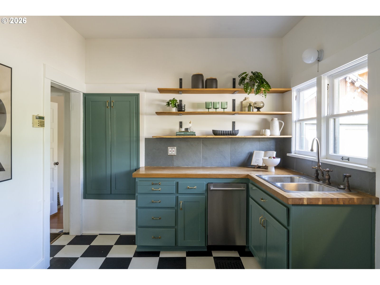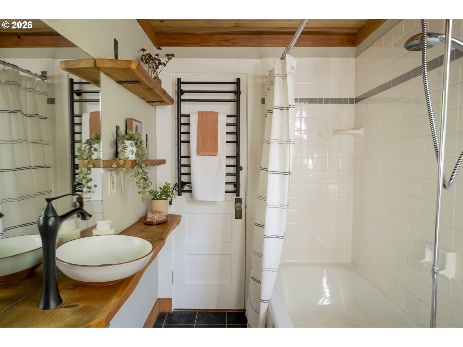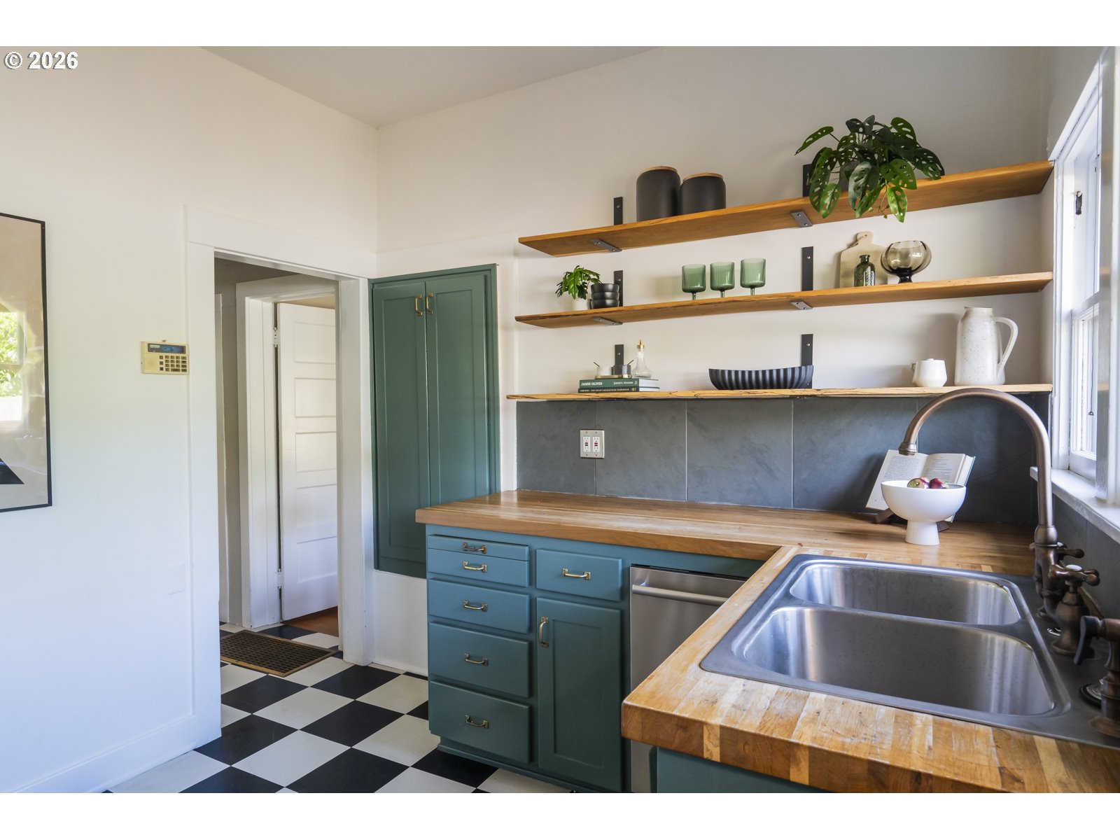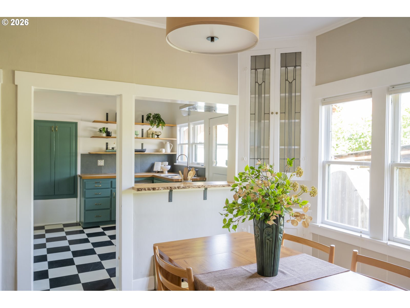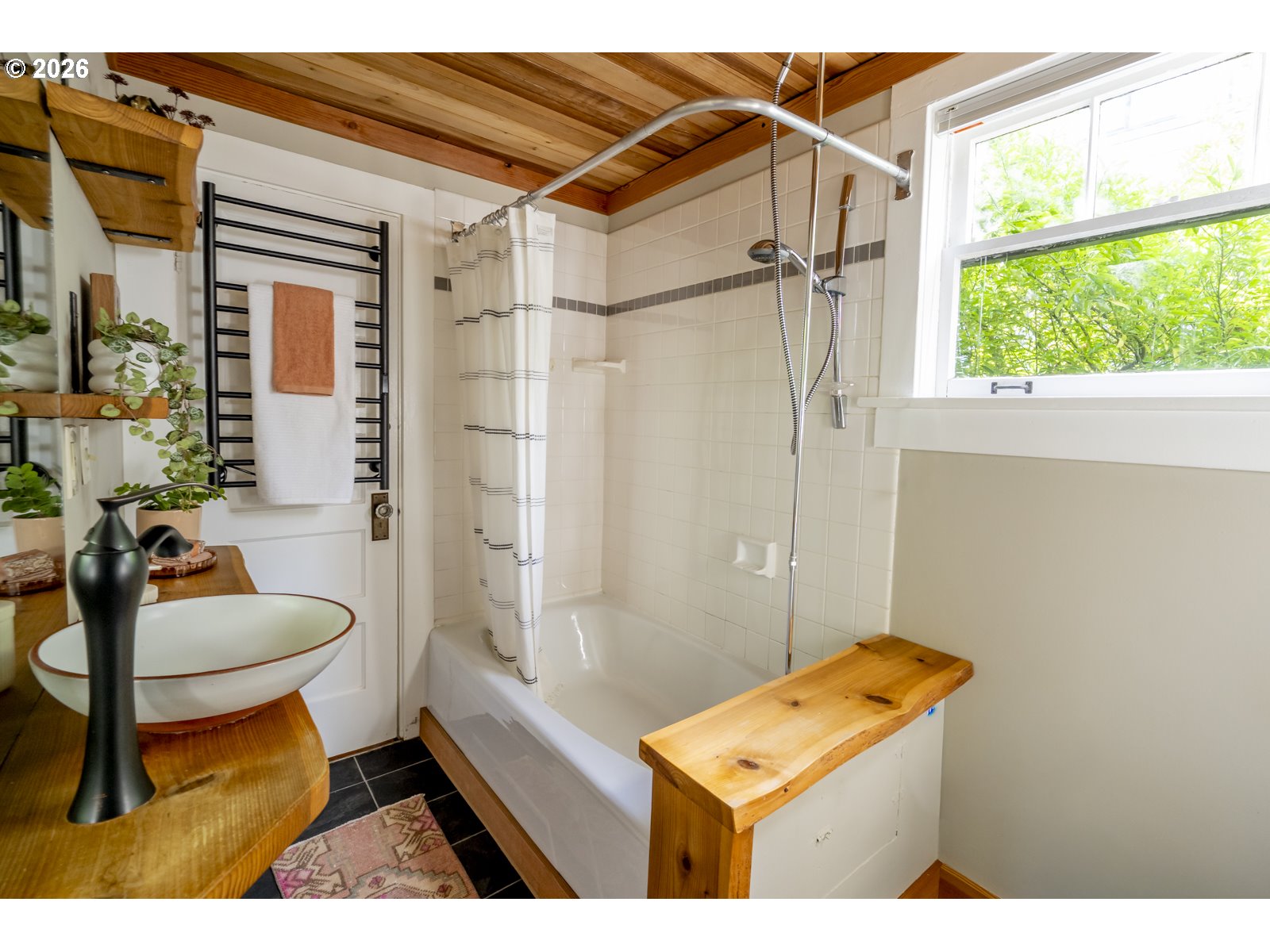 Perched above Spokane Street in the heart of Sellwood, this quintessential Sellwood bungalow nods to Portland’s earliest days. Originally built to house workers at the historic lumber mill on Spokane, its spirit has been thoughtfully carried forward by generations of stewards. Today, it strikes a rare balance, preserving original character while enhancing it with tasteful and functional updates. Original fir floors, twin leaded-glass built-ins, and a rustic woodstove ground the home in its history, while an open, efficient layout keeps spaces feeling defined yet connected. Sightlines stretch from front to back, making the space feel larger than its footprint—equally suited for cozy nights in or lively dinners with friends. The kitchen blends old and new with intention: butcher block counters, custom shelving, a vintage-inspired faucet, and stainless steel appliances, including a gas range. A side entrance offers easy flow for dining al fresco. It’s warm, functional, and quietly dialed. Three bedrooms offer flexibility, with one positioned perfectly for a home office or study, and two tucked at the back for privacy—each with generous walk-in closets. The bespoke aesthetic continues into the bathroom, featuring a custom ceramic sink from Wolf Ceramics and handcrafted wood shelving. Outside, the broad front porch invites slow mornings and evening winddowns. A detached studio, recently re-sided with old growth cedar salvaged from the coast, opens the door for creative pursuits. Edible plantings and pollinator-friendly blooms fill the yards, and the barrel tub offers a choose-your-own-adventure moment: hot soak or cold plunge. With easy access to Oaks Bottom, Sellwood & Riverfront Parks, the Springwater Trail, the Bridge and dining/shopping destinations, this location hits that sweet spot—connected, but quietly removed. New sewer in 2016. 85 walkscore, 97 bikescore. [Home Energy Score = 1. HES Report at https://rpt.greenbuildingregistry.com/hes/OR10123183]