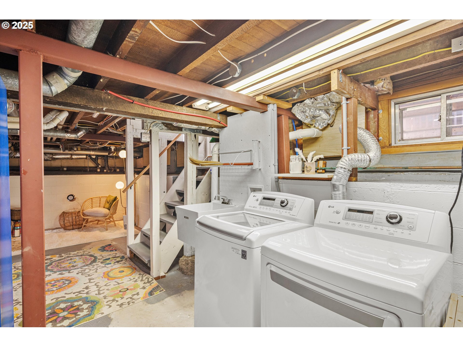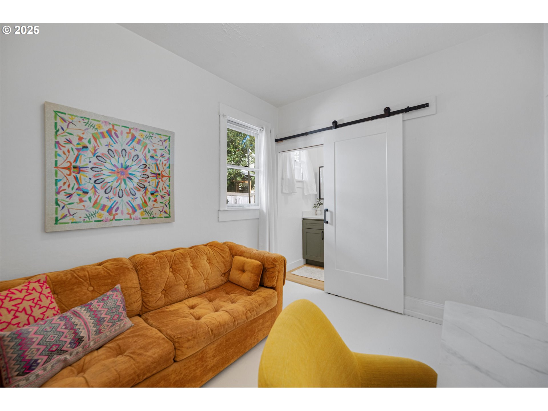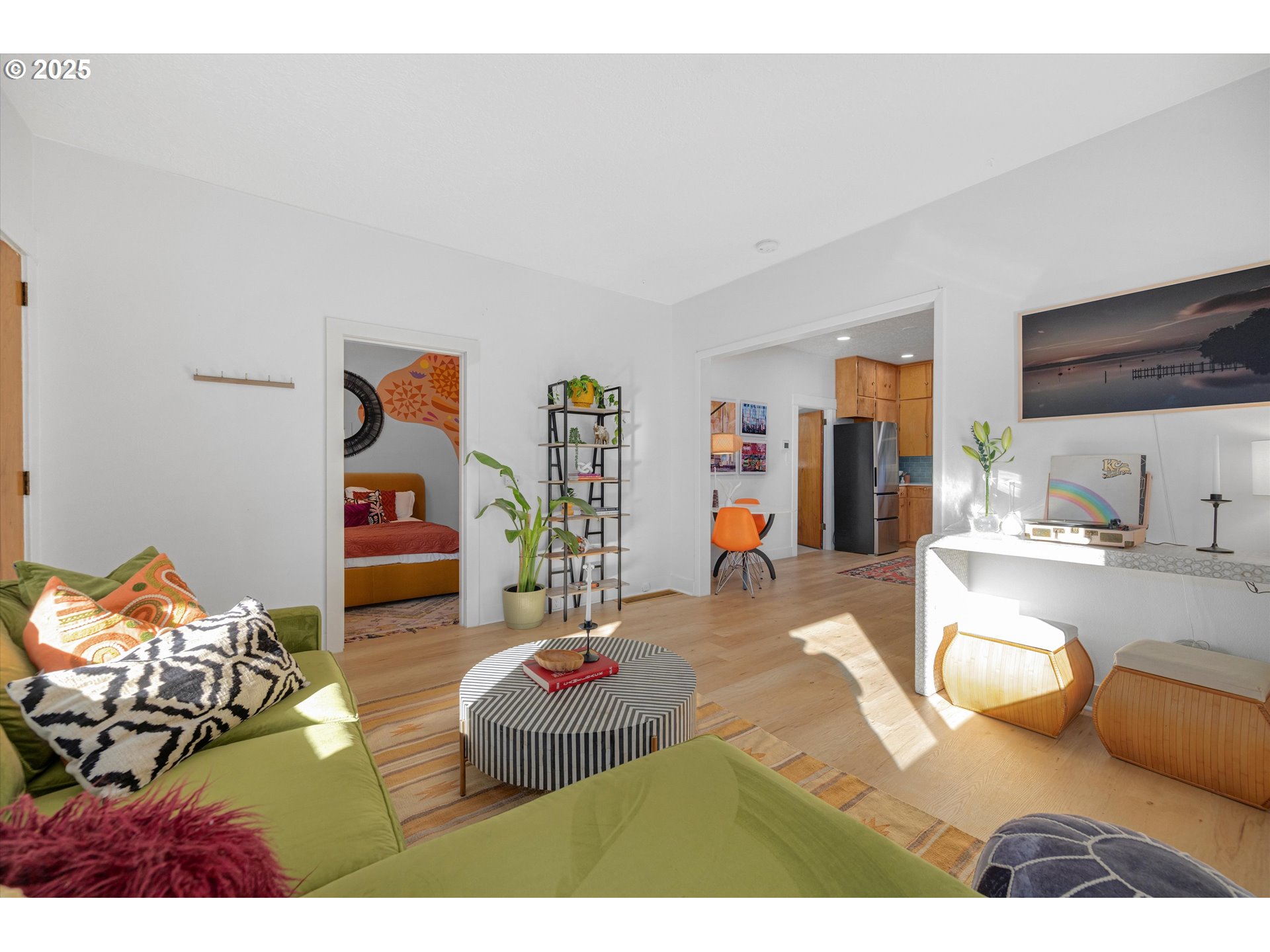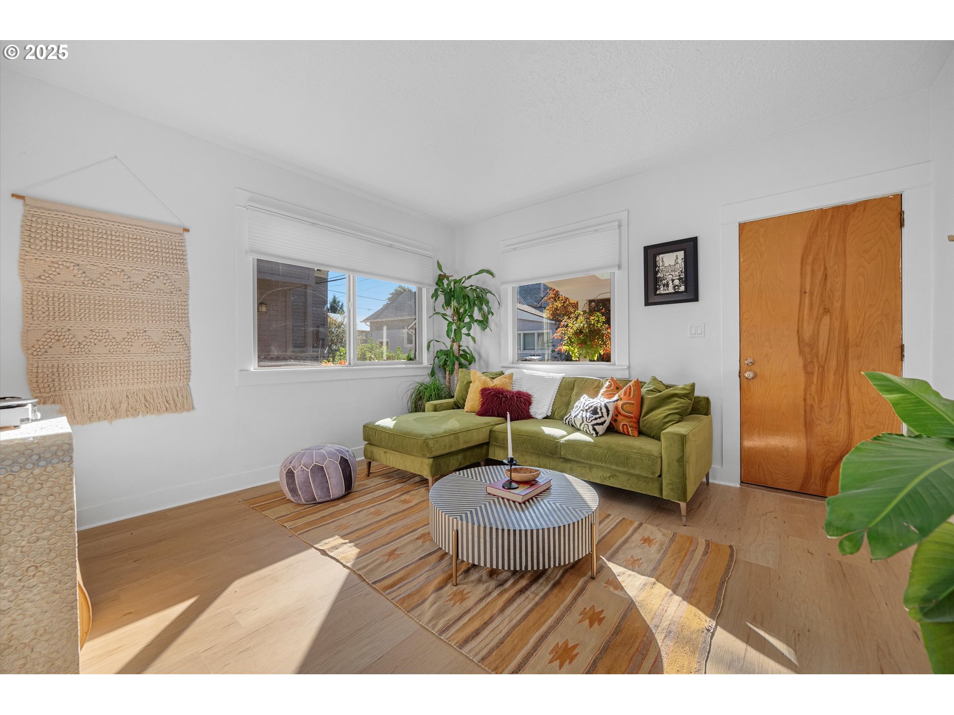 Hidden away on a quiet side street, this storybook Sunnyside cottage is a rare Portland find — just blocks to Belmont Street and Laurelhurst Park. Every detail of this home has been thoughtfully reimagined for modern living, with convenience, comfort, and an eye for design. Step inside to a light-filled living room with 8ft. ceilings, custom finishes, and open floorplan. The updated kitchen shines with quartz countertops, designer tile, and stainless appliances. Enjoy single-level living with three spacious bedrooms, two updated baths, and a large primary suite with a skylight illuminating a hand painted mural by Portland's own Lettie Jane Rennekamp. Custom mudroom adds style and storage, while a partially finished basement with 7ft ceiling offers additional living space, or an easy path to an ADU conversion. Sip your morning matcha or evening negroni on the covered all-season porch, surrounded by native drought tolerant landscaping. When its time to explore, you can head out to Por que' No, Kens Artisan Pizza or Stumptown Coffee within blocks. Updates include modernized kitchen and baths, newer composition roof, gutters, furnace & A/C, 200 Amp panel, and so much more. [Home Energy Score = 5. HES Report at https://rpt.greenbuildingregistry.com/hes/OR10108117]