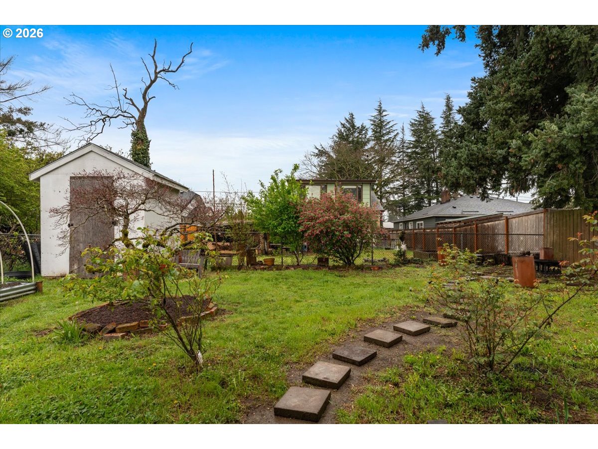 Easy living in Lents. This charming 3-bed, 1-bath bungalow blends original character with thoughtful updates, including hardwood oak floors, comfortable bedrooms, a refinished bathroom, and an open, modernized kitchen with new cabinets, appliances, flooring, and countertops.Bright, functional layout. Natural light fills the living room and kitchen, creating a warm, welcoming atmosphere. The spacious primary bedroom offers generous closet space, and additional attic storage expands your options. A one-car garage with a new door and upper storage adds everyday convenience.A gardener’s delight featuring year-round mature landscaping in the front, side and back yard. In the backyard, raised beds and a patio invite summer gardening and outdoor living, surrounded by year-round interest from roses, bulbs, a Japanese laceleaf maple, Chinese jasmine, Indian plum, and red flowering currant.Connected and convenient. Walk to two bus lines, Glenwood Park, and neighborhood favorites like The Zed, Lents Tool Library and Lents International Farmer’s market. Enjoy quick access to Woodstock shops, Lents Park (home of summer Pickles games), the Springwater Corridor, the Green Line, and I-205 for easy commuting. [Home Energy Score = 1. HES Report at https://rpt.greenbuildingregistry.com/hes/OR10246124]