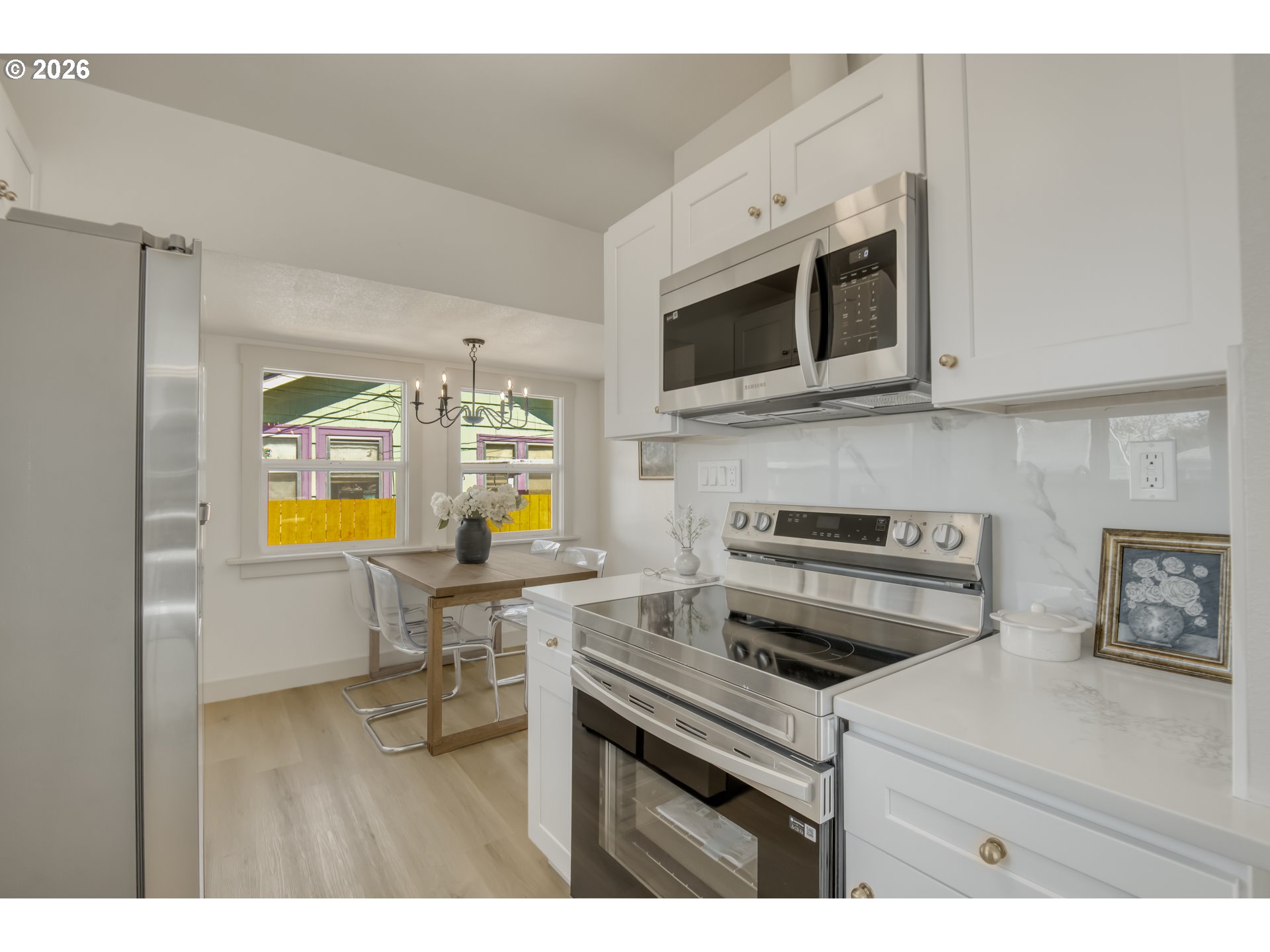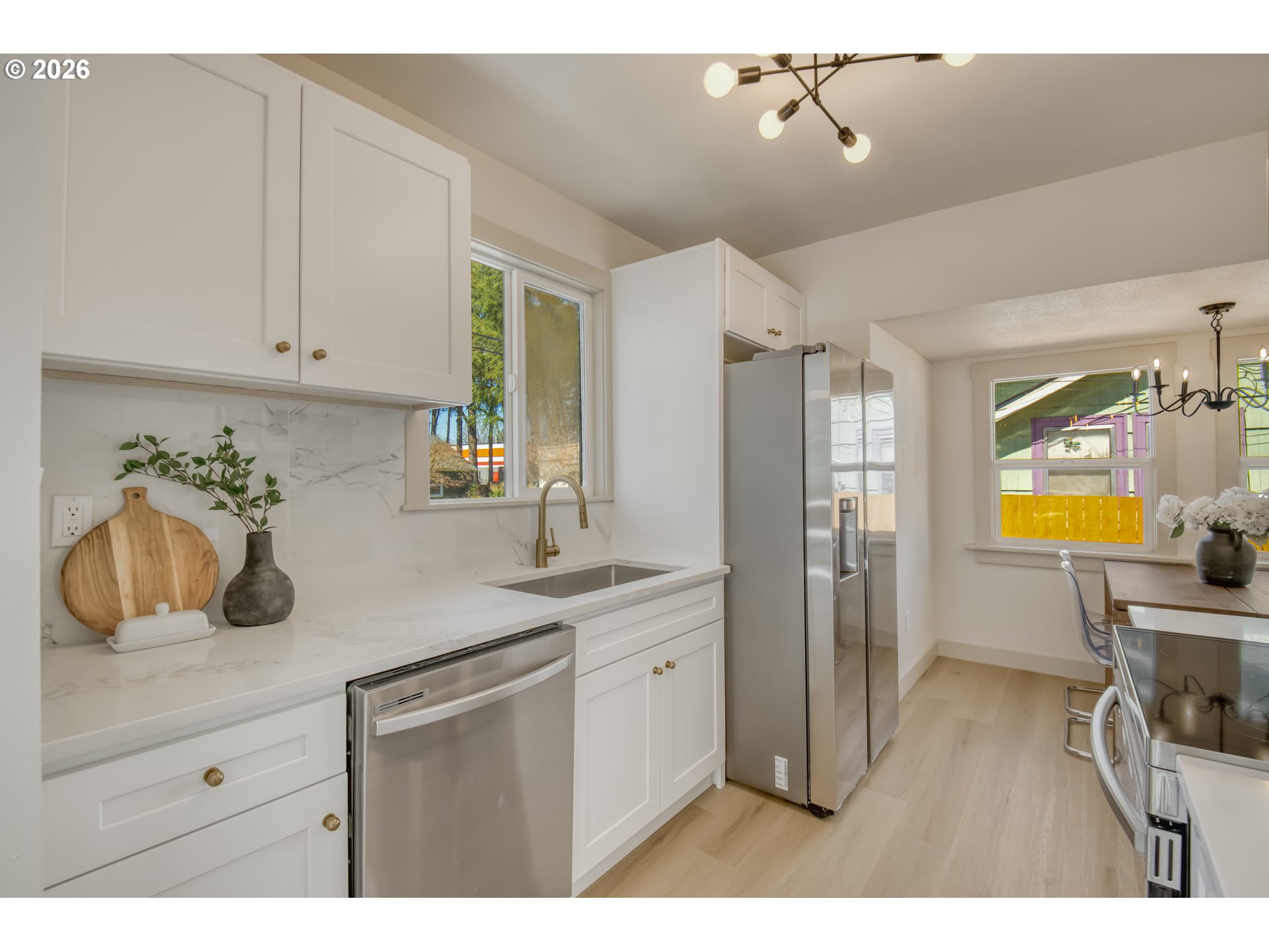 Welcome to this refreshed 4-bedroom home that blends modern updates with a layout designed for real life. With multiple living areas and a natural flow throughout, there’s space for everyone—whether you’re hosting, working from home, or just enjoying a quiet night in. Recent upgrades shine from the moment you walk in, including new LVP flooring and fresh interior paint that give the home a clean, updated feel. The kitchen stands out with quartz countertops, updated cabinetry, stainless steel appliances, and a new range—ready for everyday meals or weekend gatherings. The bathroom has been fully updated with a new vanity, trim, and contemporary finishes for a polished, move-in-ready look. Outside, you’ll appreciate the big-ticket improvements like a brand-new roof and new fencing, along with thoughtful touches like a stepping-stone walkway. The backyard offers a great extension of the home, featuring a new deck and plenty of space to relax, entertain, or create your own outdoor retreat. Washer, dryer, and refrigerator are all included—making your move simple and hassle-free. Located in Southeast Portland near Glenwood Park and just minutes to Woodstock and Lents, you’re close to local parks, dining spots, shops, and everyday conveniences. A solid blend of comfort, updates, and location—ready for you to move in and make it your own.
