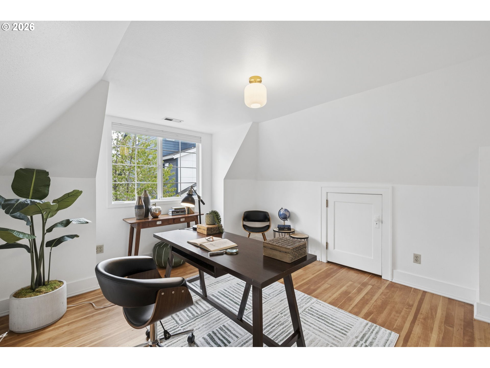 Relax into the warmth and welcome of this picturesque classic English, a treasure with a wonderful floor plan, gorgeous original details, and meticulous upgrades. All the heavy lifting has been done for you: newer roof with detailed venting improvements, rebuilt chimney, attic insulation above code, all new HVAC including mini-split units in the upstairs bedrooms, seismic retrofitting, radon fan, pristine refinished fir floors...and so many other nuanced aesthetic and functional details that will add ease and grace to your daily life. The floor plan is ideal for entertaining, with both a casual eating space in the large kitchen and a formal dining room that opens to a patio. Three large bedrooms--one on the main level and two upstairs--give plenty of space to dream, and the upstairs also has a wonderful flex space that can be a home office or library. Need more space? The basement has amazing high ceilings and so much room--and it's ready for a second full bath, with a commode already installed, and sink/shower drains stubbed in. Outside, you'll appreciate the covered parking convenient to the back door, and there's also a single garage for parking, storage, or a workshop. The yard and garden have been renovated with perennials and native plants, and if you crave more scope for your gardening expertise, the legendary Green Thumb Community Orchard and Brentwood Community Garden are just down the block. All the amenities of Woodstock are nearby, including New Seasons, Safeway, the Heist food carts, Heart Coffee, Grand Central Bakery, and the beloved Woodstock Library. With a Walkscore of 76 and Bikescore of 97, it's easy to get around and enjoy the neighborhood. Heartfelt, effortless, and move-in ready...this is the one you've been waiting for. [Home Energy Score = 3. HES Report at https://rpt.greenbuildingregistry.com/hes/OR10183041]
