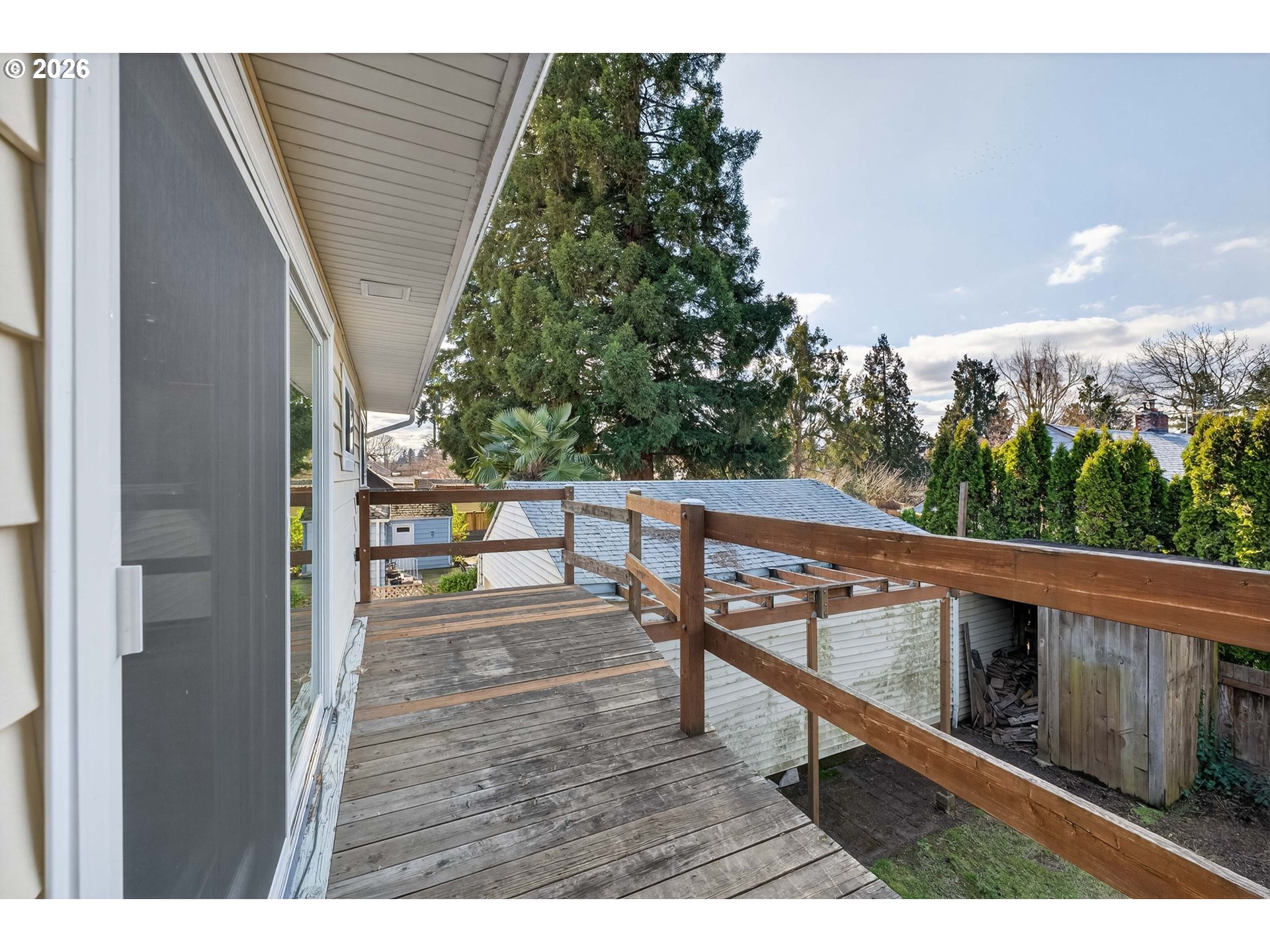 Same owner since 1980! This stately Arbor Lodge home is situated on a treed corner lot with a covered front porch. It boasts over 2600 sq. ft. on 3 levels with lots of big windows that flood the home with light! Primary suite has an ensuite full bathroom and deep double closets, plus a slider to a private, partially covered deck. Newer luxury vinyl plank flooring over most of the main floor. Sewer and water line was new in 2023. New garage door and opener installed 2025. New vinyl windows, siding and complete tear off roof replacement of house in 2007. Perfect for entertaining with a downstairs great room that has a built-in wet bar. Formal entertaining on the main floor is complete with a wood burning fireplace in the living room and a formal dining room. Spacious kitchen has a lighted pantry, and all appliances are included, plus the dishwasher was recently replaced with an upscale stainless steel model. The hall bath remodel includes an updated marble vanity with undermount sink, updated flooring, resurfaced tub with tile shower surround, plus a linen closet. The 13x13 laundry room has a sink and the washer & dryer are included along with the freezer. The huge 640 sq ft detached garage has its own 200 amp panel and service with separate meter. Lots of power with three 50 amp outlets. Has a separate shop room in the back of the garage for all your projects. You will find even more storage possibilities with a 7x10 backyard aluminum shed. The huge driveway is wide at 12.5 feet and is 70 feet long, with plenty of room for RV, boat, or several cars. There’s a fully fenced yard with some of the fence recently added. Just two blocks to Arbor Lodge Park, which includes Harper’s Playground, a universally accessible playground that is the first of its kind in PDX! You will also be convenient to shopping, schools, restaurants, and MAX light rail.