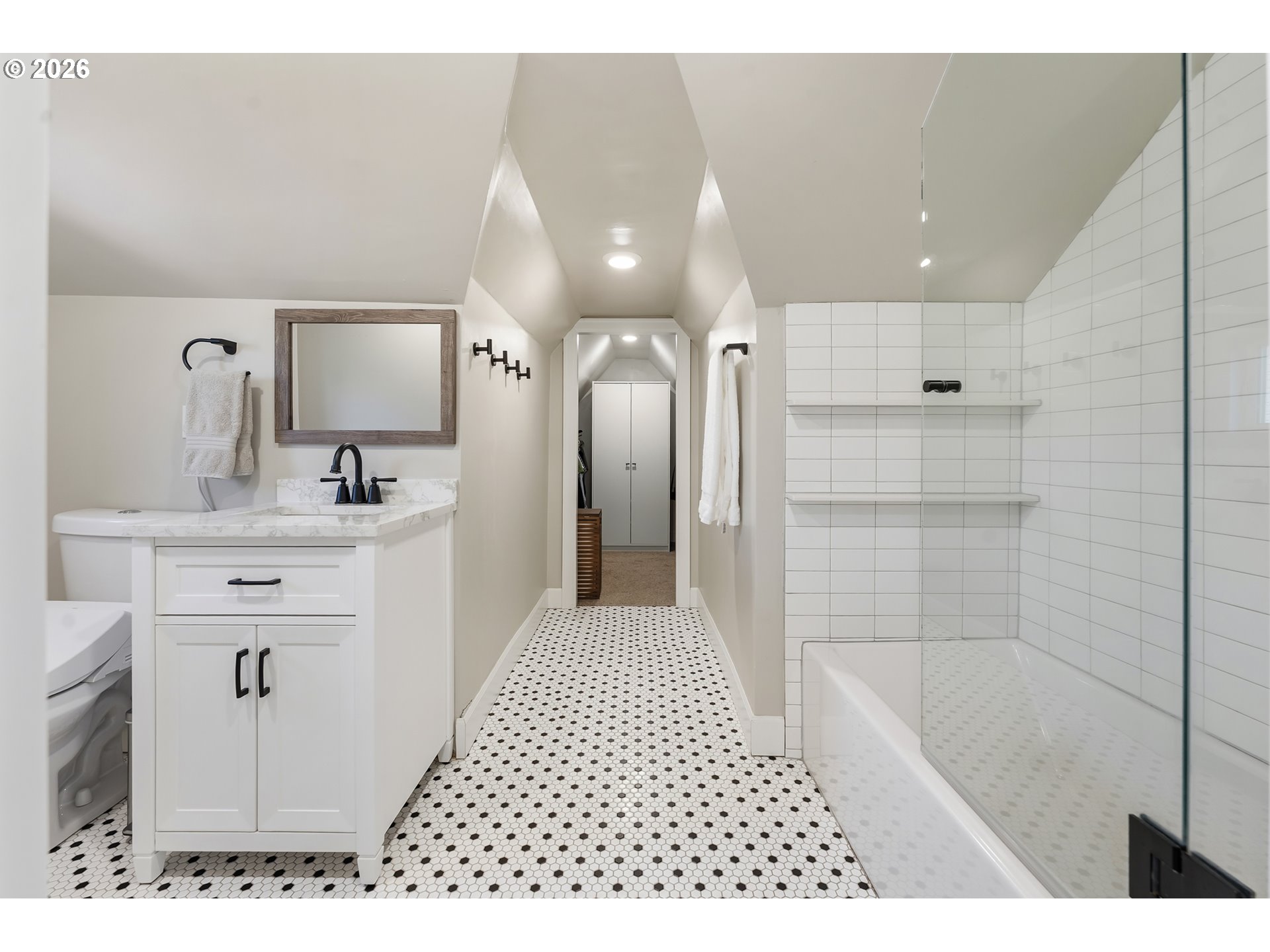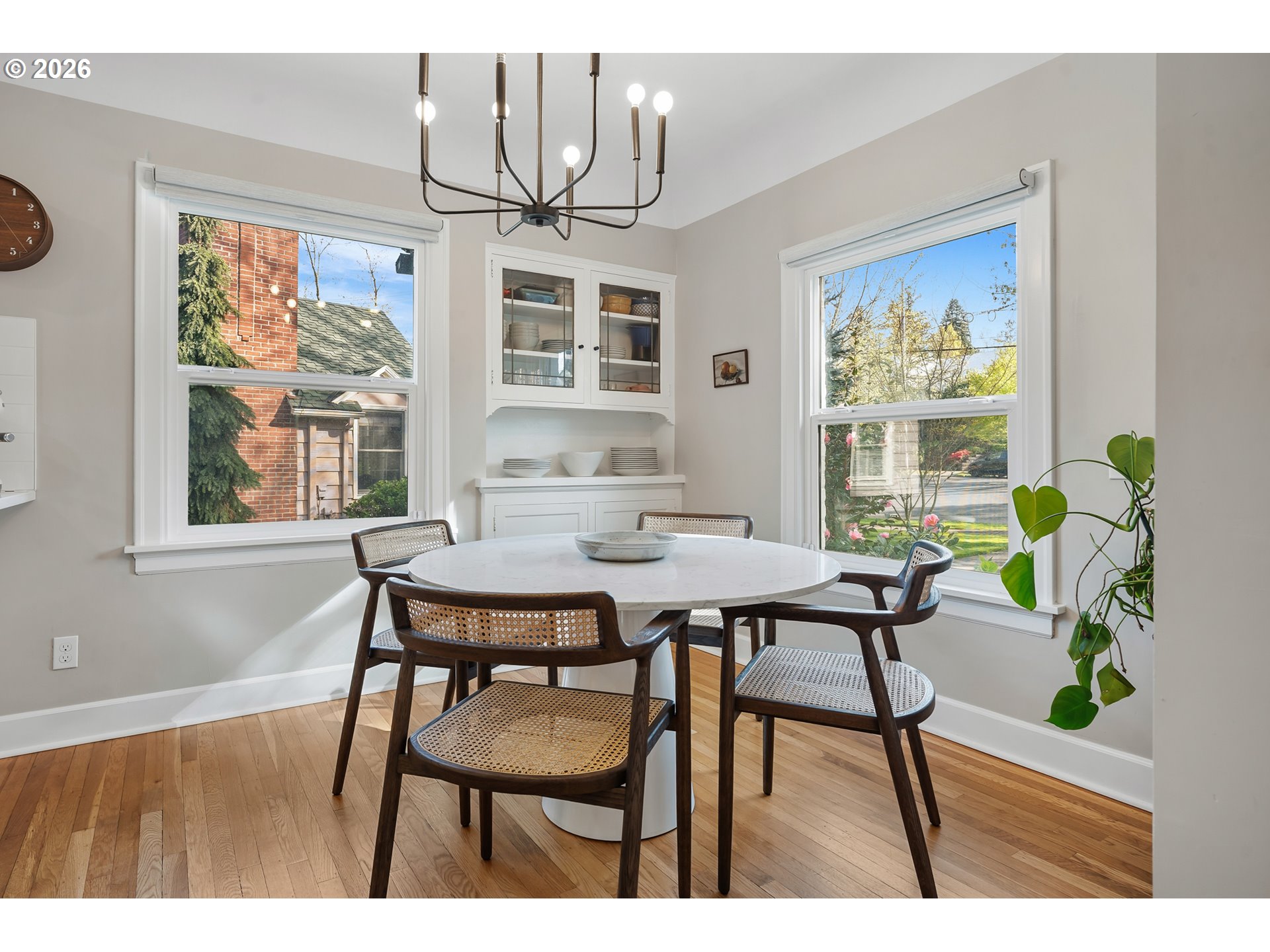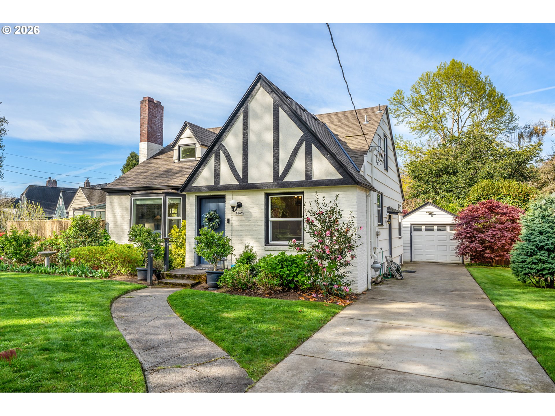 Exceptionally bright & beautifully reimagined, this unique Eastmoreland Tudor blends period charm with thoughtful, modern updates. Vintage details—including coved ceilings, hardwood and fir floors, picture molding, built-ins, and leaded glass—preserve the home’s historic integrity, while extensive improvements enhance functionality and efficiency. Three finished levels provide flexibility and no wasted space. Main level living & dining rooms connect to a magnificent sunroom and gourmet kitchen with crisp, contemporary finishes and newer luxury appliances. Two bedrooms on the main include one with an ensuite bath for possible use as a second primary suite. The upper level is dedicated to a private primary retreat featuring a spa-like bathroom and walk-in closet; a mini-split system adds efficient year-round comfort. The living areas extend downstairs, where a family/media room & bedroom create the ideal setting for a home office, guest quarters, or possible ADU. Outside, a cottage garden-inspired backyard creates a park-like setting with a covered patio, fire pit, raised garden beds, irrigation system, professional hardscaping/lighting, and drought-resistant plants that provide inspiring seasonal color. Additional features include a detached one-car garage and extra driveway parking with a Tesla charger. Recent updates include a new heat pump, lower-level LVT flooring, newer appliances, exterior paint, window coverings, updated lighting, and the complete backyard renovation. Perfectly located in the heart of Eastmoreland, known for its historic charm, walkability, and proximity to top-rated schools, Reed College, farmers markets, the golf course, and all the eclectic restaurants and boutiques in Sellwood/Moreland & Woodstock. A must-see property with extensive upgrades! Ask your agent for the complete list! Open Sat. 4/11 from 11am-1pm. [Home Energy Score = 4. HES Report at https://rpt.greenbuildingregistry.com/hes/OR10183214]