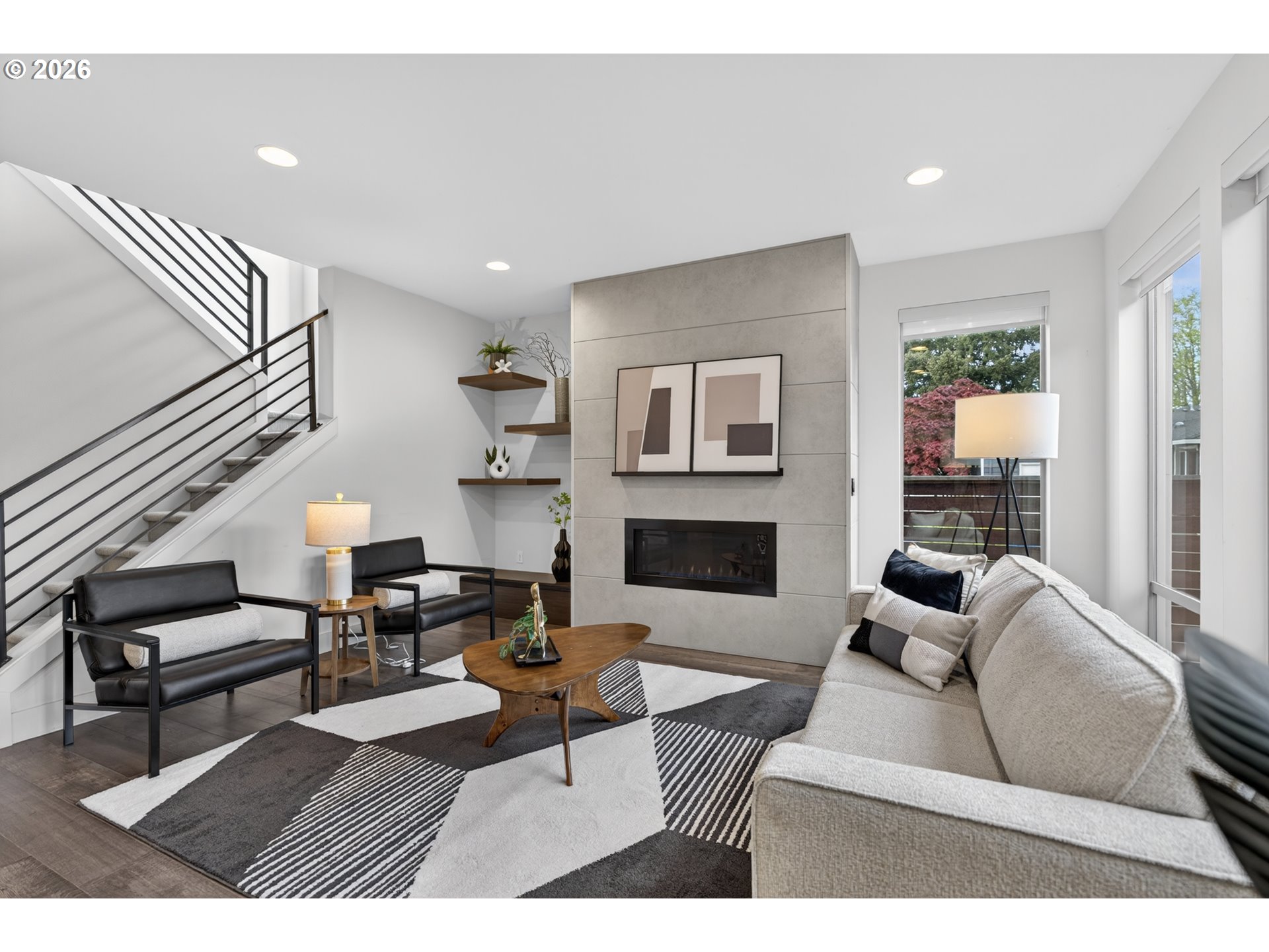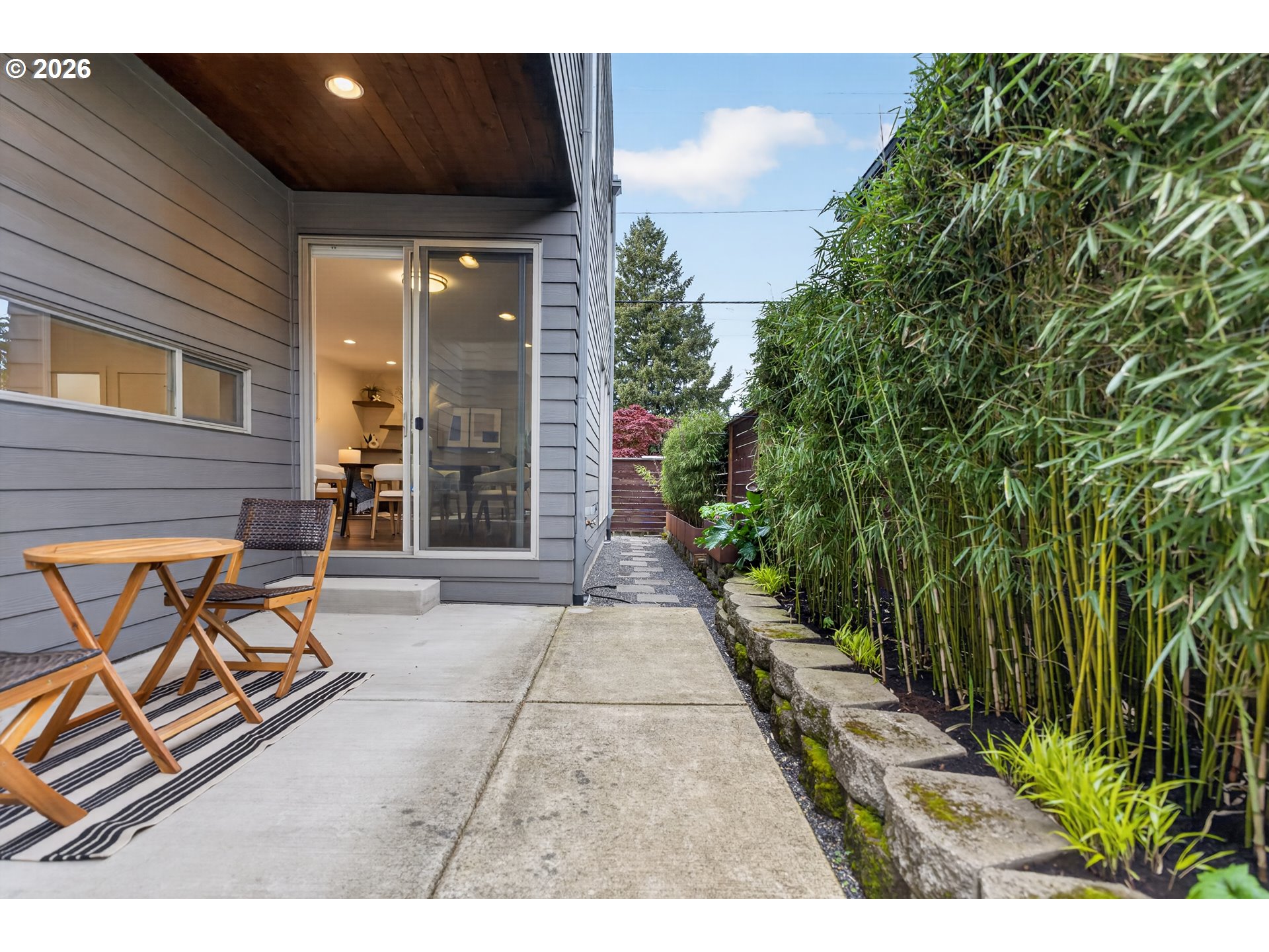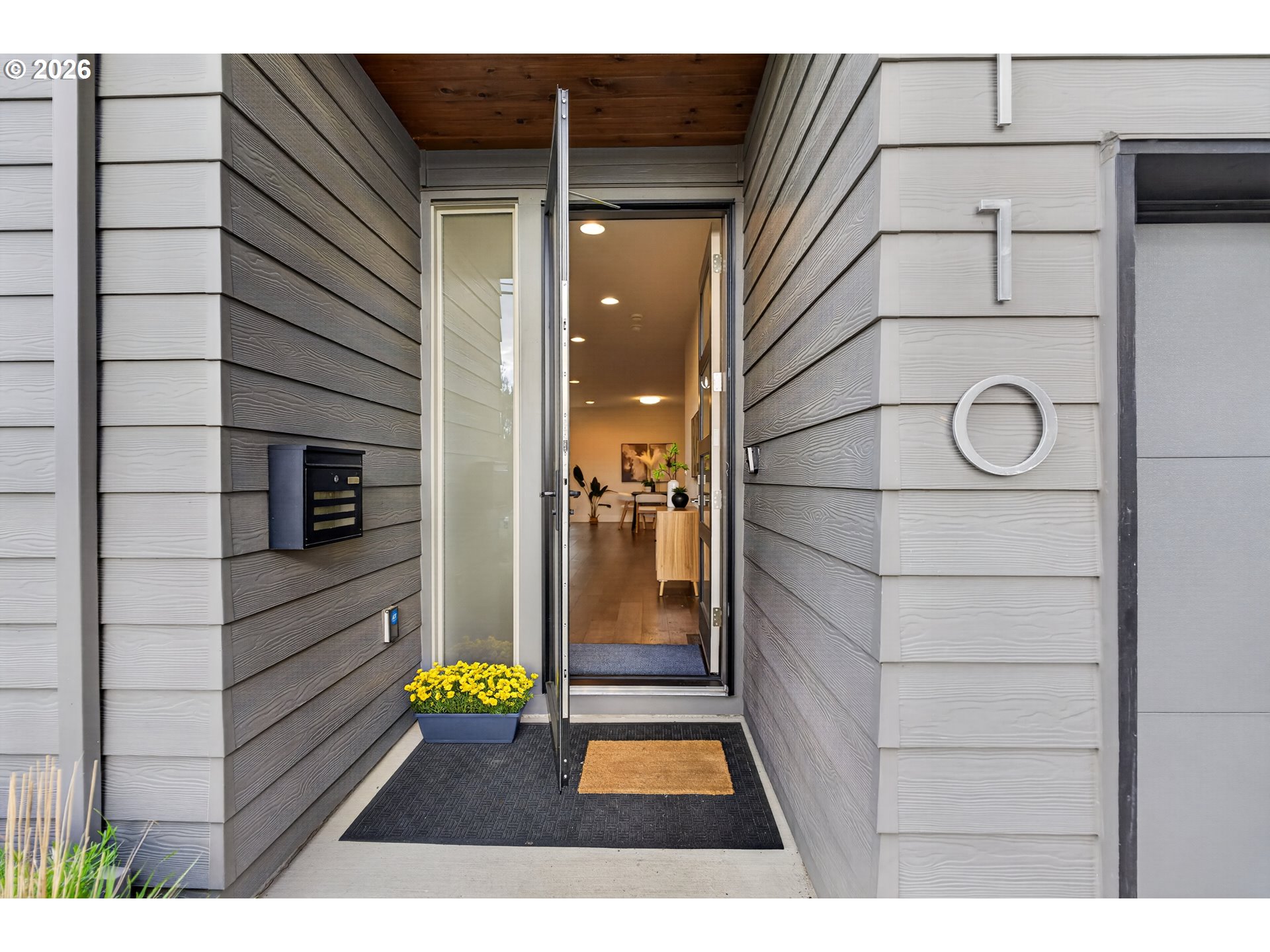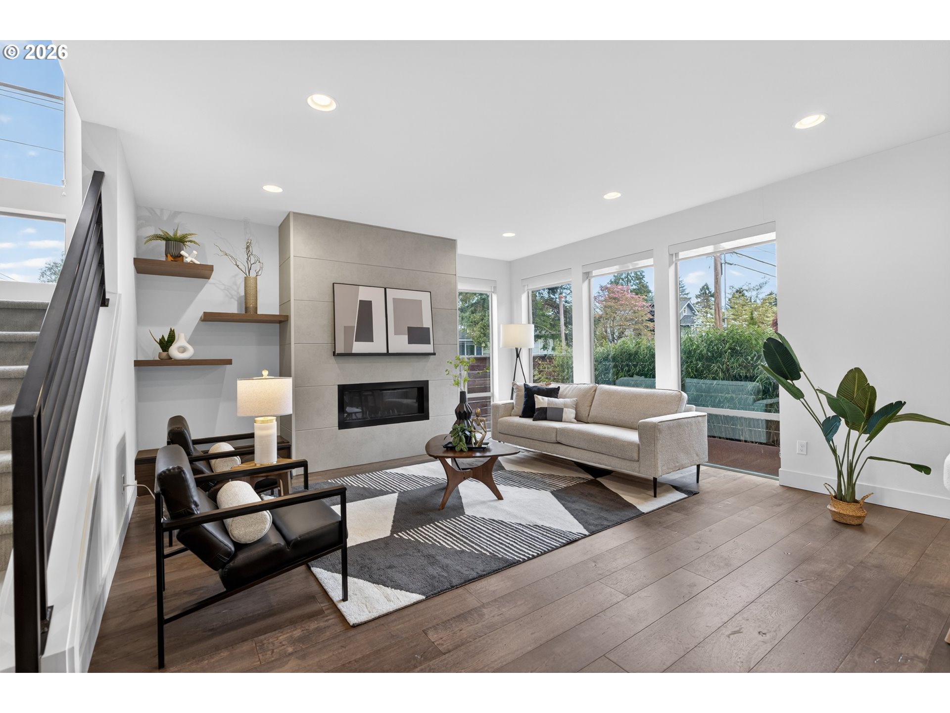 PLEASE NOTE: Correct address is 7110 SE 42nd Ave, Portland. Open Sun 12-2pm | Striking modern home in the heart of Woodstock. Two-tone board and batten siding and floor-to-ceiling windows, thoughful landscape & vibrant Japanese maple make a statement from the curb. Inside, wide-plank hardwood floors flow through an open main level anchored by a floor-to-ceiling tile surround gas fireplace, floating shelves and vaulted ceilings. The chef's kitchen features a large quartz island with island seating, two-tone cabinetry, stainless steel appliances, gas oven, built-in Miele espresso maker, french door refrigerator with bottom freezer, and drawer microwave. The dining area opens directly to a covered cedar-ceiling patio with a gas fire feature, surrounded by lush bamboo for privacy. The primary suite is generous with a tray ceiling, sitting area, attached bathroom with heated floors, freestanding soaking tub, glass-enclosed walk-in shower and a bright walk-in closet with built-in shelving. Flexible main-level room with frosted glass French doors works perfectly as a home office or library. Attached double car garage, Central heat & AC, new roof. Corner lot, fenced yard make this one easy home to live in! Location is a 10!