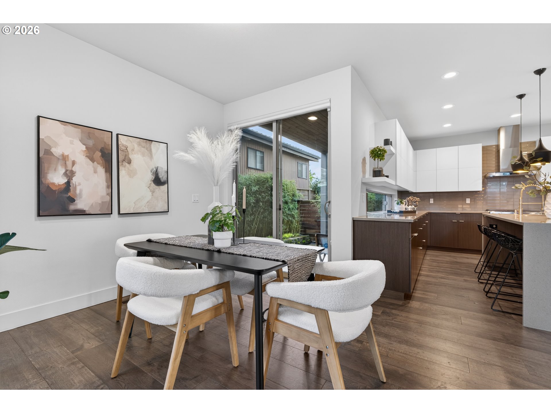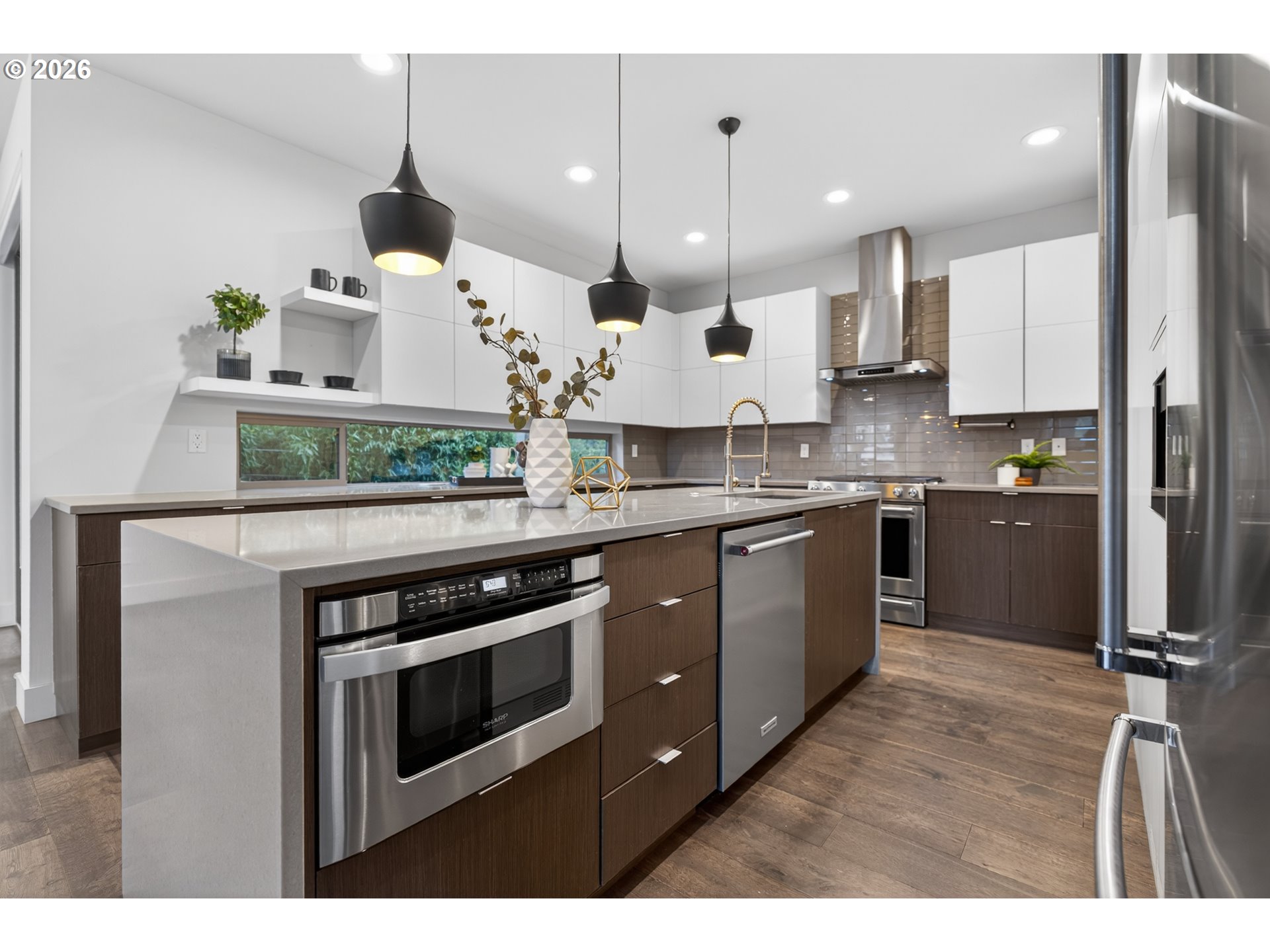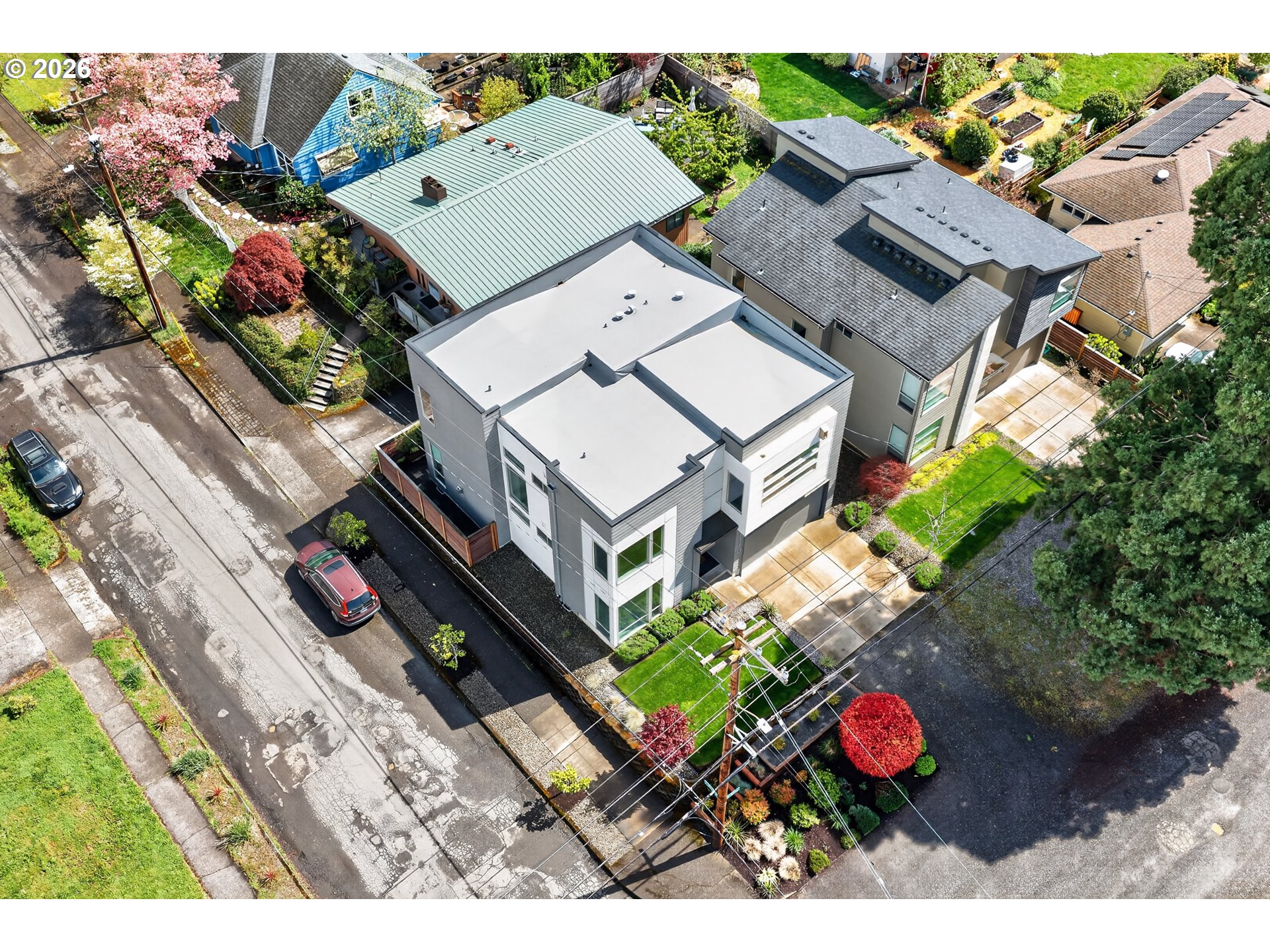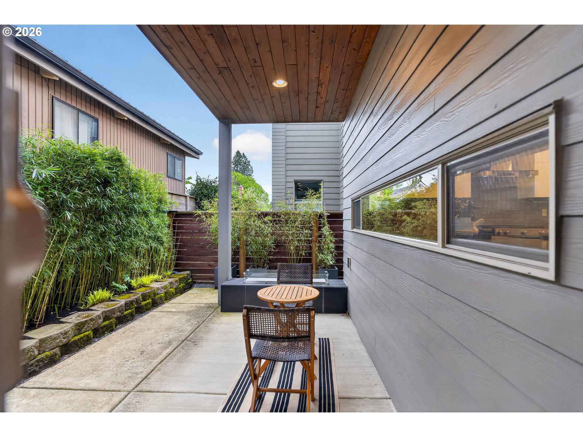 PLEASE NOTE: Correct address is 7110 SE 42nd Ave, Portland. Open Sun 12-2pm | Striking modern home in the heart of Woodstock. Two-tone board and batten siding and floor-to-ceiling windows, thoughful landscape & vibrant Japanese maple make a statement from the curb. Inside, wide-plank hardwood floors flow through an open main level anchored by a floor-to-ceiling tile surround gas fireplace, floating shelves and vaulted ceilings. The chef's kitchen features a large quartz island with island seating, two-tone cabinetry, stainless steel appliances, gas oven, built-in Miele espresso maker, french door refrigerator with bottom freezer, and drawer microwave. The dining area opens directly to a covered cedar-ceiling patio with a gas fire feature, surrounded by lush bamboo for privacy. The primary suite is generous with a tray ceiling, sitting area, attached bathroom with heated floors, freestanding soaking tub, glass-enclosed walk-in shower and a bright walk-in closet with built-in shelving. Flexible main-level room with frosted glass French doors works perfectly as a home office or library. Attached double car garage, Central heat & AC, new roof. Corner lot, fenced yard make this one easy home to live in! Location is a 10!