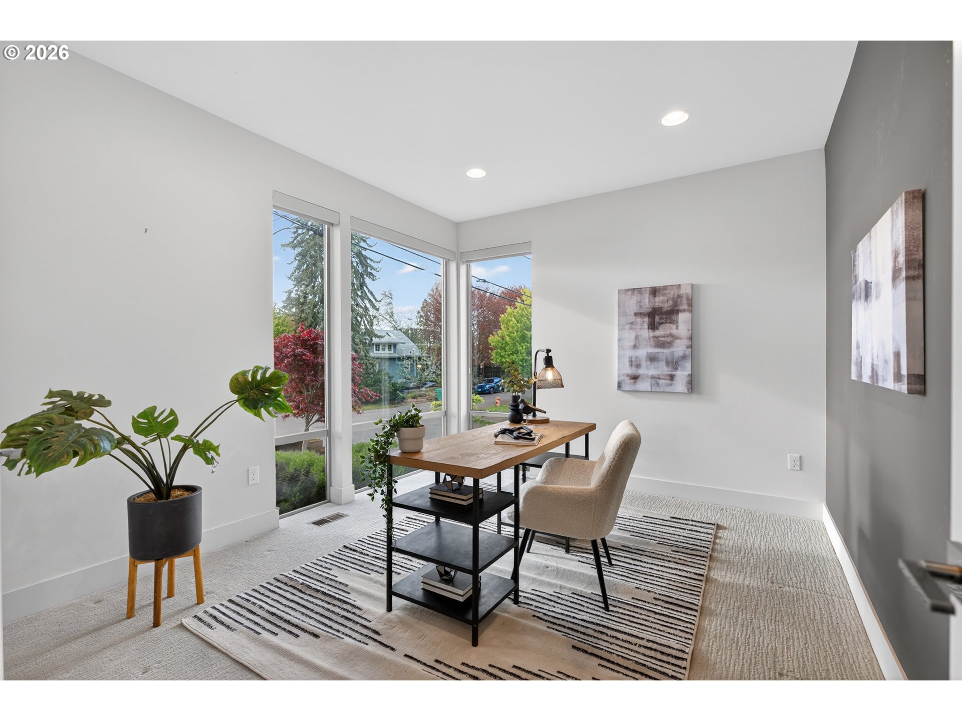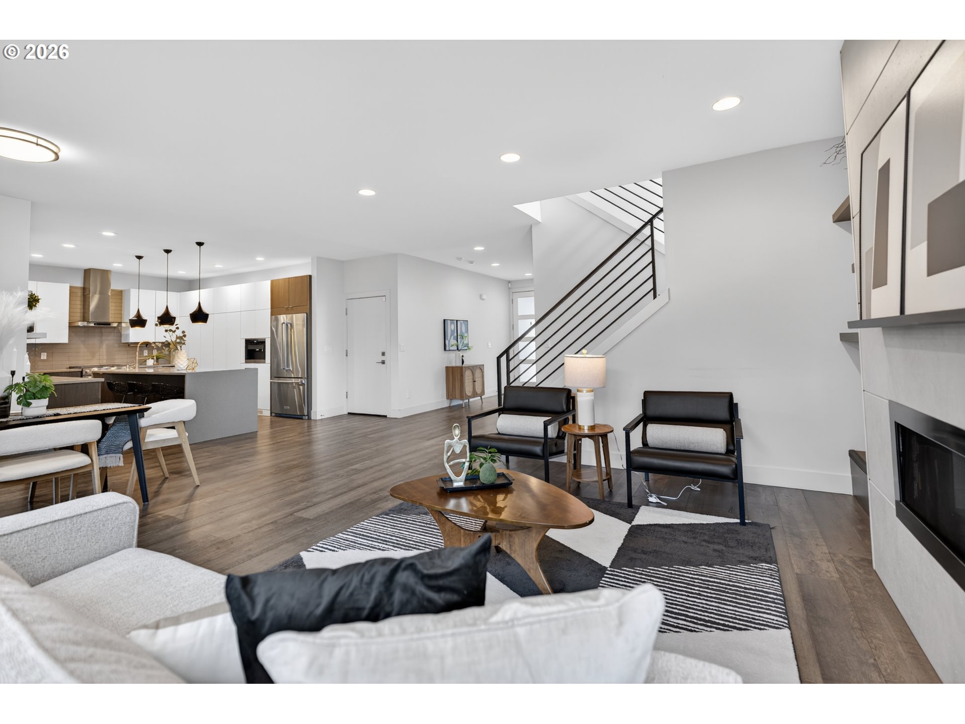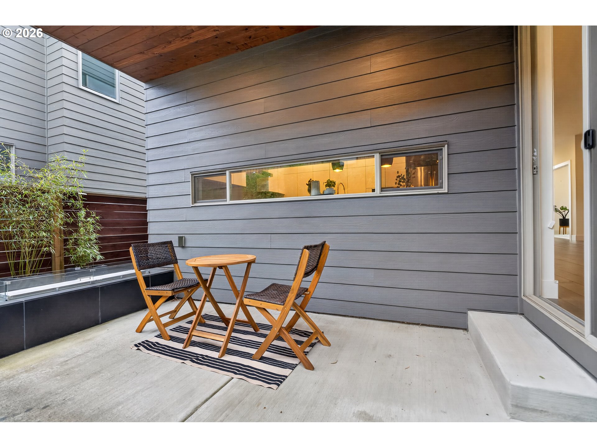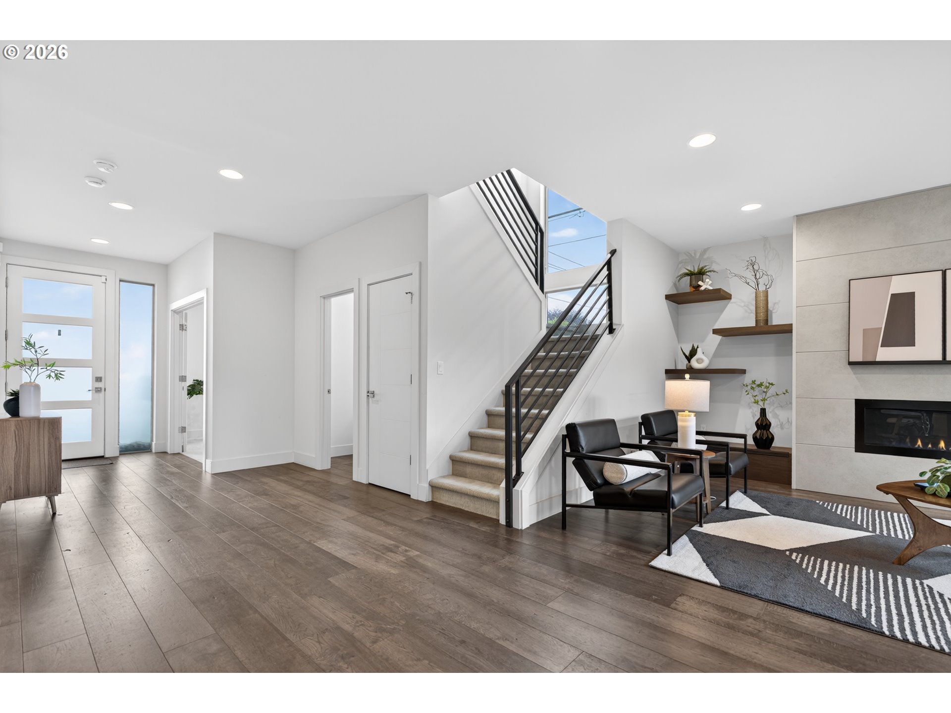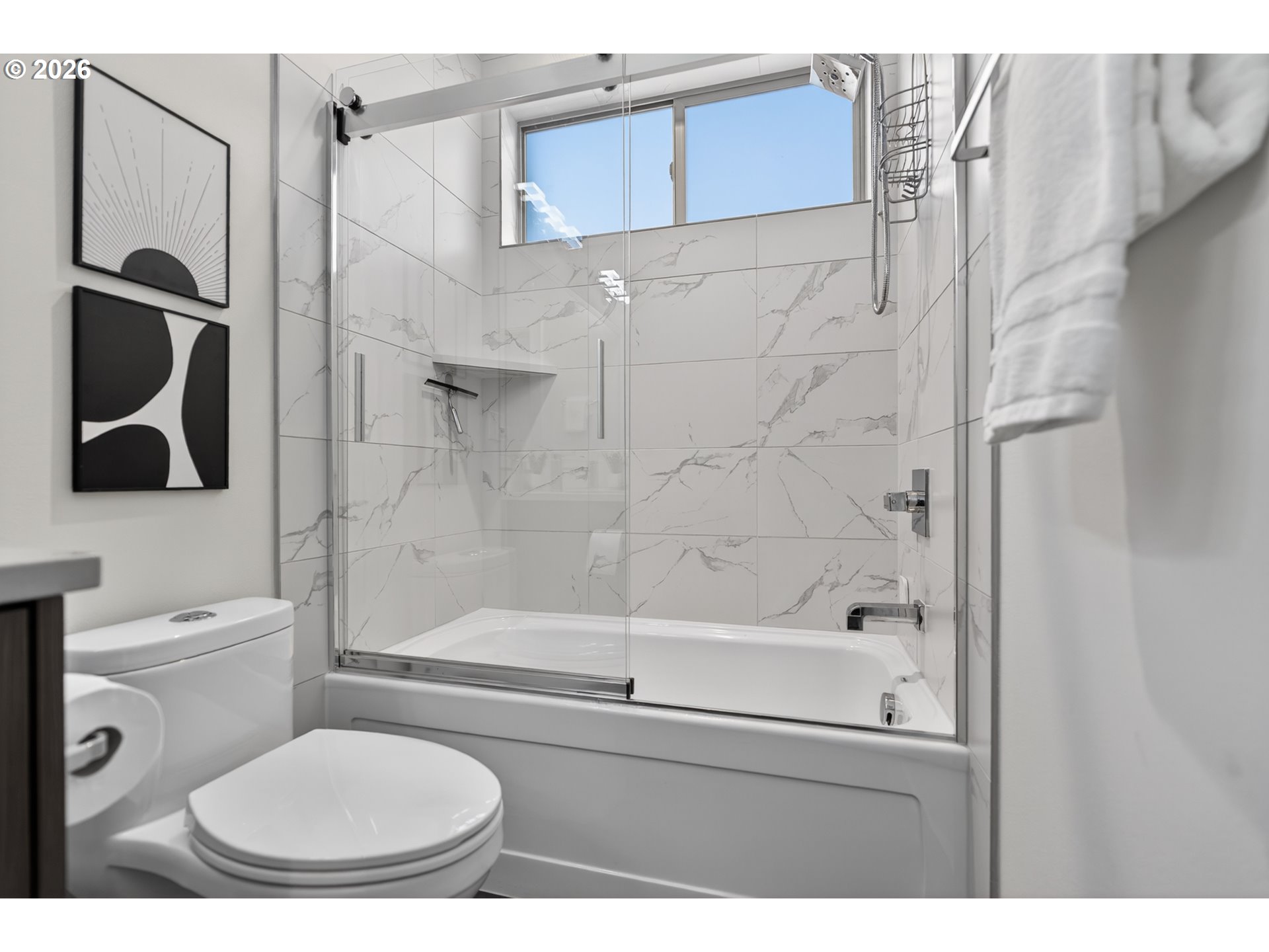 PLEASE NOTE: Correct address is 7110 SE 42nd Ave, Portland. Open Sun 12-2pm | Striking modern home in the heart of Woodstock. Two-tone board and batten siding and floor-to-ceiling windows, thoughful landscape & vibrant Japanese maple make a statement from the curb. Inside, wide-plank hardwood floors flow through an open main level anchored by a floor-to-ceiling tile surround gas fireplace, floating shelves and vaulted ceilings. The chef's kitchen features a large quartz island with island seating, two-tone cabinetry, stainless steel appliances, gas oven, built-in Miele espresso maker, french door refrigerator with bottom freezer, and drawer microwave. The dining area opens directly to a covered cedar-ceiling patio with a gas fire feature, surrounded by lush bamboo for privacy. The primary suite is generous with a tray ceiling, sitting area, attached bathroom with heated floors, freestanding soaking tub, glass-enclosed walk-in shower and a bright walk-in closet with built-in shelving. Flexible main-level room with frosted glass French doors works perfectly as a home office or library. Attached double car garage, Central heat & AC, new roof. Corner lot, fenced yard make this one easy home to live in! Location is a 10!