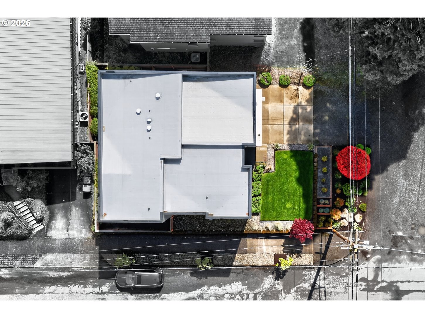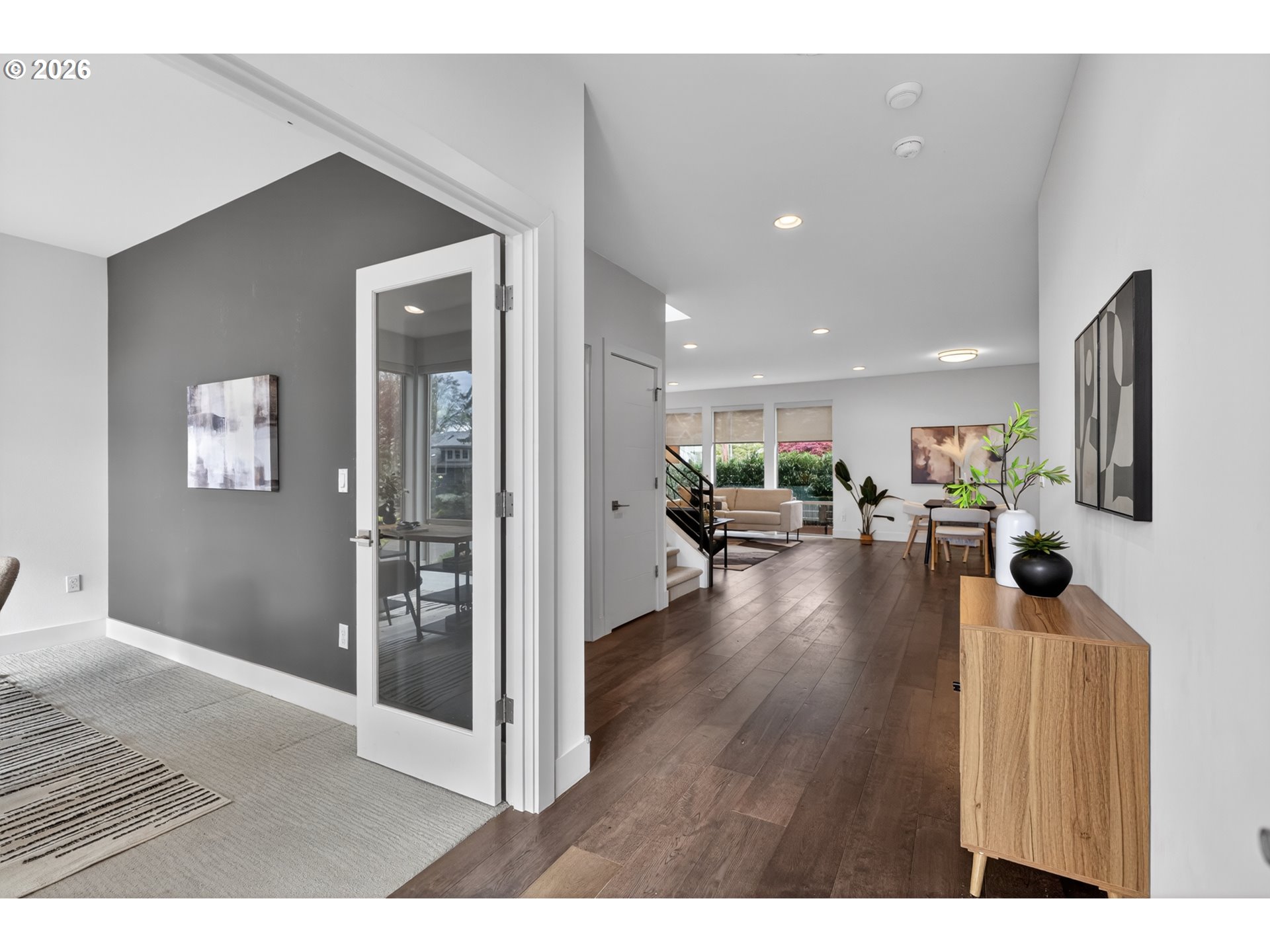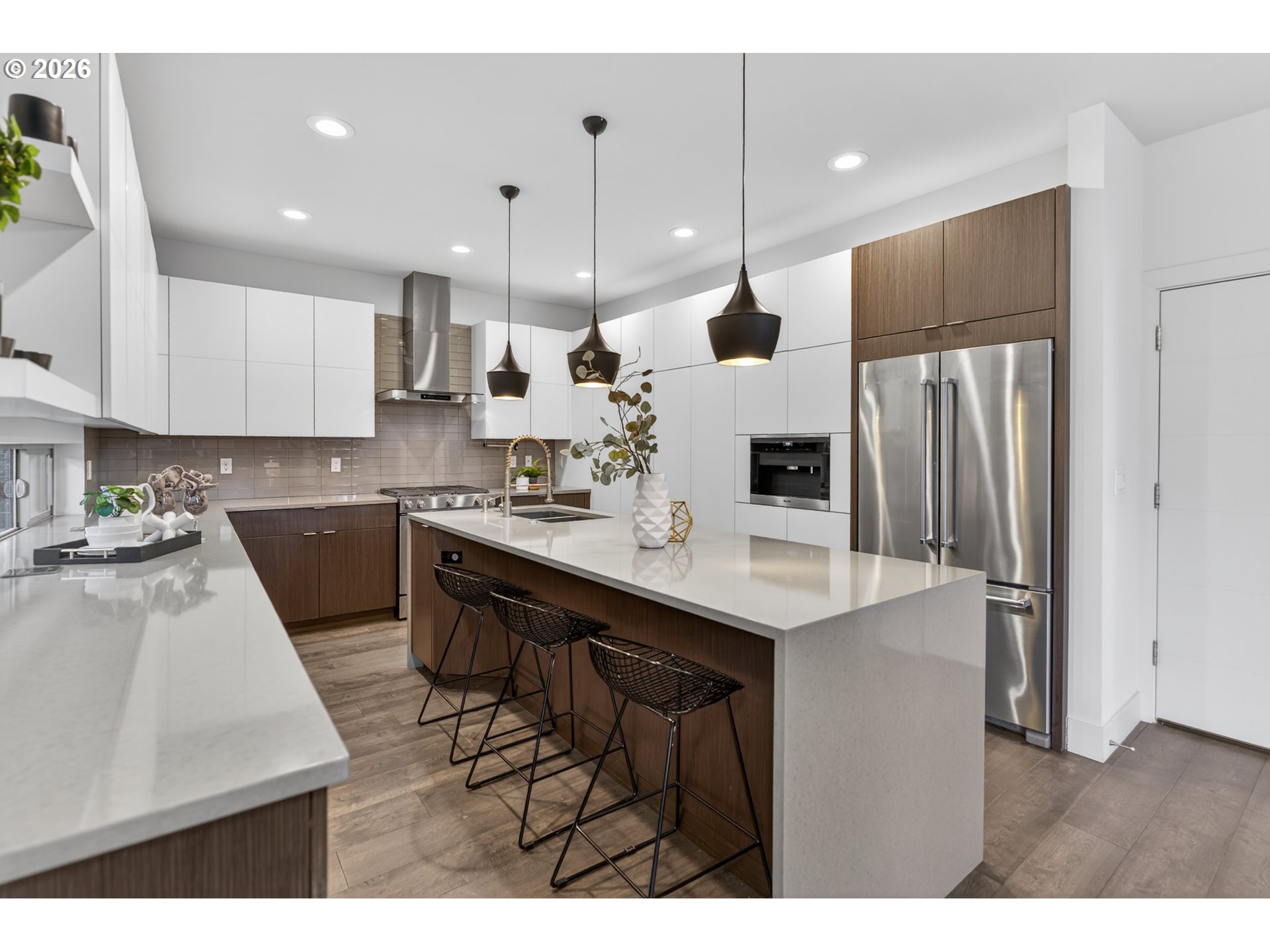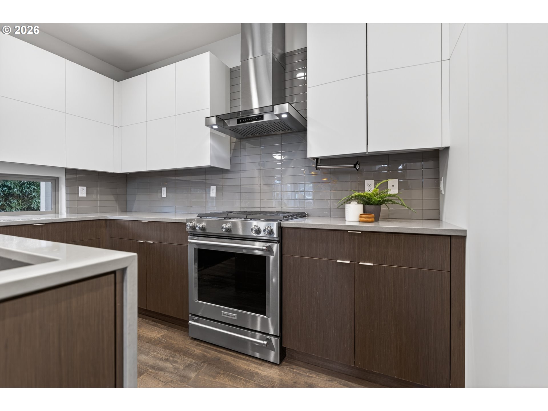 PLEASE NOTE: Correct address is 7110 SE 42nd Ave, Portland. Open Sun 12-2pm | Striking modern home in the heart of Woodstock. Two-tone board and batten siding and floor-to-ceiling windows, thoughful landscape & vibrant Japanese maple make a statement from the curb. Inside, wide-plank hardwood floors flow through an open main level anchored by a floor-to-ceiling tile surround gas fireplace, floating shelves and vaulted ceilings. The chef's kitchen features a large quartz island with island seating, two-tone cabinetry, stainless steel appliances, gas oven, built-in Miele espresso maker, french door refrigerator with bottom freezer, and drawer microwave. The dining area opens directly to a covered cedar-ceiling patio with a gas fire feature, surrounded by lush bamboo for privacy. The primary suite is generous with a tray ceiling, sitting area, attached bathroom with heated floors, freestanding soaking tub, glass-enclosed walk-in shower and a bright walk-in closet with built-in shelving. Flexible main-level room with frosted glass French doors works perfectly as a home office or library. Attached double car garage, Central heat & AC, new roof. Corner lot, fenced yard make this one easy home to live in! Location is a 10!