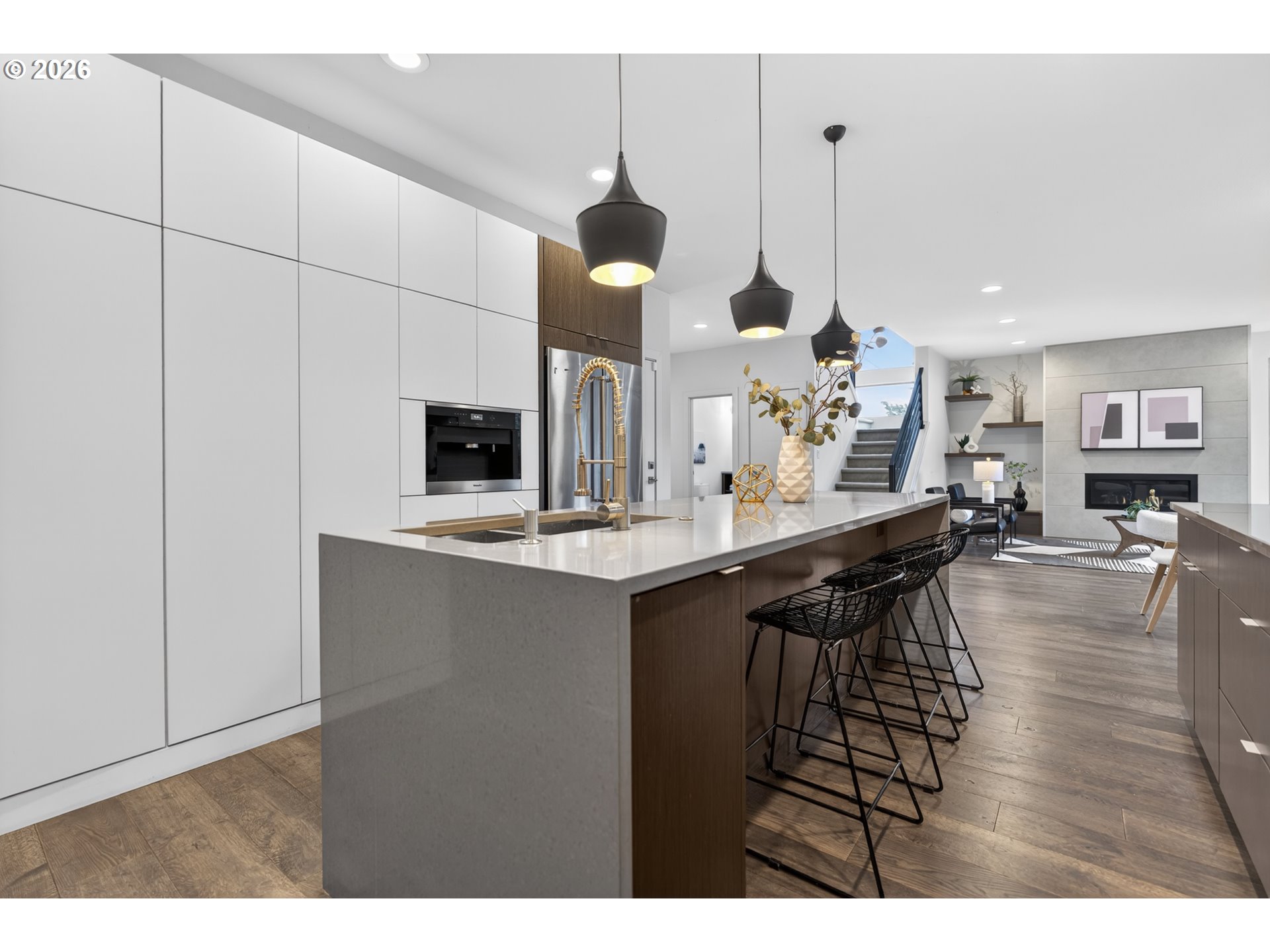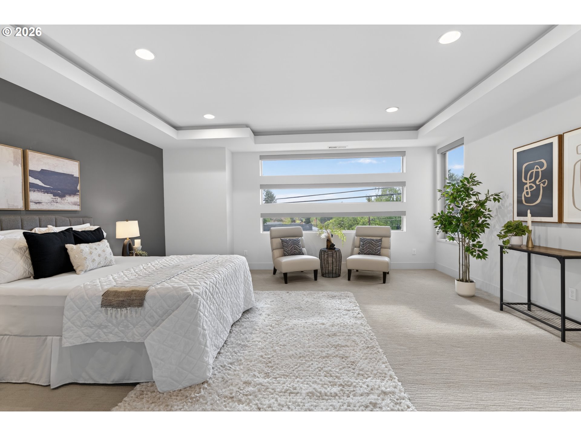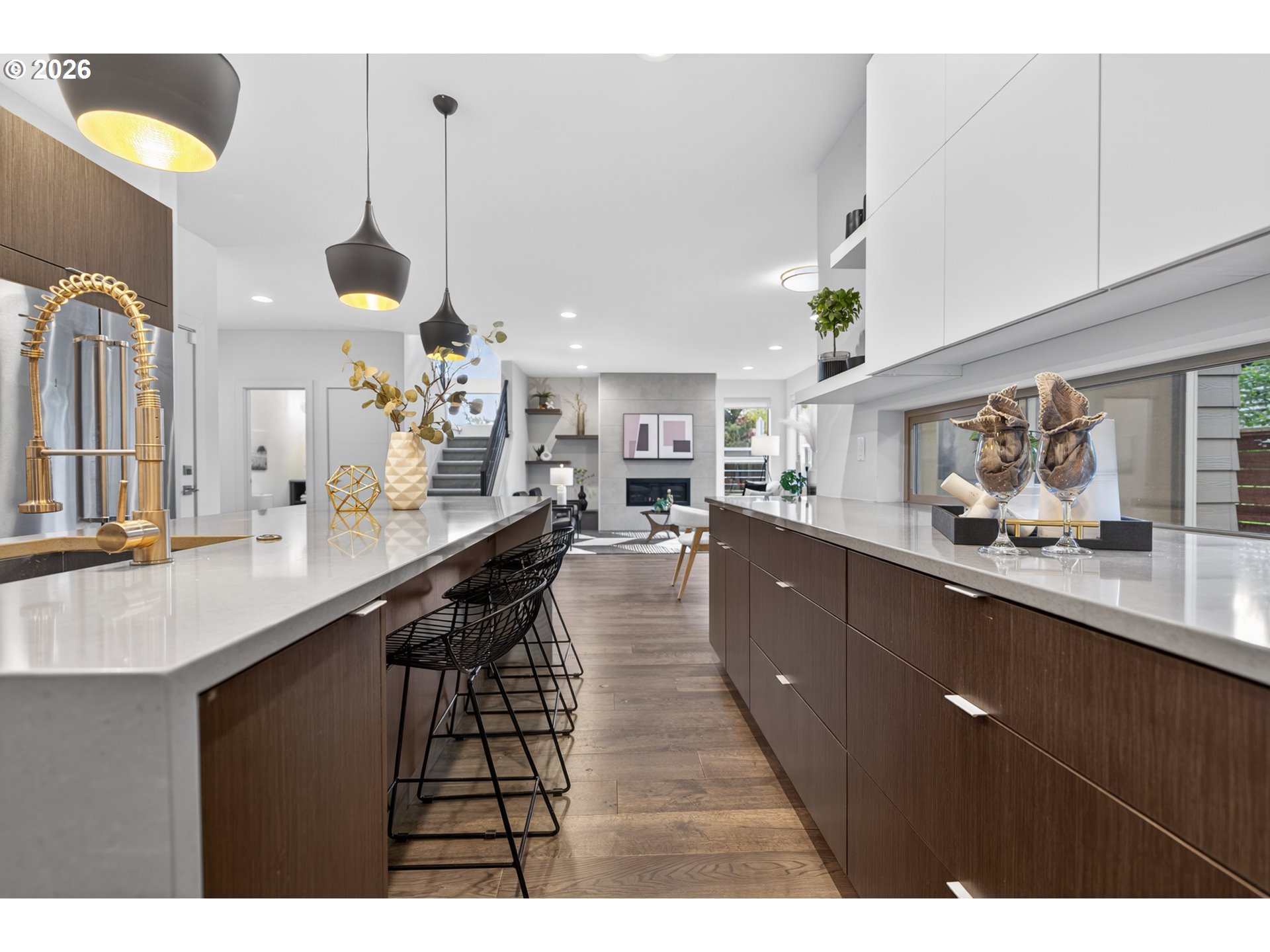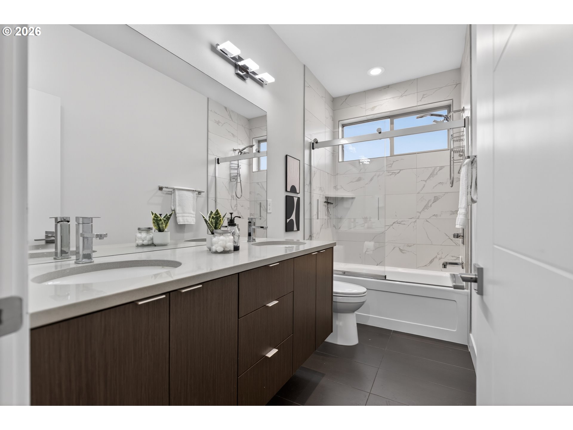 PLEASE NOTE: Correct address is 7110 SE 42nd Ave, Portland. Open Sun 12-2pm | Striking modern home in the heart of Woodstock. Two-tone board and batten siding and floor-to-ceiling windows, thoughful landscape & vibrant Japanese maple make a statement from the curb. Inside, wide-plank hardwood floors flow through an open main level anchored by a floor-to-ceiling tile surround gas fireplace, floating shelves and vaulted ceilings. The chef's kitchen features a large quartz island with island seating, two-tone cabinetry, stainless steel appliances, gas oven, built-in Miele espresso maker, french door refrigerator with bottom freezer, and drawer microwave. The dining area opens directly to a covered cedar-ceiling patio with a gas fire feature, surrounded by lush bamboo for privacy. The primary suite is generous with a tray ceiling, sitting area, attached bathroom with heated floors, freestanding soaking tub, glass-enclosed walk-in shower and a bright walk-in closet with built-in shelving. Flexible main-level room with frosted glass French doors works perfectly as a home office or library. Attached double car garage, Central heat & AC, new roof. Corner lot, fenced yard make this one easy home to live in! Location is a 10!