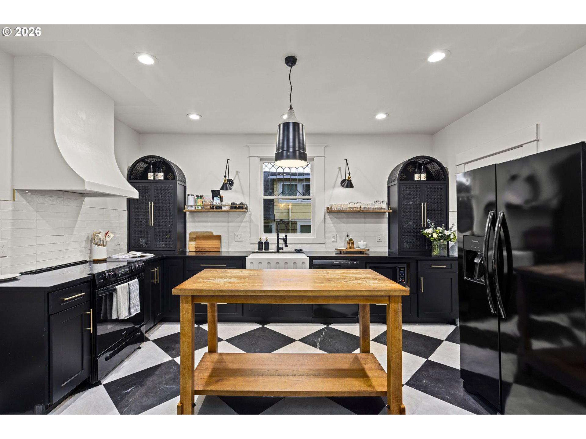 Classic Portland Foursquare home, lovingly restored and updated to offer modern convenience and comfort while preserving its original charm. The seller has recently invested in new custom double-pane windows, enhancing energy efficiency and year-round comfort, along with a new roof installed in 2022, and new 200 amp electrical service. Inside, you will find timeless character paired with key updates for today’s lifestyle, including a dedicated office on the main floor and a light-filled sunroom with an adjoining powder bathroom. Upstairs, three generously sized bedrooms each feature walk-in closets, offering both comfort and functionality. Situated on an oversized lot, the property features all-new landscaping, including a spacious paver patio, irrigation system, covered outdoor living area, ambient lighting, and full fencing, perfect for relaxing or entertaining. A large driveway provides ample off-street parking, complemented by an oversized one-car garage.The basement has impressive ceiling height, offering excellent potential for additional finished square footage and future equity. This home features a rare blend of historic charm and modern upgrades in a beautifully enhanced setting. [Home Energy Score = 1. HES Report at https://rpt.greenbuildingregistry.com/hes/OR10202888]