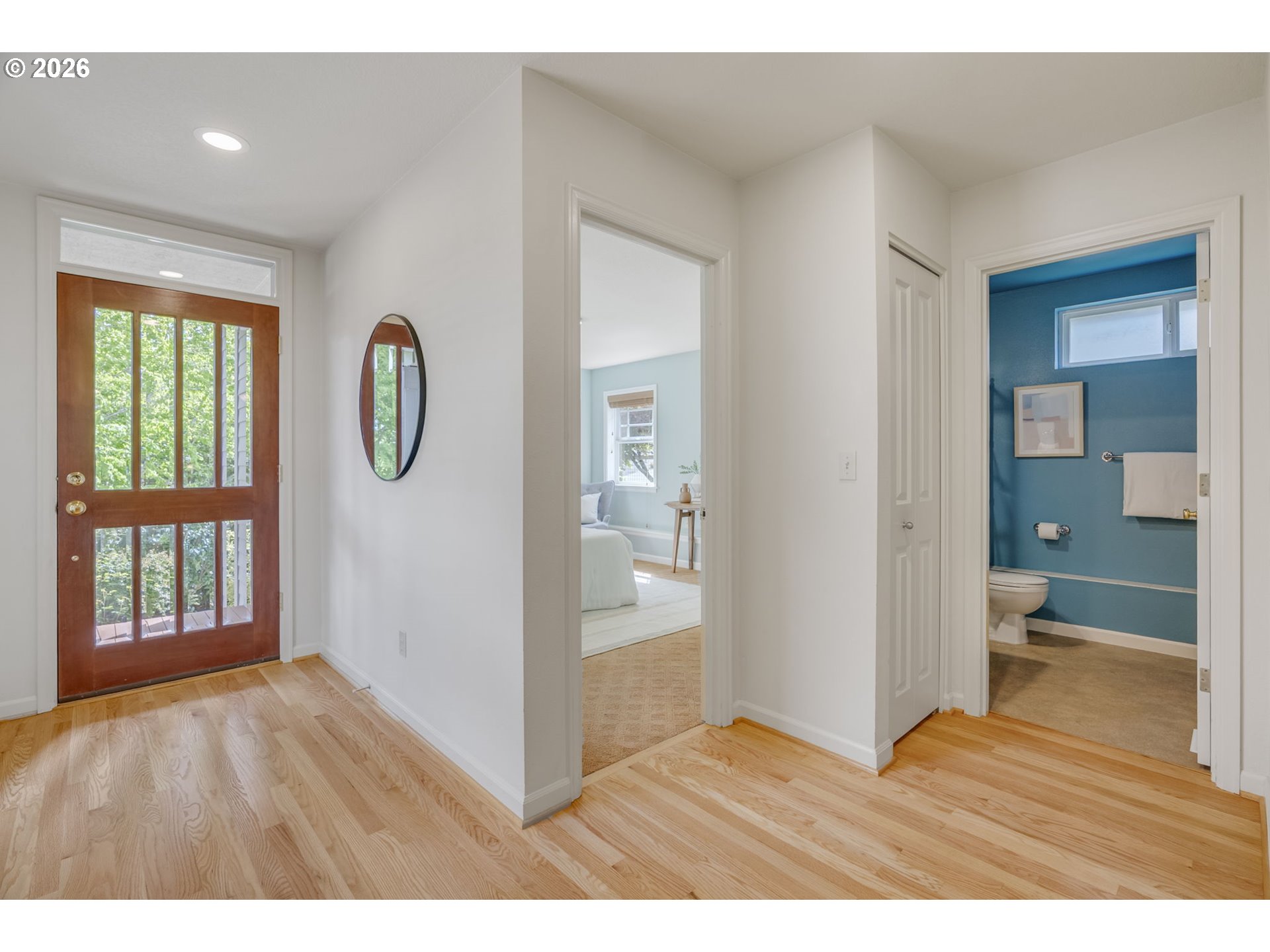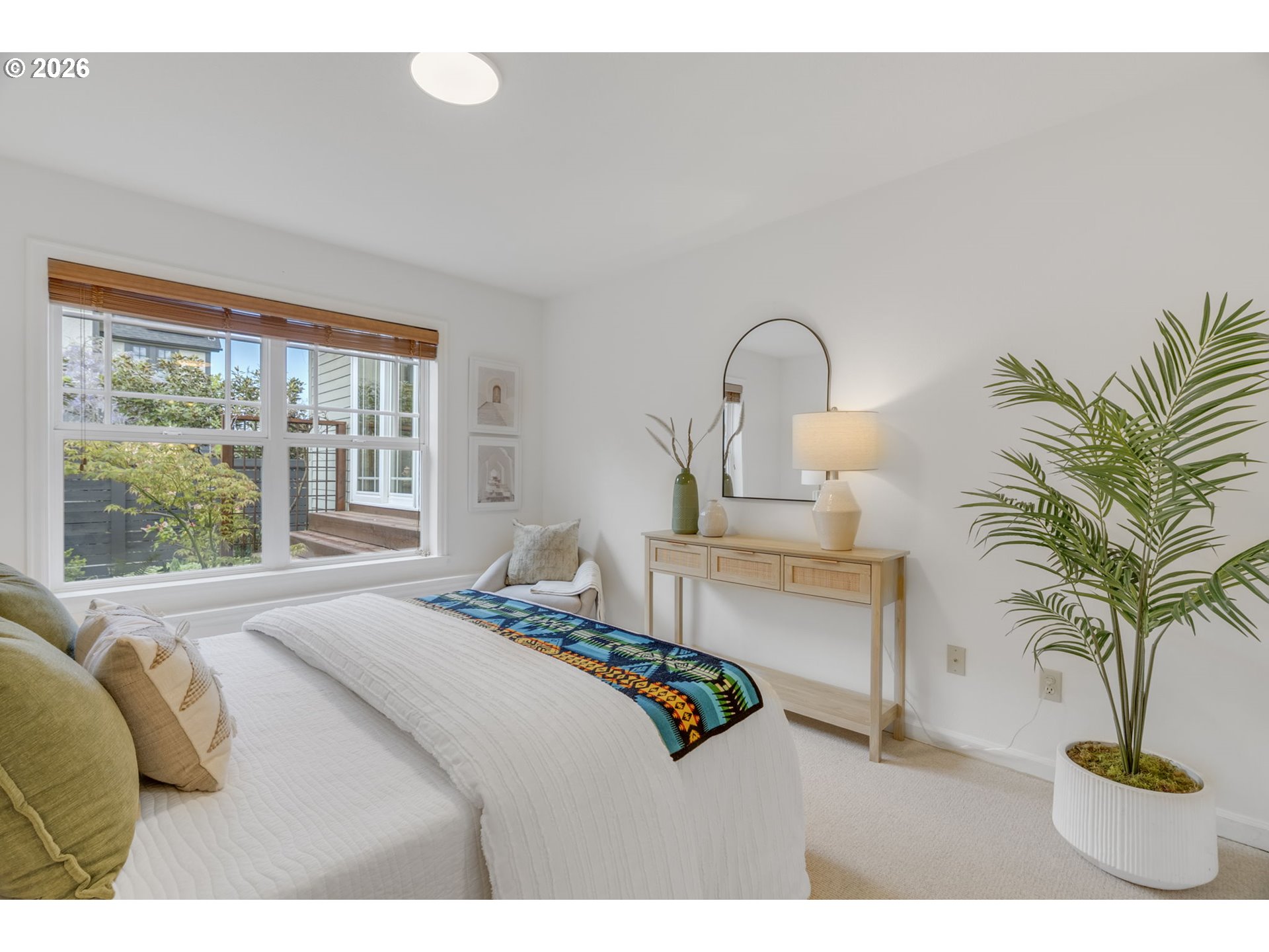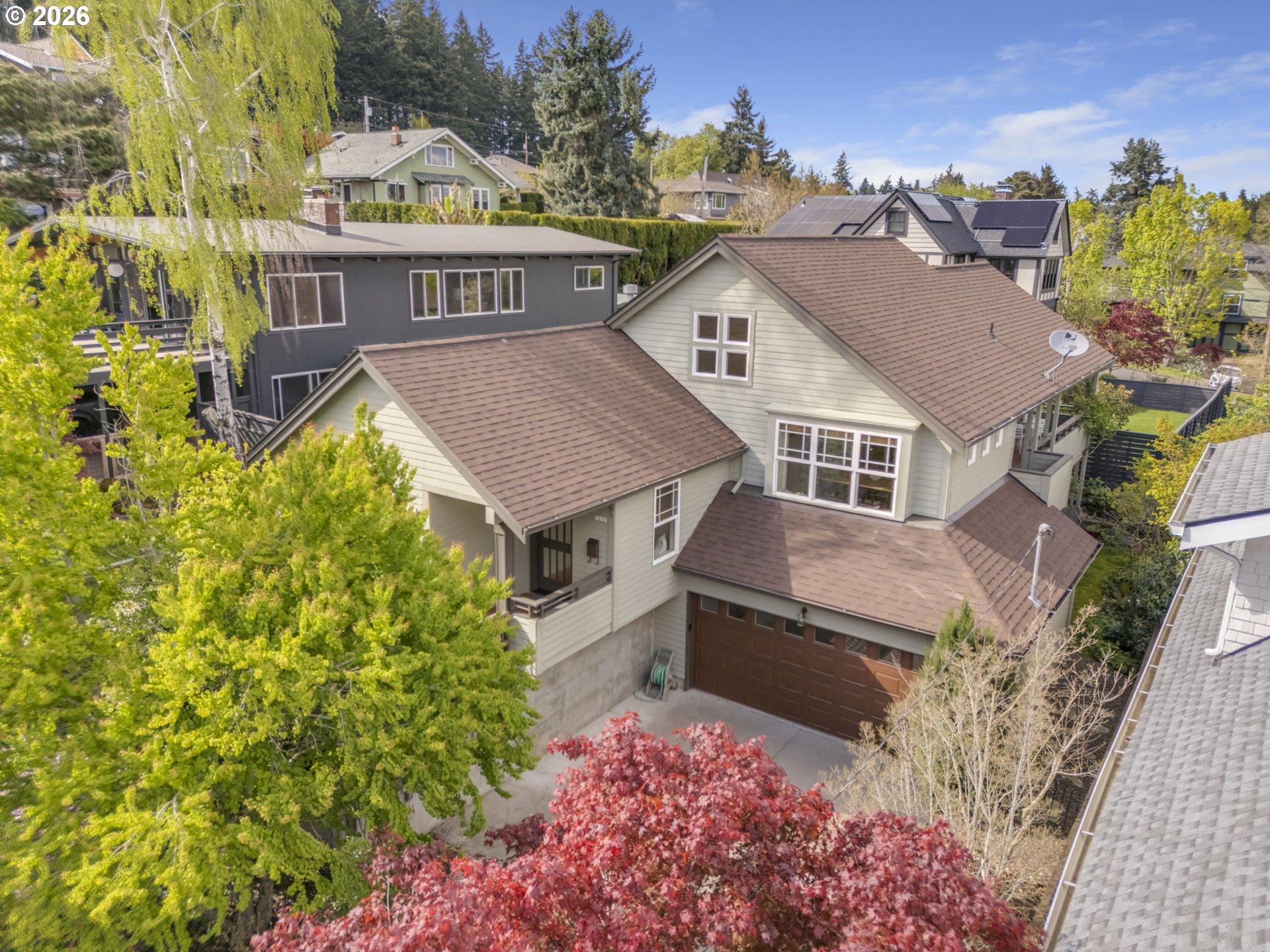 Perched on the upper east side of Mt. Tabor, this light-filled, 2002 3-bedroom, 3-bath home offers a refined balance of privacy, natural beauty and effortless livability in one of Portland’s most cherished neighborhoods. Just a block from a quiet park entrance, this home is brilliantly designed for its lot and offers a lifestyle rooted in nature. Mt. Hood views, forested trails, lush vegetation and fresh air will become part of your daily rhythm. All of this, with easy access to the best of SE Portland’s dining, culture and conveniences. Thoughtfully designed for both everyday comfort and gracious entertaining, the main level features a spacious primary suite as well as the second bedroom and full bath. A light-filled formal dining room and well-appointed kitchen are framed by bright and airy lofted ceilings. The main level is anchored by a cozy living room with a fireplace, opening seamlessly to outdoor living areas. The lower level is a private retreat with an ensuite bedroom with its own exterior entrance and patio - ideal for guests, extended living or a quiet workspace. An oversized laundry room completes this level. Throughout this home, indoor and outdoor living are seamlessly intertwined, with multiple outdoor spaces including a generous covered deck that captures spectacular mountain views, perfect for year-round enjoyment. The fully fenced backyard creates a tranquil garden setting, with both open and covered areas to relax, gather and enjoy. An attached two-car garage adds everyday ease, with ample space for storage, gear and seamless arrivals and departures. Set back from the street with mature landscaping, this home feels both secluded and grounded. Enjoy direct access to Mt. Tabor’s trails and reservoirs, and neighborhood favorites just moments away - a place where elegant living and natural connection exist in quiet harmony. [Home Energy Score = 7. HES Report at https://rpt.greenbuildingregistry.com/hes/OR10246545]