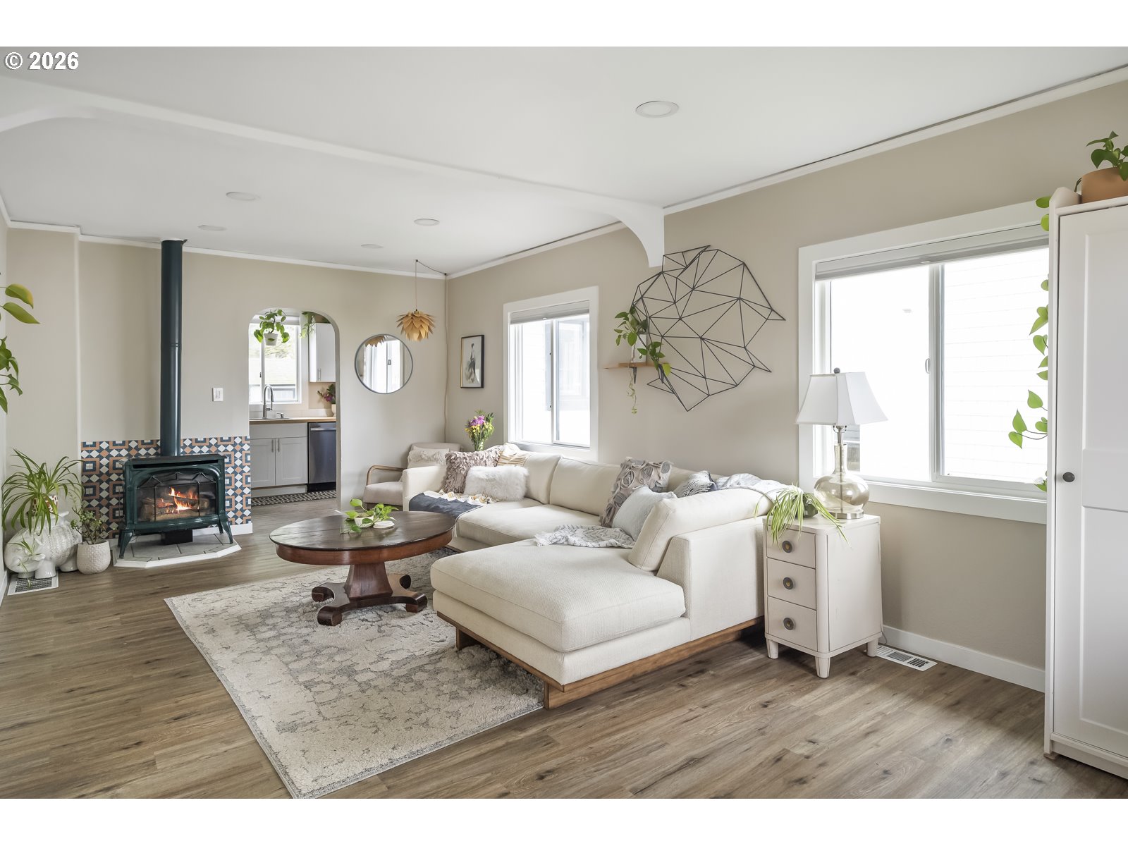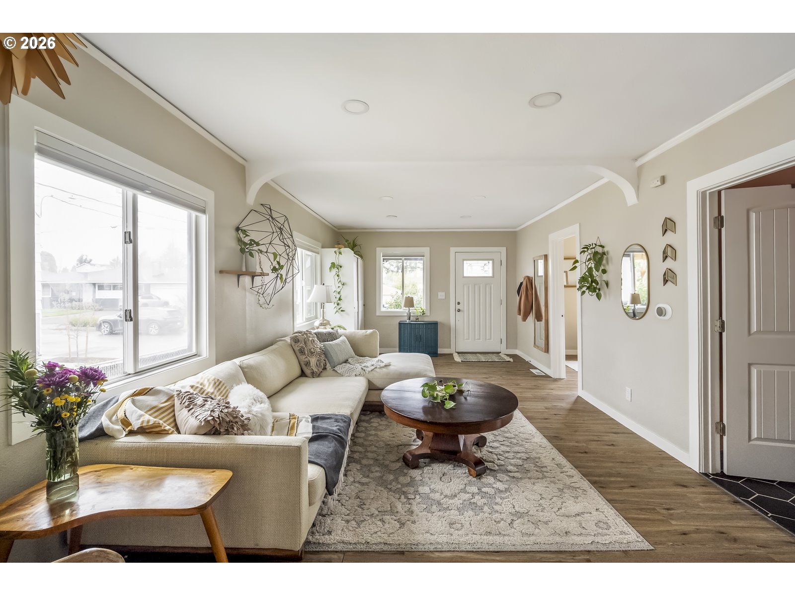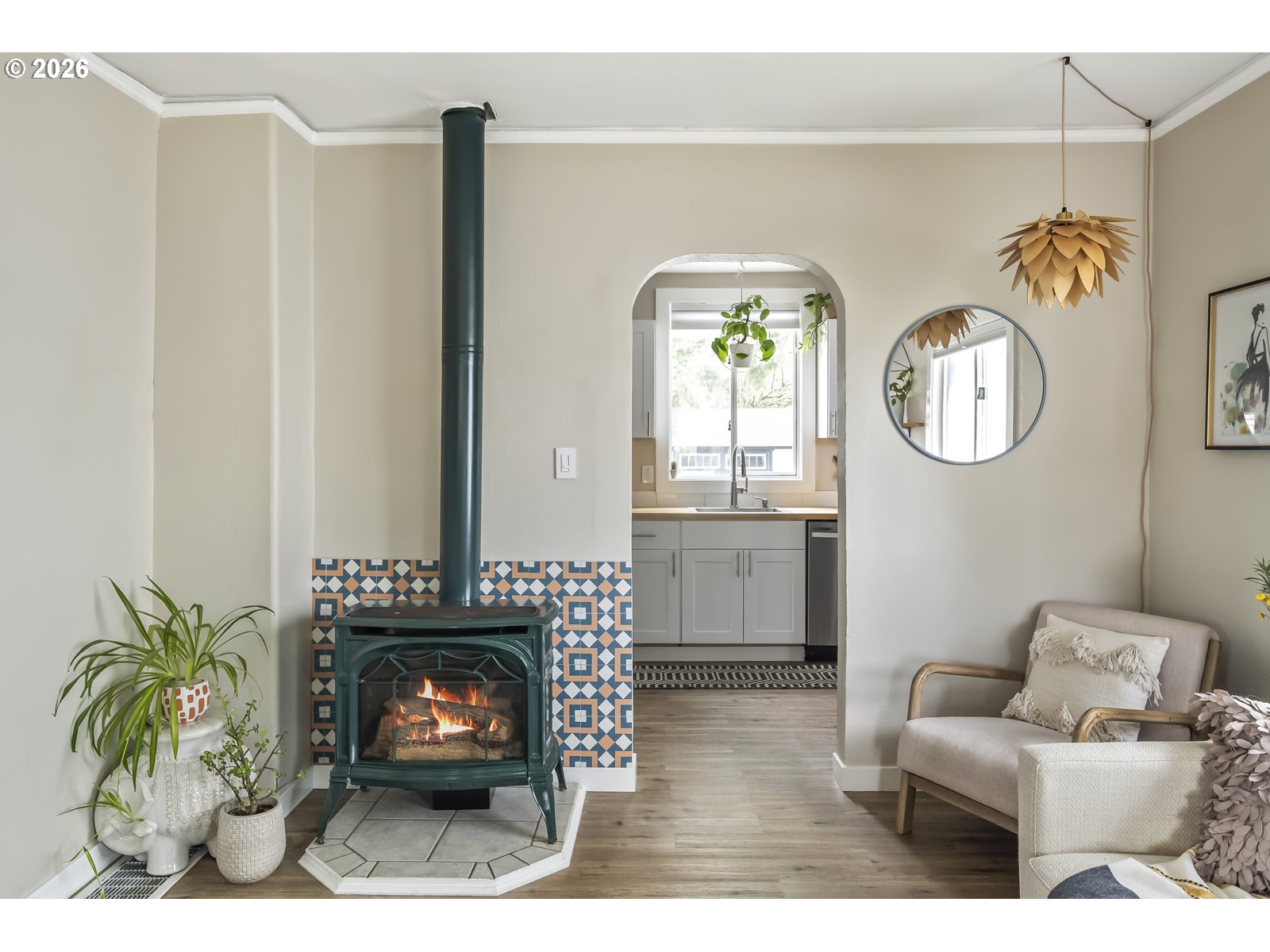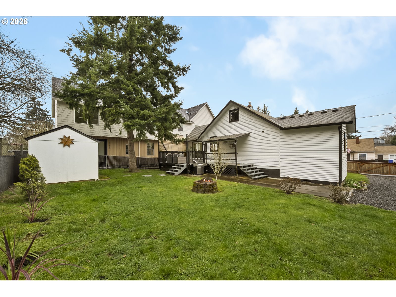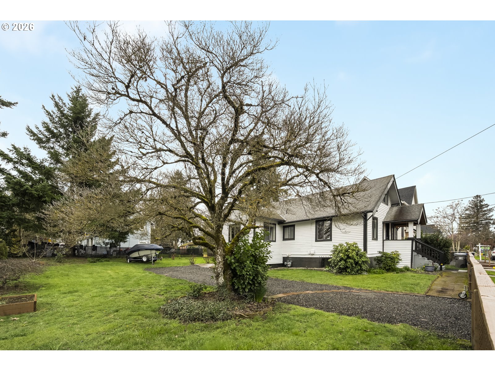 Welcome home to a sweet farmhouse on a sprawling (.17 acres!), lot in vibrant Brentwood Darlington. A cozy gas fireplace keeps the large, bright living room warm. The well-designed kitchen leads into the sweetest dining room with direct access to a stunner of a back porch. The cute-as-a-button updated bathroom, second bedroom, and vaulted primary bedroom all reside on the main floor. In the sunny upstairs, you’ll find a freshly carpeted, flexible space to use as a third bedroom or excellent work-from-home space. The huge, fully fenced yard, perfect for an urban farm, contains a Japanese Maple, a gorgeous Dogwood, rose bushes, and a raised bed for growing your own vegetables. This corner lot is a great candidate for building an ADU with room to spare. The large, clean basement and generous closet space give this home storage in spades. With updated plumbing, as well as new air conditioning in 2023, new water line in 2009, this house is ready to be your home. The delightful neighborhood is known for its beautiful parks and trails, and the recently renovated Mt Scott community center. Nextdoor rated Brentwood Darlington a “98” score in friendliness. [Home Energy Score = 3. HES Report at https://rpt.greenbuildingregistry.com/hes/OR10206822]