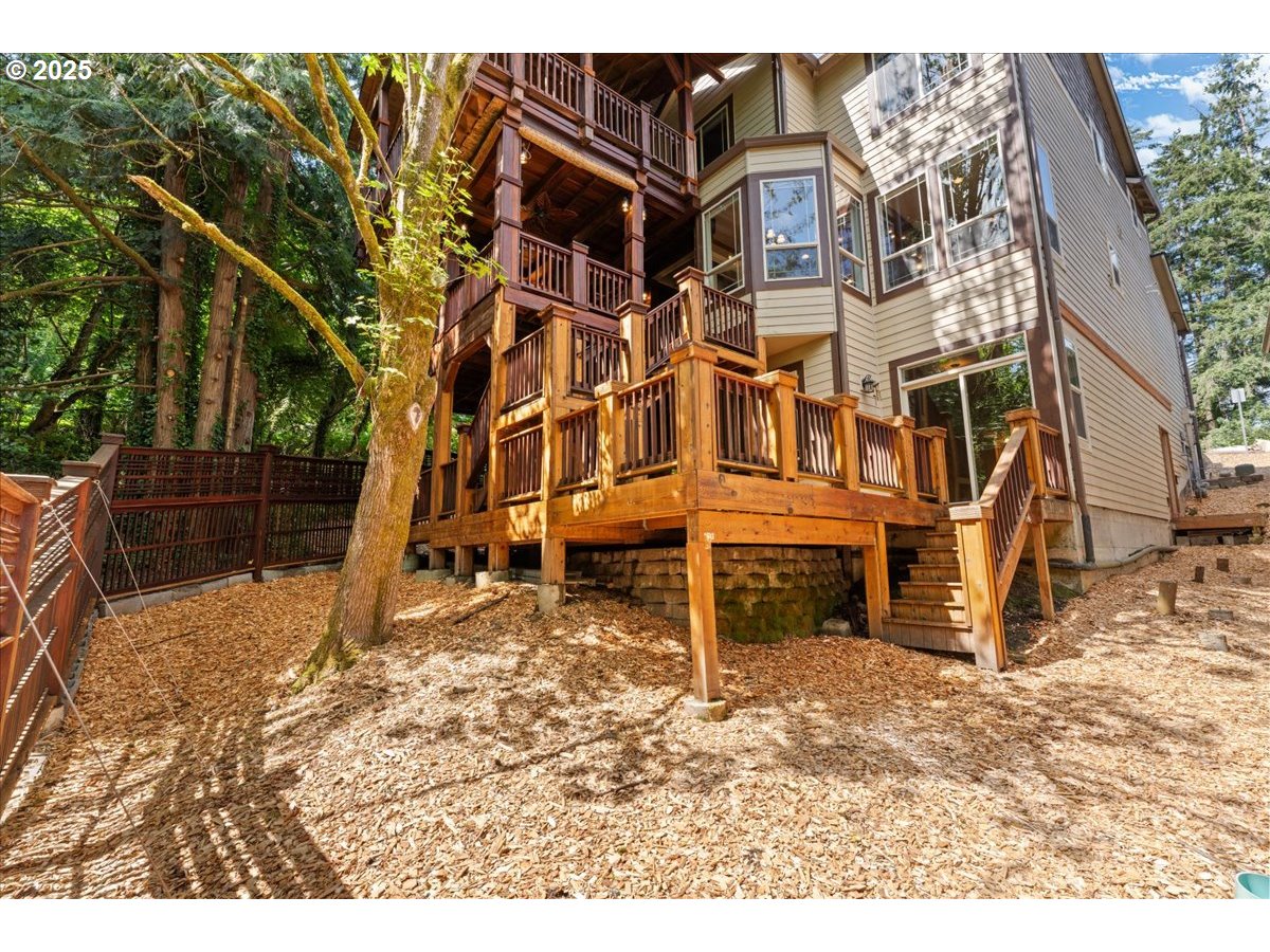 Welcome to your dream home, where craftsmanship meets modern amenities. Step outside to enjoy one stunning cedar-covered deck and two luxurious tiger wood-covered decks, perfect for year-round entertaining or quiet evenings surrounded by nature. The backyard is a peaceful retreat, embraced by greenery and natural beauty. It's also low maintenance and easy to keep up. With this home you'll have access to many amenities, including a pool, clubhouse, and a well-maintained nature trail nearby. Inside, you’ll be greeted by natural lighting highlighting the hardwood hickory floors and cabinets, granite countertops, and timeless wood accents throughout. The kitchen is a chef’s delight, featuring stainless steel appliances, a gas stove, and a convenient eating bar. The primary bedroom offers a private bathroom, creating a tranquil escape, while two cozy gas fireplaces add warmth and ambiance throughout the home. You’ll find abundant storage options, making it easy to keep everything organized and tidy. Enjoy the convenience of a spacious two-car garage, gas hookup for your BBQ or fire pit, and hard-wired for speakers with surround sound—ideal for entertaining or relaxing with your favorite music. To top it all off, the home boasts a brand-new roof (2024) and a leaffilter gutter system with screens, both with a transferable warranty, offering peace of mind for years to come. This property truly combines style, function, and natural beauty—don’t miss your chance to call it home! [Home Energy Score = 5. HES Report at https://rpt.greenbuildingregistry.com/hes/OR10237897]