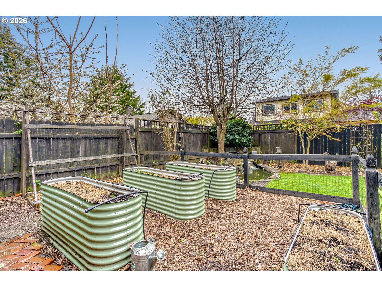 CoveredDeck, CoveredPatio, Fenced, FirePit, Garden, RaisedBeds, SecurityLights, ToolShed, WaterFeature, Yard