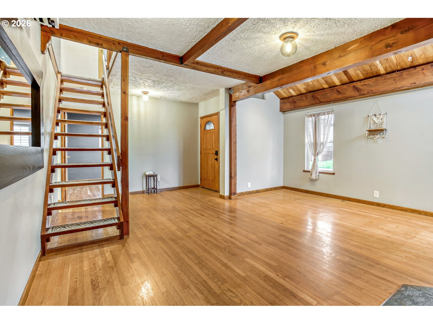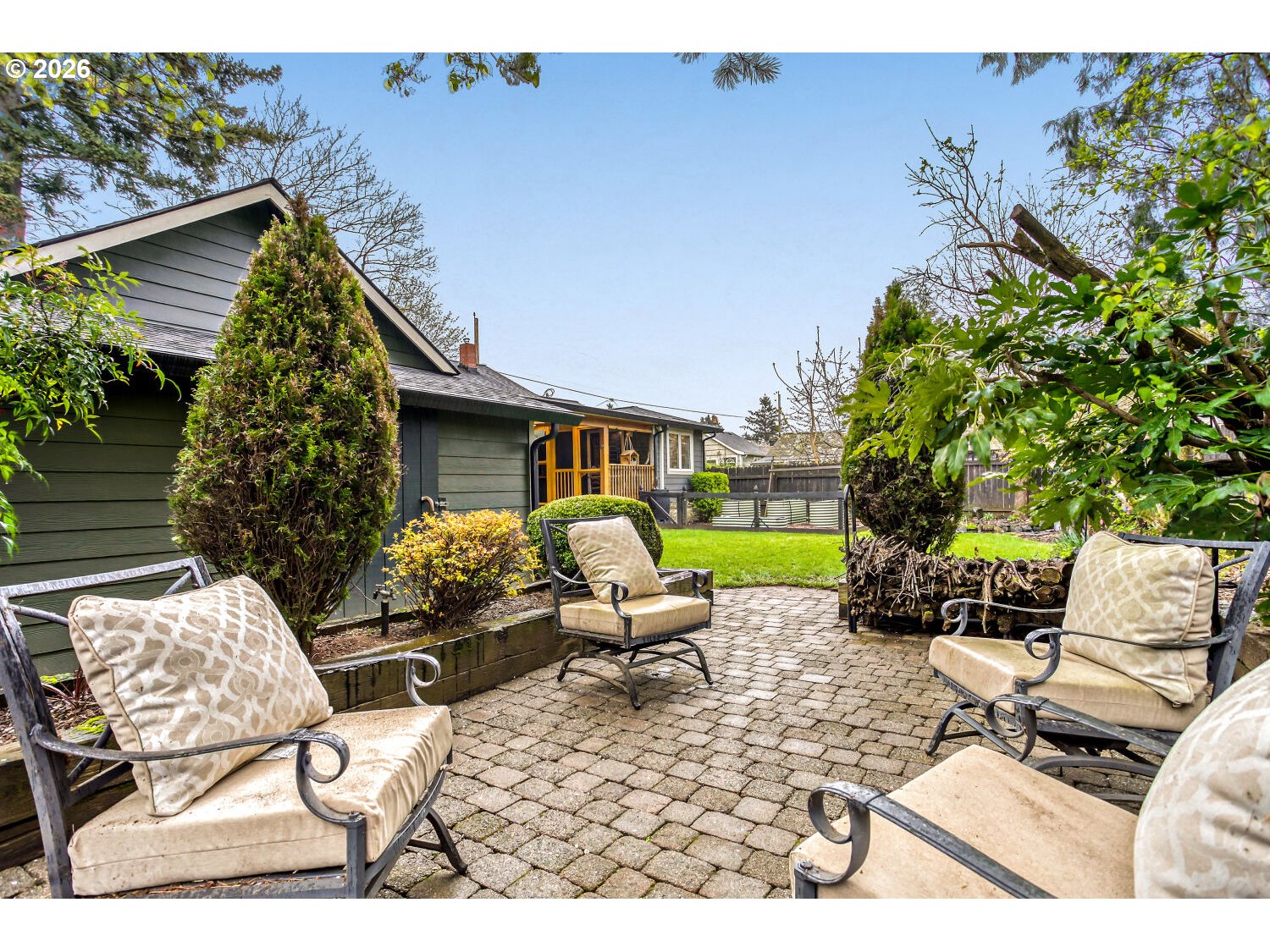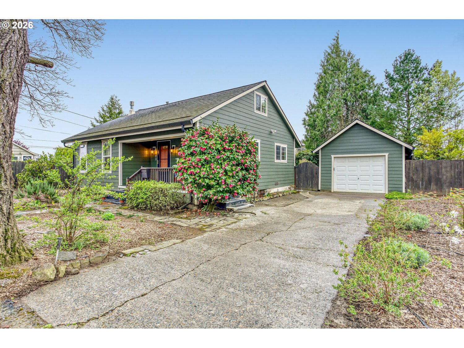 Don't miss out on ths fabulous Turn Key Bungalow! Old time PDX charm and character; you'll love the large covered front porch with the mail slot and old time charm that greets you each day. This spacious 3 bedrooms and 2 baths home has beautiful beamed ceilings, inside paint colors that draw the outdoors in, creating a calm and relaxing environment plus awesome touches like the gas stove in the living room create cozy nights. The home boast a large and well updated kitchen: Stainless Steel Appliances, granite countertops, updated cupboards. The Kitchen has all the right touches updated in 2020. The primary bedroom has a built-in wardrobe and access to the covered patio through the french doors. Main level also has a office or non-conforming 4th bedroom, laundry and 2 full baths. Upstairs bonus room and 2 bedroom. Downstairs is a basement ready for you to finish. Access to the backyard is through the french doors off the kitchen or from primary bedroom! Through these doors you'll find the most amazing yard. There's a huge covered deck with a catio that was featured in the 2025 Catio Tour! A lovely spacious private backyard with so much to take in! Standing height raised garden beds, fire pit patio area behind garage, and the lighted pond/waterfall feature in corner of the backyard for relaxing sound and atmosphere. Lawn is ready for natural habitat silver certification, not certified yet. Don't miss the "shed" behind the garage for extra storage. EV ready in garage. All appliances and tv included! Enjoy all the amazing varieties of shrubs/plants and nature; including the Peacock that is currently living in the tree out front. Yep, you read that right, Peacock! This home is beautifully updated while retaining some of the original charm. Enjoy living here and taking in all the area offers: Woodstock Shops, Errol Heights Park, Farmers Market, Food Carts, Stores, and Restaurants etc.