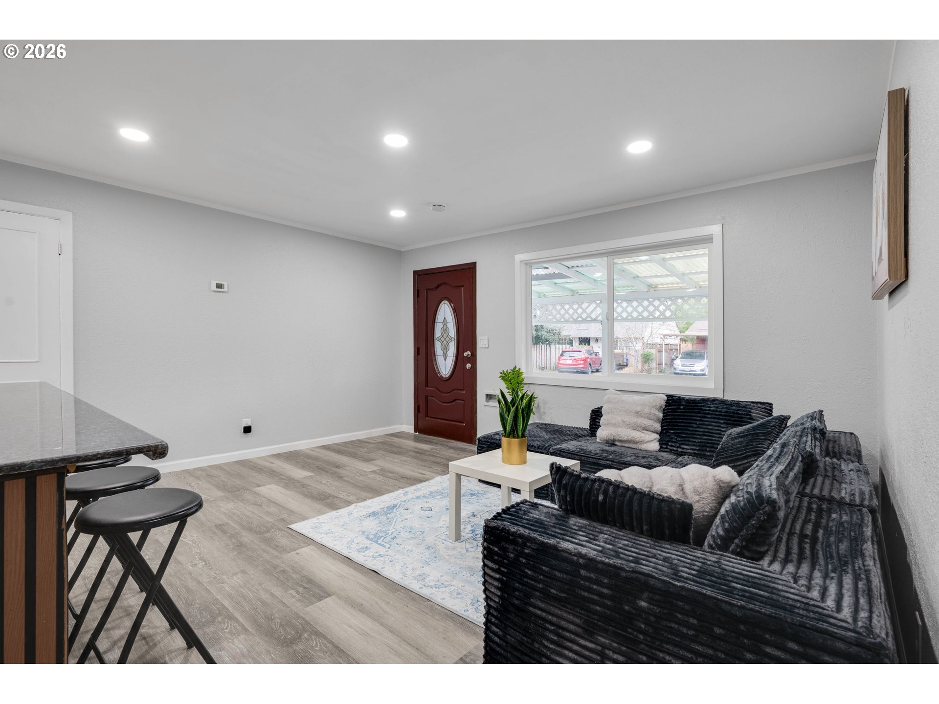 Hidden away on a serene, non-through street, this charming one-level retreat offers a seamless blend of comfort, style, and future opportunity on a fully fenced, buildable, and subdividable lot. Step inside and feel the openness unfold. A stunning, light-filled open kitchen anchors the home, where a generous breakfast bar invites slow mornings and lively gatherings. Brand new shaker cabinetry, granite countertops, a porcelain tile backsplash, and new appliances create a space that’s as beautiful as it is functional—flowing effortlessly into the living area where natural light pours in. The primary suite feels like a retreat of its own, with soaring ceilings and an airy, elevated presence. On the opposite side, two additional bedrooms offer comfort and flexibility, complemented by a thoughtfully updated bathroom featuring a porcelain tile shower, waterfall showerhead, ergonomic handheld, and a rainfall-style washbasin—bringing a spa-like touch to everyday living. Just beyond the kitchen, a practical mudroom with laundry hookups adds ease and organization, leading you out to a covered patio designed for year-round enjoyment. Raised garden bed, a toolshed, and a fully fenced yard create a space to unwind, entertain, and grow—both now and into the future. With major recent updates already complete— including roof, fiber cement siding, windows, fencing, fresh exterior and interior paint, insulation, luxury vinyl plank flooring, updated fixtures, and recessed lighting— this home is truly move-in ready. And the lifestyle? Effortless. Just a short stroll to local shops, restaurants, and any of the three nearby parks: Flavel/Harney/Brentwood City Park, where mornings begin with coffee nearby, afternoons are spent in the park, and evenings are filled with connection at home. With its rare mix of thoughtful updates, outdoor space, and future potential, this is one you’ll want to experience before someone else calls it home! [Home Energy Score = 5. HES Report at https://rpt.greenbuildingregistry.com/hes/OR10220287]