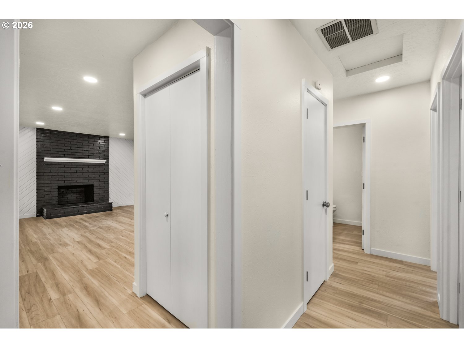 Completely updated and move-in ready, this beautifully remodeled 3-bedroom, 1.5-bath home offers modern comfort with a clean, stylish design throughout. Step inside to an open floorplan filled with natural light, highlighted by stunning laminate flooring that flows seamlessly through the main living spaces.The inviting living room centers around a striking fireplace, creating a perfect focal point for relaxing or entertaining. The updated kitchen features sleek white cabinetry, stainless steel appliances, and good counter space, opening into a dining area with sliding doors that lead out to an expansive 39x10 deck, ideal for indoor-outdoor living. The primary bedroom includes a convenient half bath and its own slider to the deck, offering a private retreat with easy outdoor access. Two additional bedrooms provide flexibility for guests, home office, or hobbies. Enjoy the outdoors on the generous .17-acre fenced lot, complete with a spacious backyard and a 23x4 covered porch for year-round enjoyment. Located just minutes from shopping, dining, and everyday amenities, and only 10 minutes to Adventist Health Portland. Nearby nature parks and hiking trails offer the perfect balance of convenience and outdoor lifestyle.