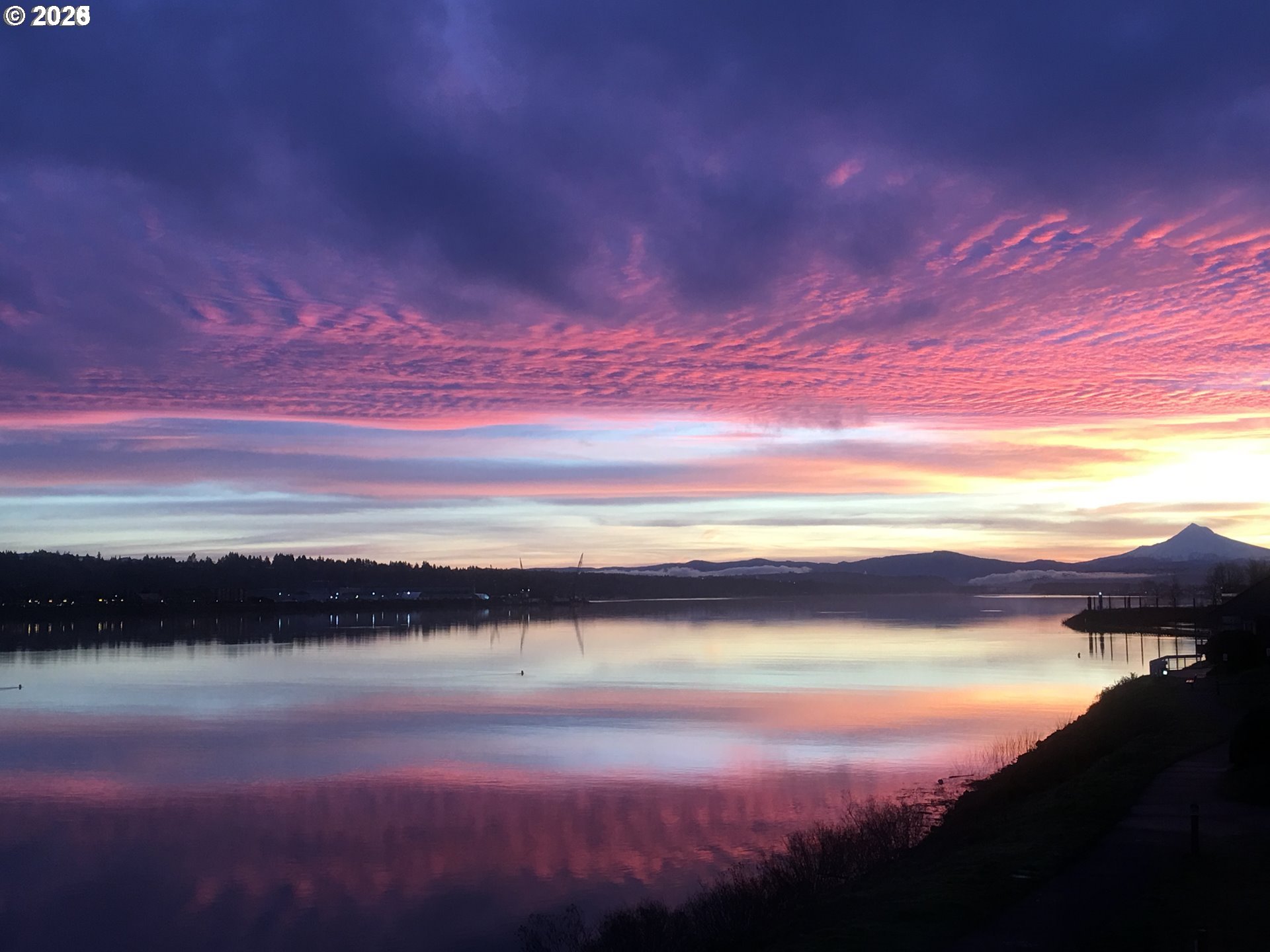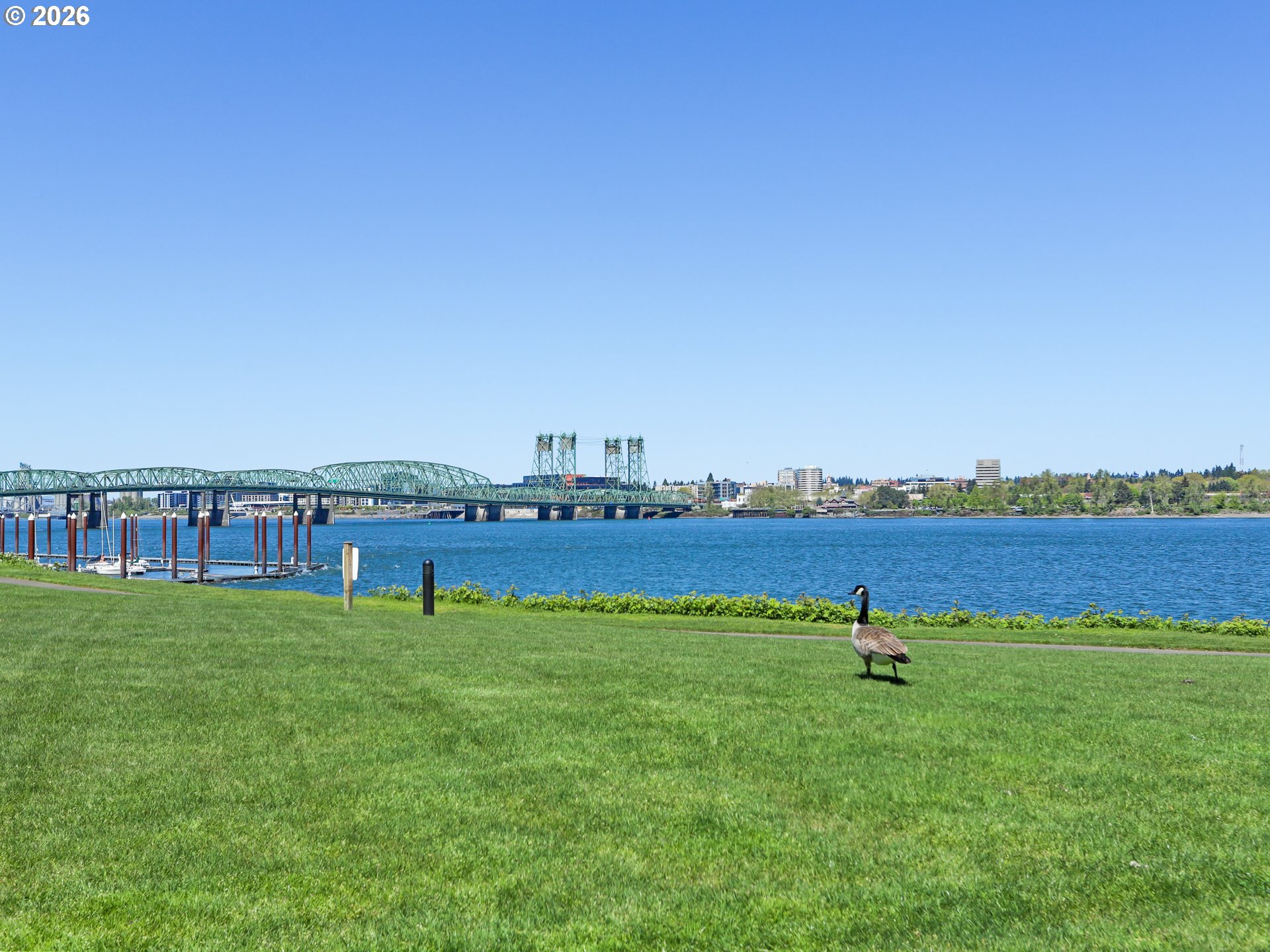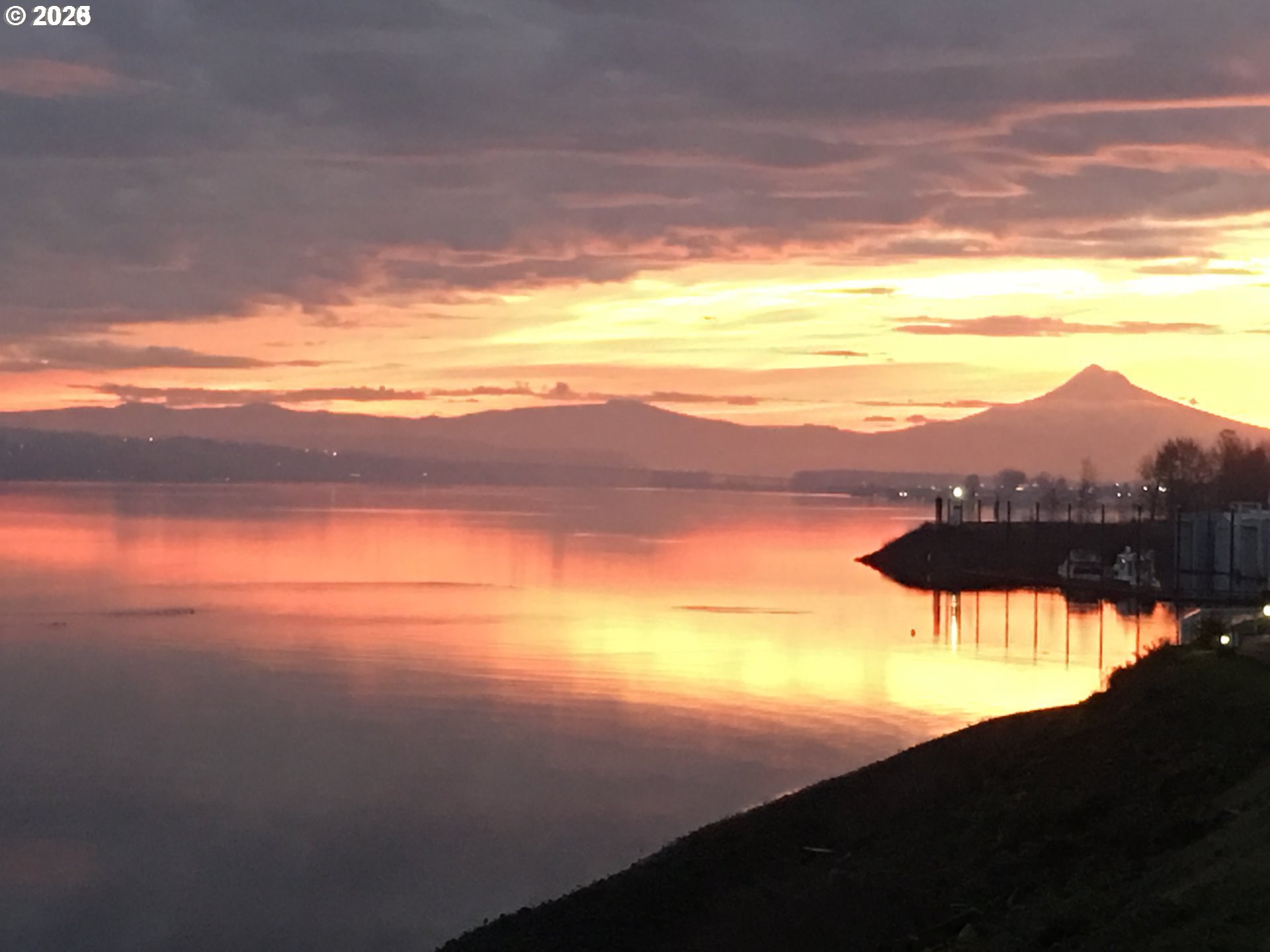 Front-row Columbia River living on Hayden Island! Direct riverfront condo with a perfect 10 remodel and one of the best 180 degree Columbia River views in Building D at Columbia Point Condos on Hayden Island. Vaulted great room with sliding glass doors opens to a private 14 x 10 partly covered year-round deck (140 sq ft), extending the living space and showcasing river views, boaters, city lights, Mt. Hood, Mt. St. Helens, and the annual Christmas Ship Parade.Custom remodel includes Milgard windows, bamboo flooring throughout, quartz kitchen countertops, newer cabinetry and appliances, remodeled bathrooms with full bath in the bedroom suite plus a half bath on the main level, three skylights for added natural light, tiled gas fireplace, and newer custom interior paint.Premium parking space #96 is located directly at the front door with no stairs. Just park and walk right in. Enjoy miles of lighted Columbia River walking paths, marina and moorage views, sandy beach access for kayaking and paddle boarding, outdoor pool in summer, and year-round indoor with pool and hot tub. Island bus service near the on-island Starbucks connects to MAX light rail with convenient access to downtown Portland, Vancouver, and PDX airport without parking fees. Ideal low-maintenance waterfront condo living in a sought-after Hayden Island location.