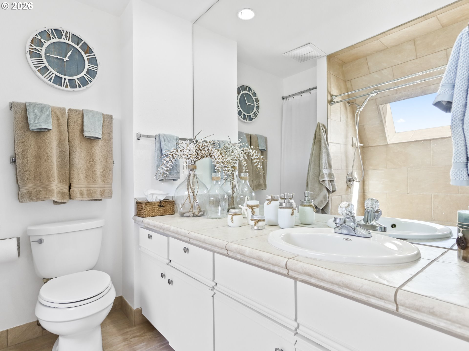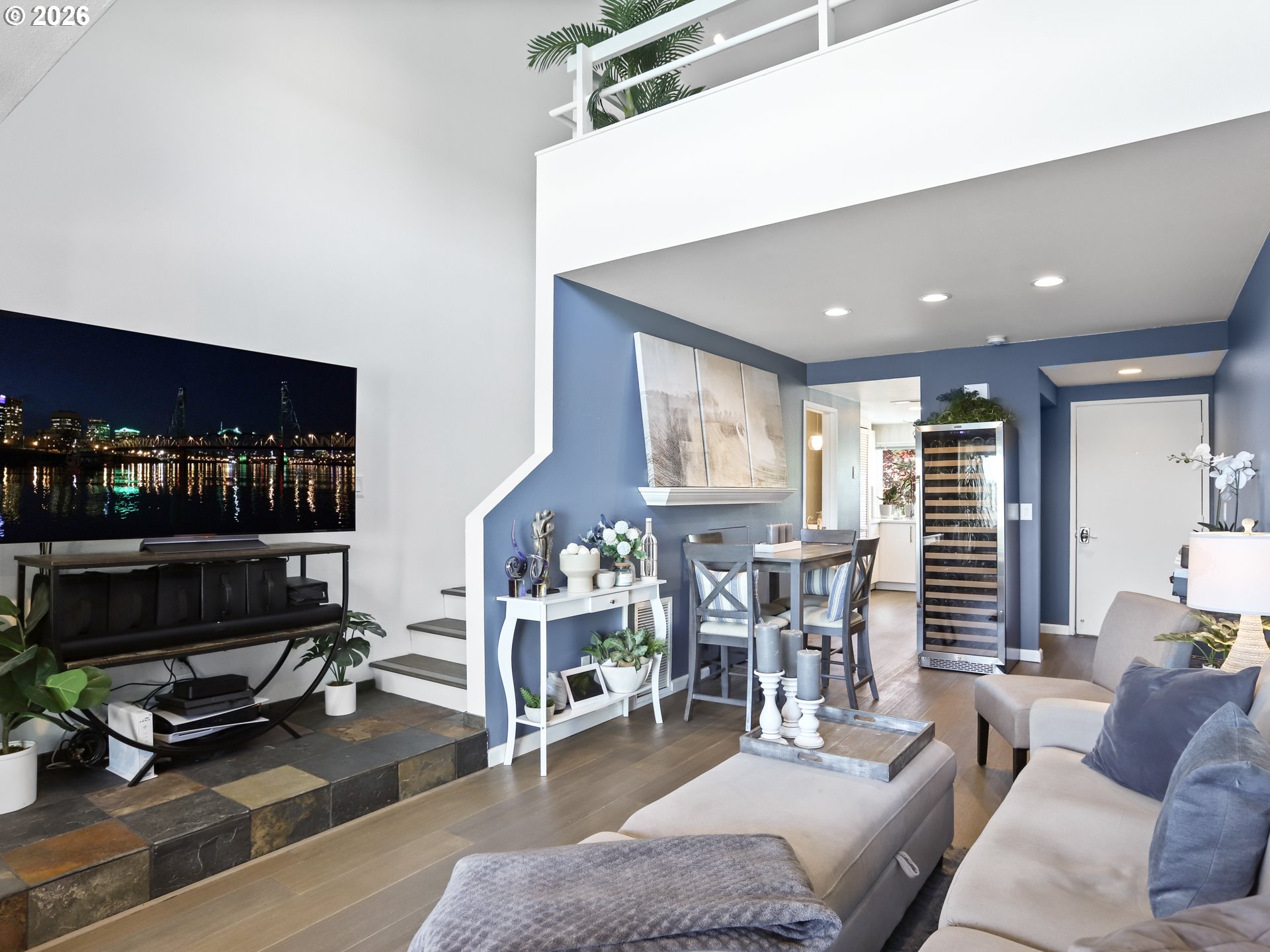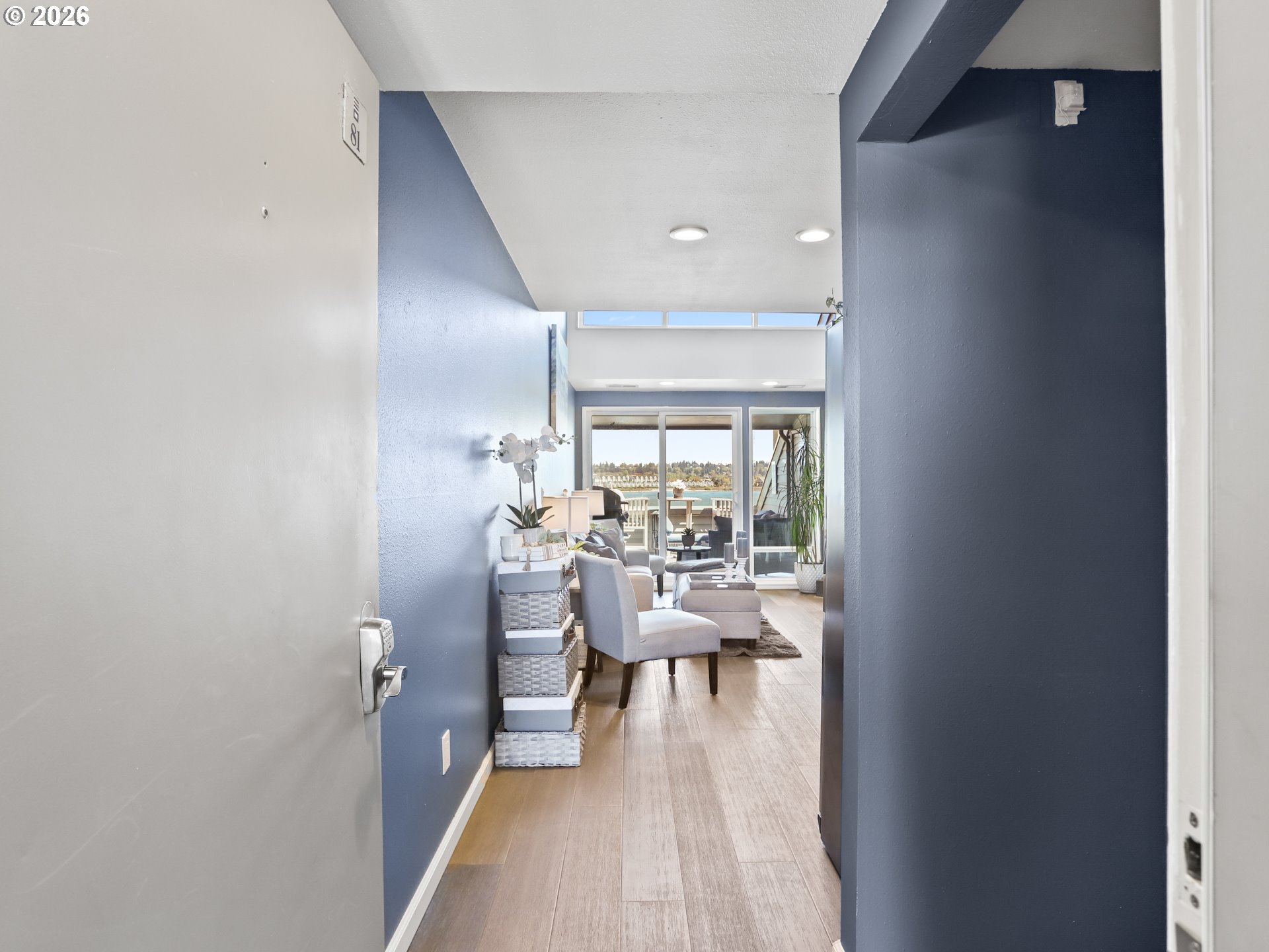 Front-row Columbia River living on Hayden Island! Direct riverfront condo with a perfect 10 remodel and one of the best 180 degree Columbia River views in Building D at Columbia Point Condos on Hayden Island. Vaulted great room with sliding glass doors opens to a private 14 x 10 partly covered year-round deck (140 sq ft), extending the living space and showcasing river views, boaters, city lights, Mt. Hood, Mt. St. Helens, and the annual Christmas Ship Parade.Custom remodel includes Milgard windows, bamboo flooring throughout, quartz kitchen countertops, newer cabinetry and appliances, remodeled bathrooms with full bath in the bedroom suite plus a half bath on the main level, three skylights for added natural light, tiled gas fireplace, and newer custom interior paint.Premium parking space #96 is located directly at the front door with no stairs. Just park and walk right in. Enjoy miles of lighted Columbia River walking paths, marina and moorage views, sandy beach access for kayaking and paddle boarding, outdoor pool in summer, and year-round indoor with pool and hot tub. Island bus service near the on-island Starbucks connects to MAX light rail with convenient access to downtown Portland, Vancouver, and PDX airport without parking fees. Ideal low-maintenance waterfront condo living in a sought-after Hayden Island location.