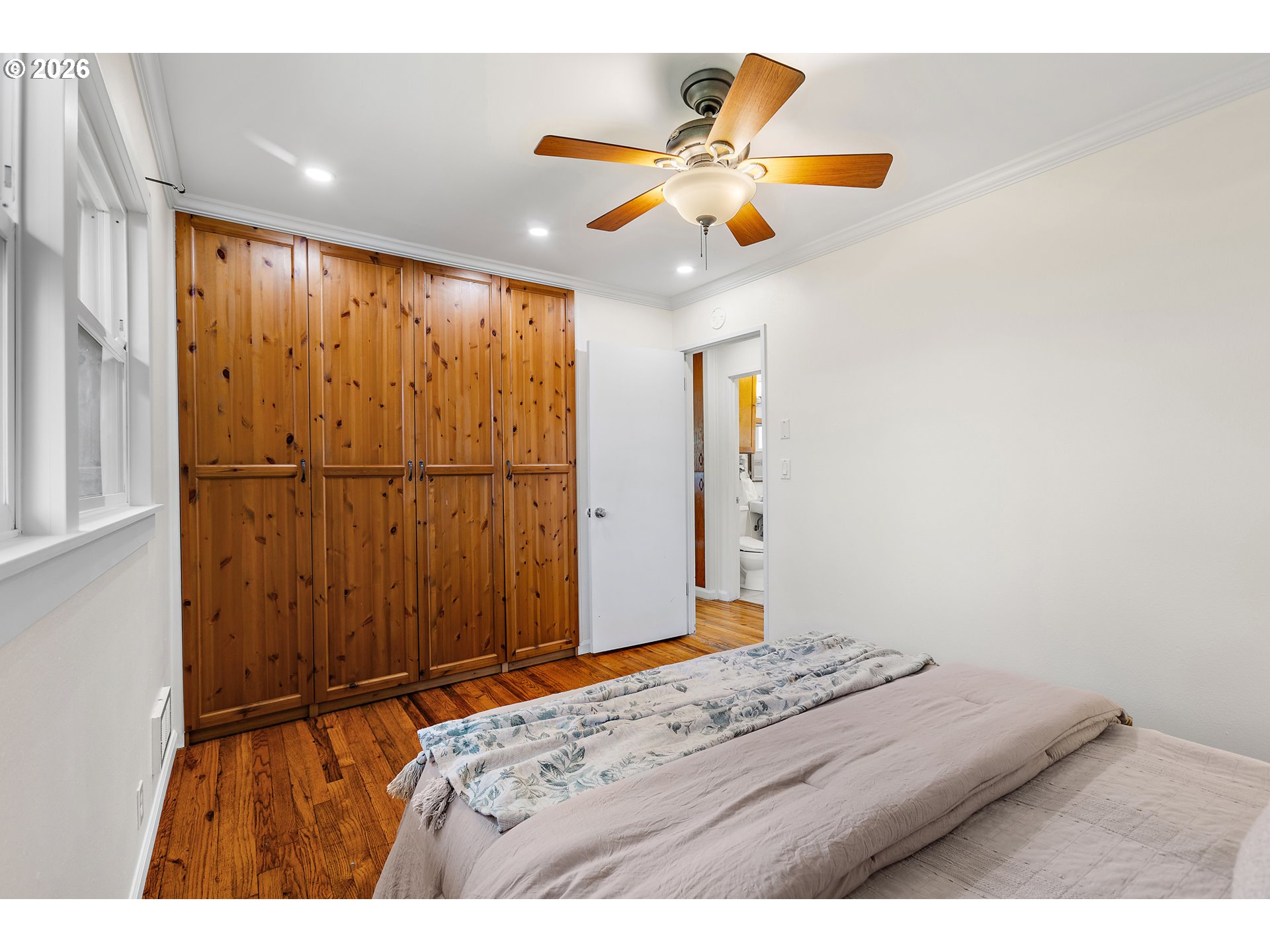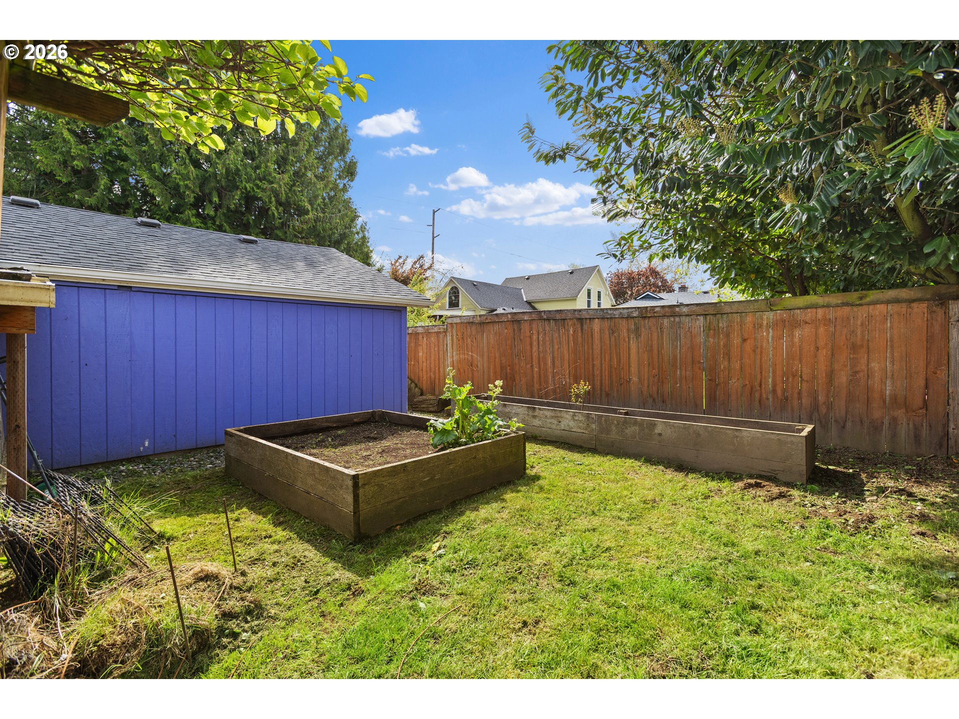 Finding the home that fits your dreams takes a bit of magic. This one’s been quietly waiting, tucked in one of North Portland's beloved historical neighborhoods. Conjured, lavender-hued and garden-wrapped, an evergreen door waits at the end of a gate-framed path, eager to welcome you. This cottagecore midcentury home is surrounded by well-established, low-tend plantings from blueberry bushes, to fruit-bearing kiwi & grape vines. This kind of garden doesn't ask much of you, just your presence, a morning coffee, & your willingness to pick when ripened. Built in the 1950s & updated w/the care & intention of an artist, this midcentury dream features hardwood floors throughout, freshly painted interiors, & updated kitchen built to invoke all the bounty the gardens have to offer. Modern comforts align w/nature in this 10/10 HES home featuring tankless water heater (offering ample shower capacity – unlimited & guilt-free), while a 3-yr-old furnace warms your winters, & solar panels deliver savings in summer (even when running the AC). With 200-amps, full home re-insulation, & EV charger at the driveway gate, this house is prepped for a life in harmony. Relaxing in the secluded & lush backyard enchants, w/ a ground-level brick patio, elevated lawn for lounging, covered patio area, & raised beds, ready for tomatoes, herbs, & other cultivations to take root. Plus, a new storage shed to keep it all tidy. Inspired? Let whimsy lead you to the professional onsite studio where a soundproof creative space awaits. Ideal to cast your creative fortunes in: a recording studio, podcast booth, film/video production, dance or art studio, or home theater. Just outside the studio — a climbing wall lures you to expel the days’ tensions.The highly walkable neighborhood includes Pier & Chimney parks, Saturday farmers’ market, & an actual corner store (& 4 other major grocers) all in easy reach. It’s a cozy cottage built for making magic, for creating, growing, & exploring — & it’s calling you. [Home Energy Score = 10. HES Report at https://rpt.greenbuildingregistry.com/hes/OR10247613]