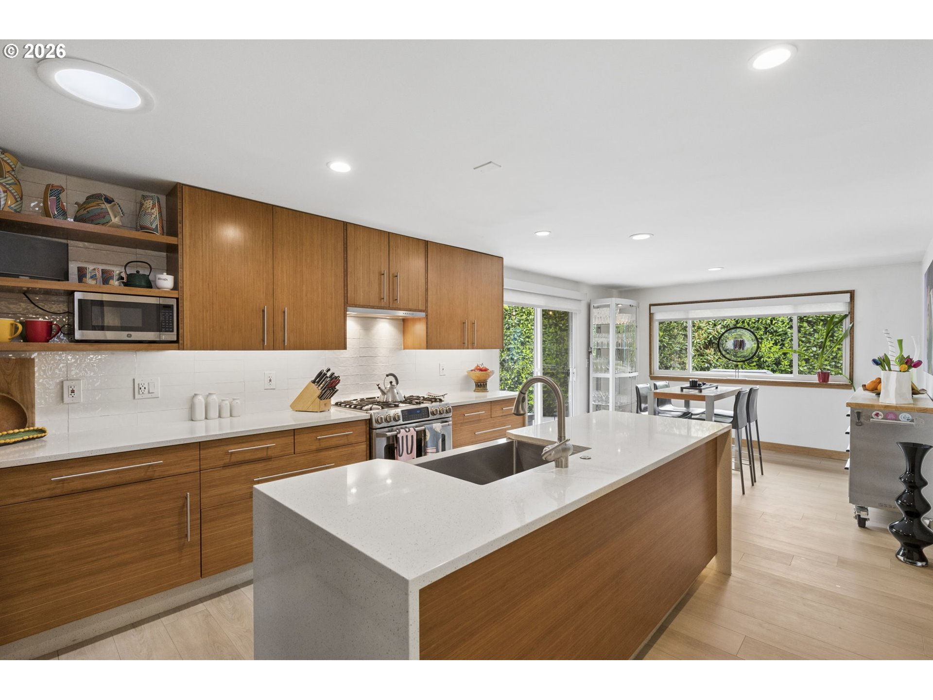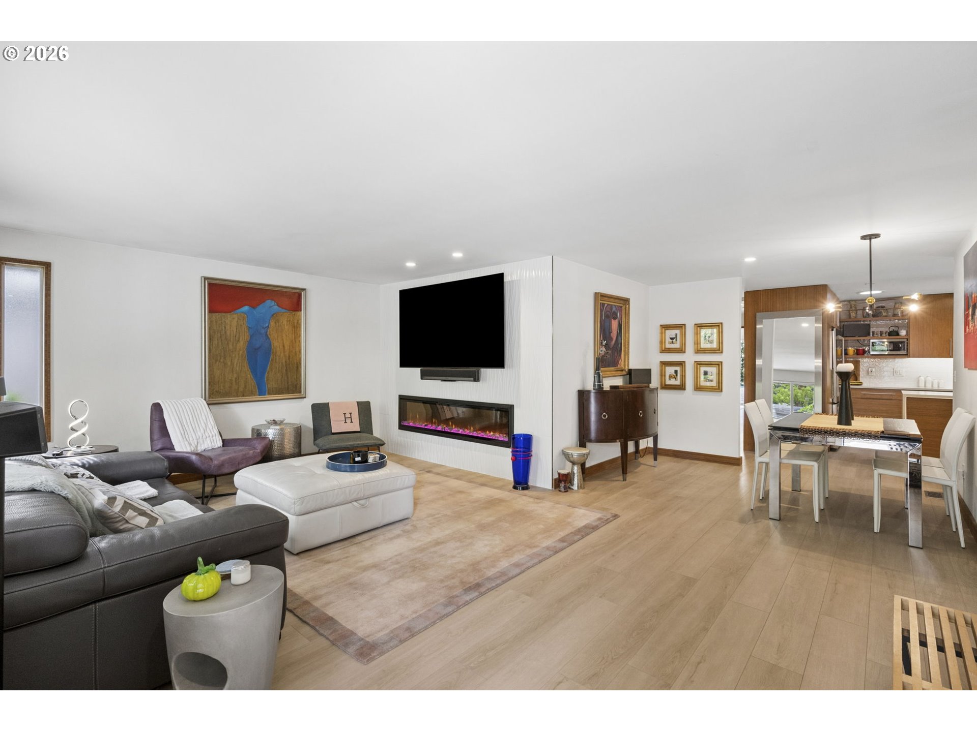 Beautifully renovated ranch-style home in the heart of the highly sought-after Kerns/Laurelhurst neighborhood! This thoughtfully designed residence features an open-concept layout filled with natural light, a stunning renovated kitchen, and a sleek electric fireplace that anchors the inviting living space. Elegant finishes and attention to detail are showcased throughout. The spacious primary suite offers a true retreat, complete with a spa-like bathroom featuring a luxurious freestanding soaking tub. Second bathroom is fully remodeled and includes and oversized LED lighted, wall mounted medicine cabinet. From the primary bedroom, step outside to your own private oasis—fully fenced and beautifully landscaped with multiple areas for outdoor living and entertaining. A large gas firepit creates the perfect setting for relaxing evenings year-round. The two-car garage provides ample storage, adding both convenience and functionality. A bonus flex space is built in the garage, offering remote work capabilities. Ideally located near vibrant shopping and dining, as well as the scenic charm of Laurelhurst Park, this impressive home offers the perfect blend of comfort, style, and location. Let this special home surprise you - don't miss it! [Home Energy Score = 8. HES Report at https://rpt.greenbuildingregistry.com/hes/OR10246152]