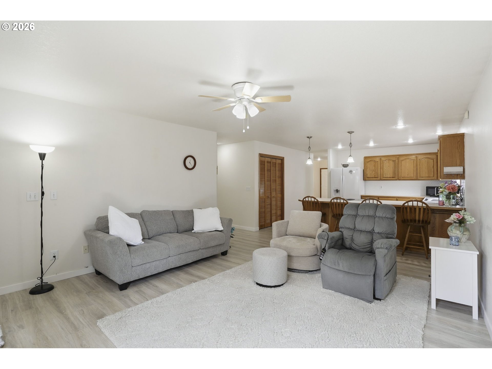 Welcome to this meticulously maintained single-story ranch! With over $65k in upgrades, pride of ownership shines throughout this home. Recent improvements include: roof, interior/exterior paint, LVP flooring & trim, side fencing w/ dual gates, back deck, main water line, and OWNED SOLAR system for energy efficiency (Electric bill is ONLY $16.86/mo). Sprawling more than 1,700 sqft across one level, this light-filled home features an inviting open concept kitchen & family room perfect for everyday living and entertaining. You’ll also enjoy the spacious primary bedroom w/ large walk-in closet and attached ensuite featuring a double vanity & walk-in shower. Time to kick back and relax??? Cozy up by the gas fireplace, or step outside onto the covered deck and fully fenced backyard that provides a quiet, private space to wind down or entertain any time of year. Ideally located with easy access to parks, shopping, I-84, and quick drive to beautiful Mt Hood, this move-in ready home offers comfort, efficiency, and quality throughout. All appliances to stay, including washer/dryer in the dedicated laundry room w/ extra storage.