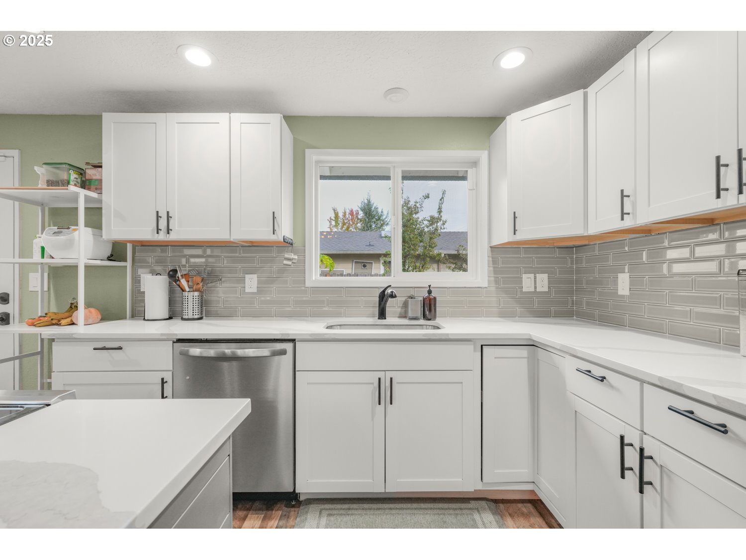 Updated Contemporary Ranch in Prime North Portland Location! Beautifully updated and remodeled, this contemporary ranch offers 3 bedrooms and 1 bath with stylish modern touches throughout. Gorgeous engineered hardwood floors, custom shiplap paneling, and elegant Paloma porcelain tile create a warm, cohesive design. Enjoy open-concept living with a spacious living room featuring a cozy wood-burning fireplace, flowing seamlessly into a light, bright kitchen. The kitchen shines with quartz countertops, a cook island with eating bar, stainless steel appliances, and sleek porcelain tile finishes. Set on a large, fully fenced lot in a quiet neighborhood, the private backyard is perfect for entertaining or relaxing, with a patio, fruit trees and raised garden beds. Located just blocks from University Park and Columbia Pool, with a fantastic Bike Score of 88 for the active lifestyle. Minutes to Heron Lakes, Columbia Edgewater, Riverside, and Broadmoor Golf Clubs, and a quick commute to PDX airport. This move-in ready home blends comfort, design, and convenience.