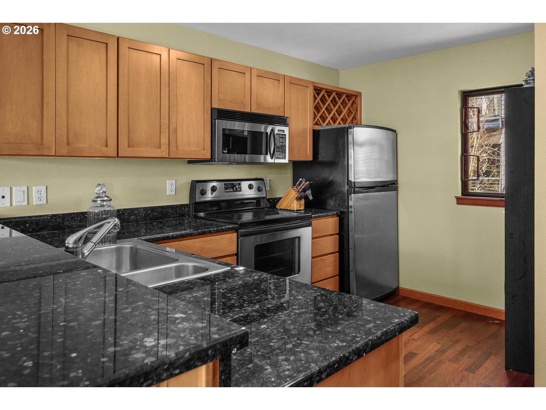 Enjoy a rare opportunity to own a 2-bedroom, 2-bath riverfront condo with a private rooftop deck – priced under $300k. This immaculate corner unit at McCormick Pier offers sweeping Willamette River views from both levels, including a spacious rooftop deck off the primary suite. The open main level features hardwood floors, granite countertops, stainless steel appliances, and a light-filled living area that opens to a private balcony with river and courtyard views. A flexible main-level room with a Murphy bed easily functions as a guest bedroom or home office. Located in a fully gated community with 24-hour security, amenities include a pool, hot tub, fire pits, and BBQ areas. Deeded covered parking and central A/C add everyday convenience. Step outside to miles of riverfront paths and green space just beyond your door, with easy access to the Pearl District, downtown, Union Station, and Moda Center. Enjoy front-row views of Portland’s river life, including the Christmas Ships and Rose Festival Fleet. Possible boat slip opportunities. See video!