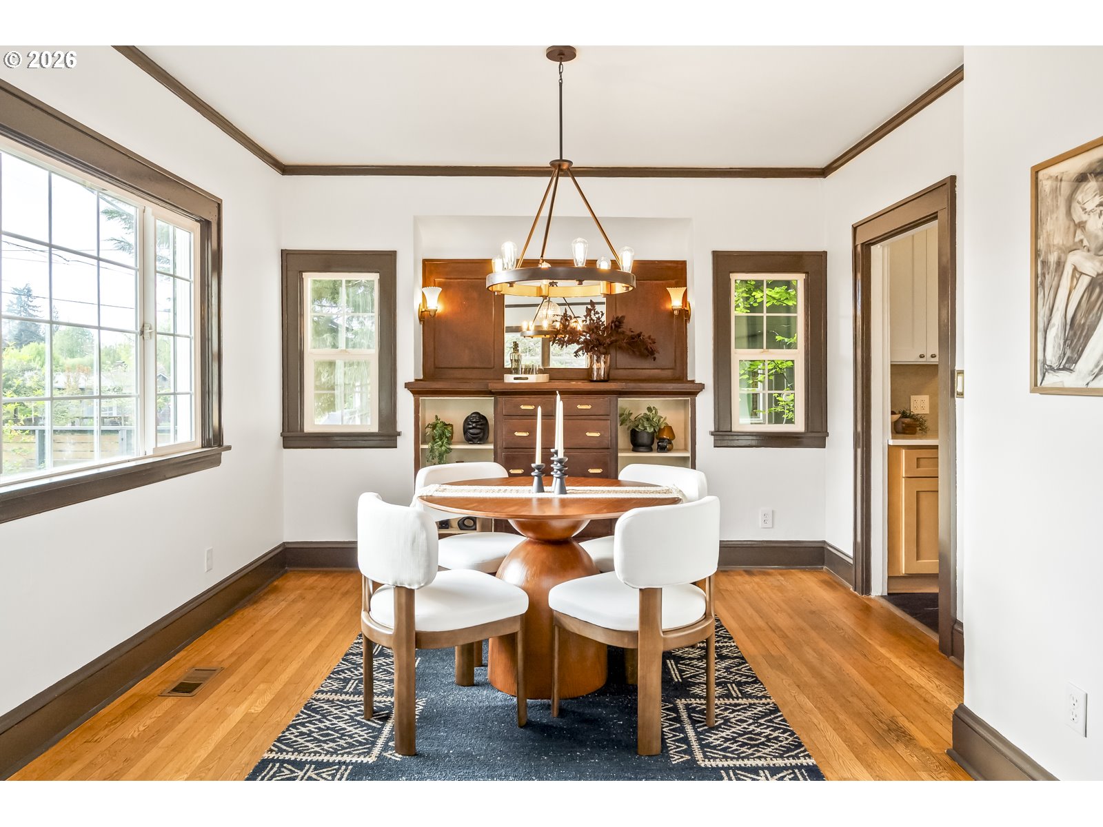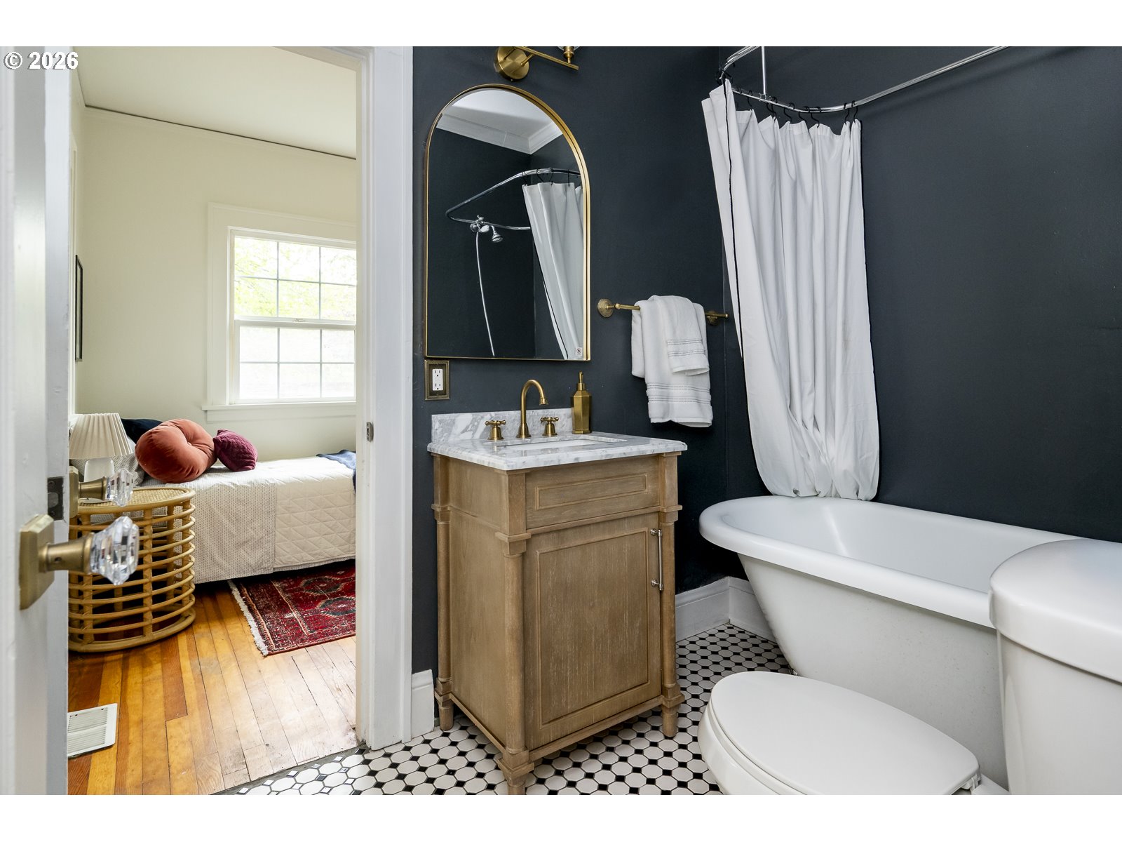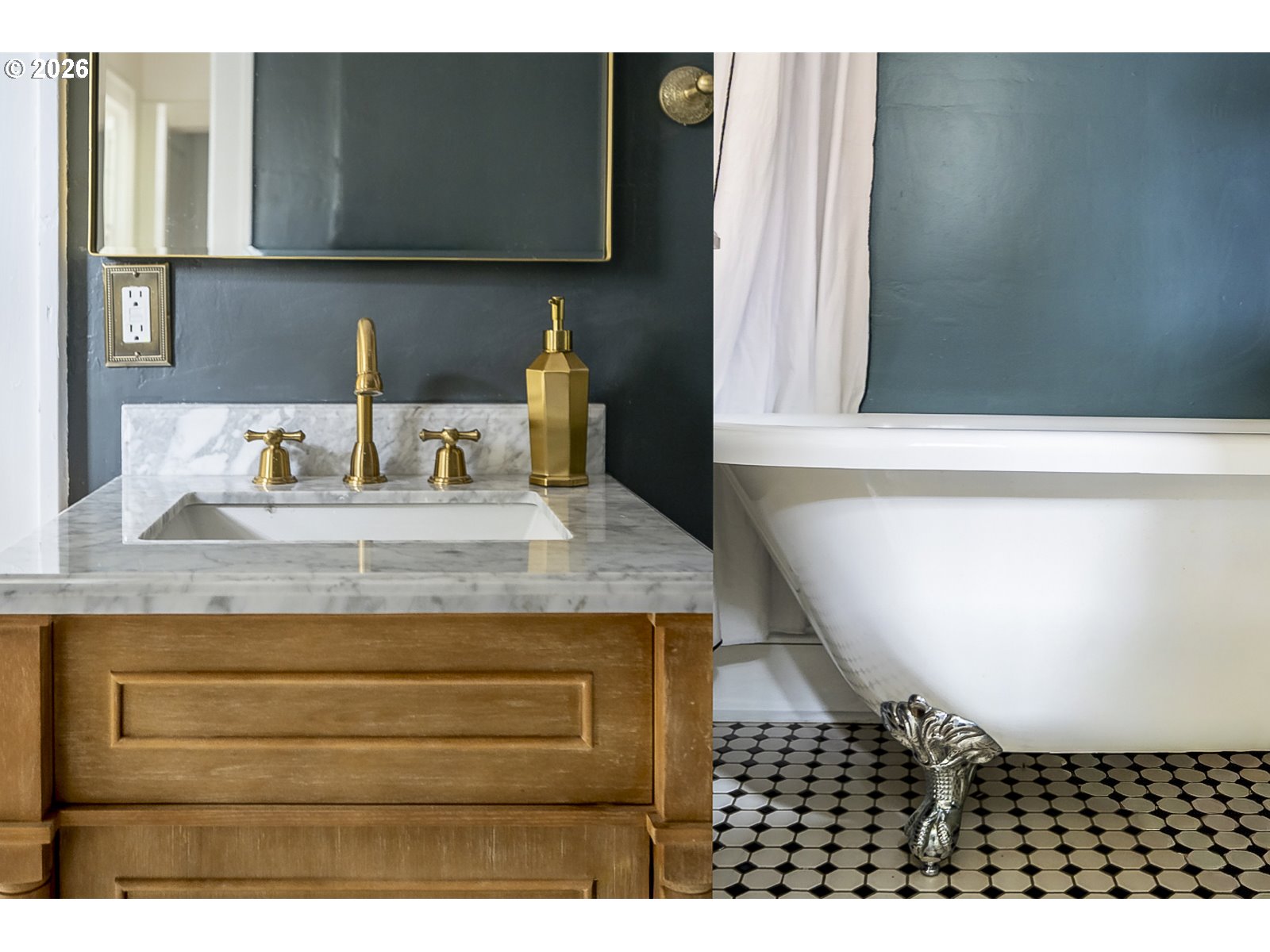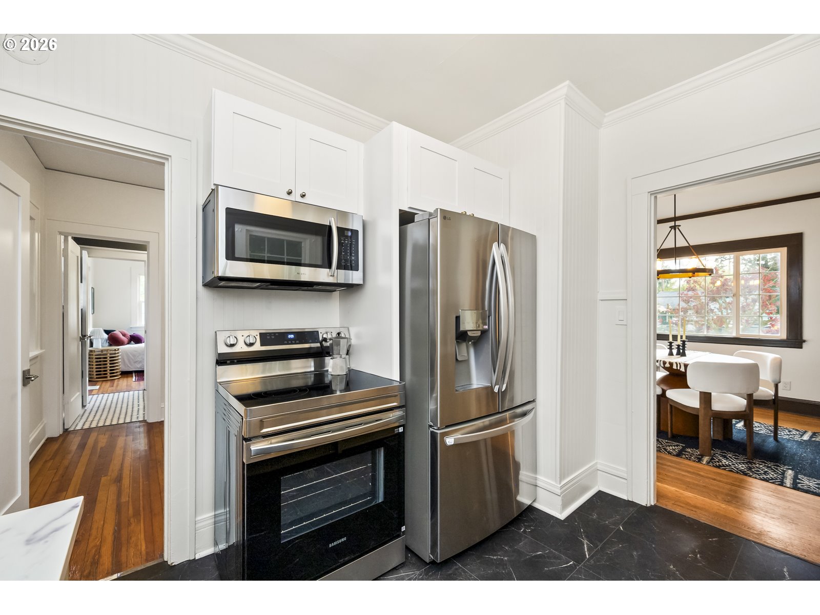 This sweet Craftsman bungalow on a corner lot blends vintage charm with fresh updates. The beautifully remodeled kitchen features new cabinets, countertops, flooring, and appliances. Both bathrooms have been tastefully updated, including a main-level bath with a Carrara marble vanity. The spacious primary suite in the finished basement offers a private ensuite bath with lots of storage. Fresh paint inside and out gives the home a crisp, move-in-ready feel. The covered back deck with a brand new fence is perfect for summer gathers and the side yard is ready for your dream garden. Newer high-efficiency furnace and central air. Just blocks from Northgate Park and the future North Portland Aquatic Center. [Home Energy Score = 7. HES Report at https://rpt.greenbuildingregistry.com/hes/OR10024046]