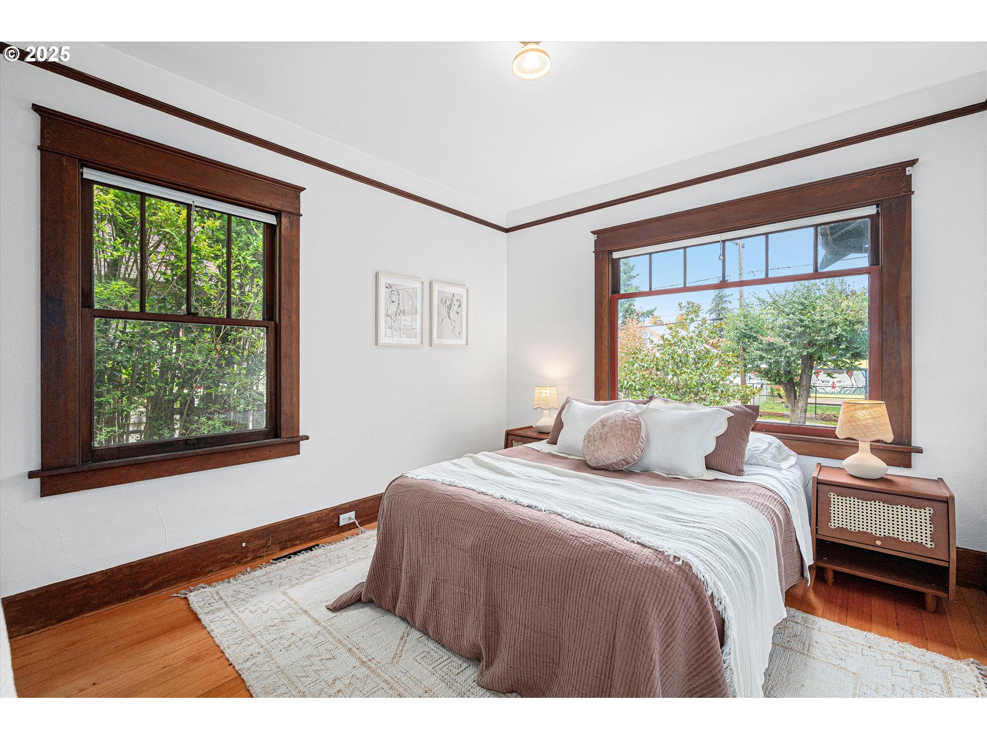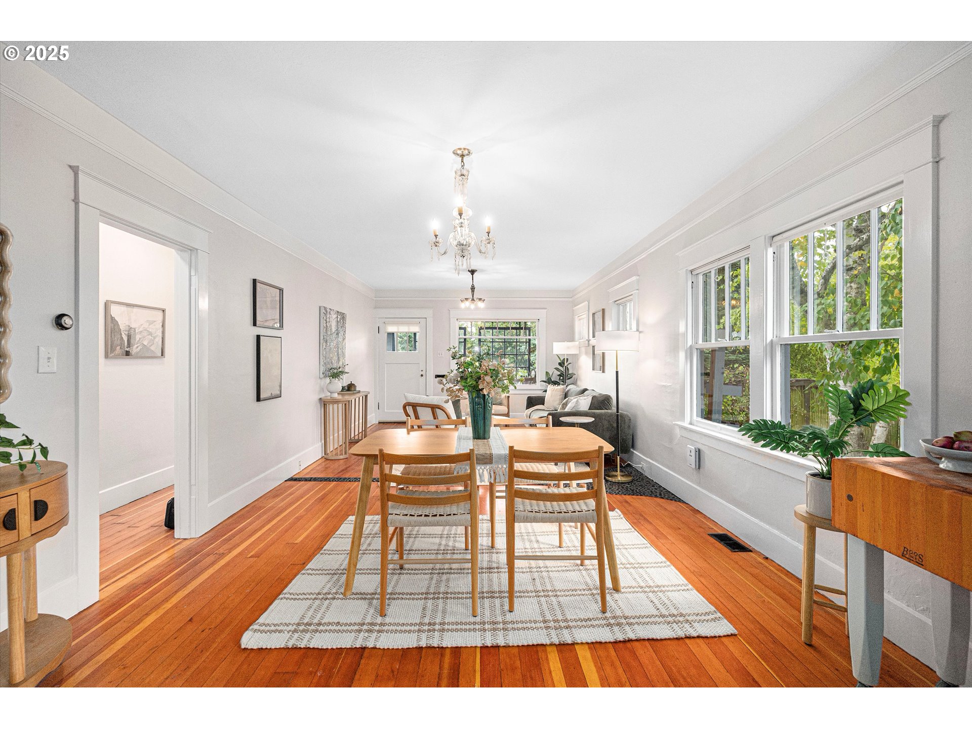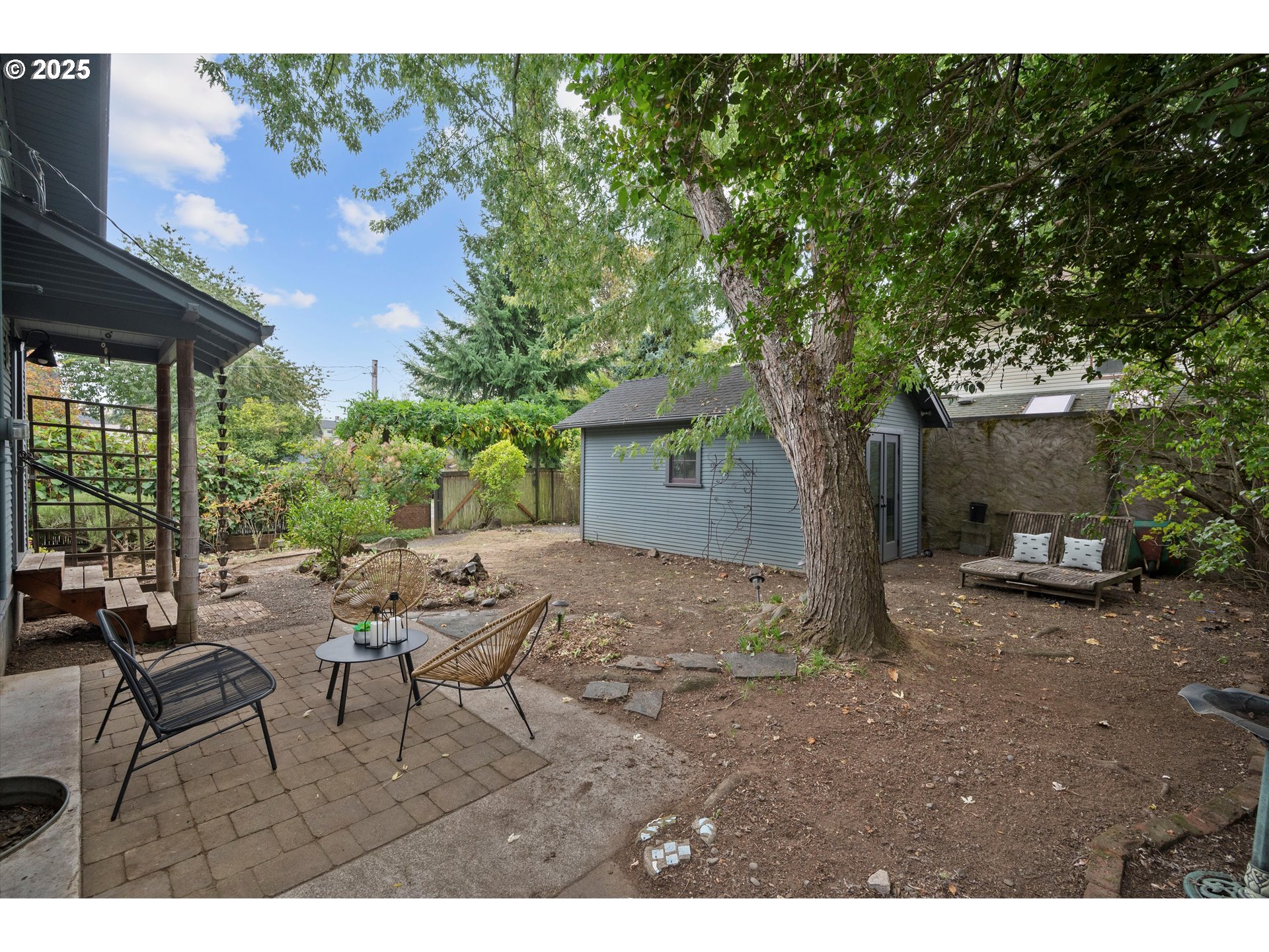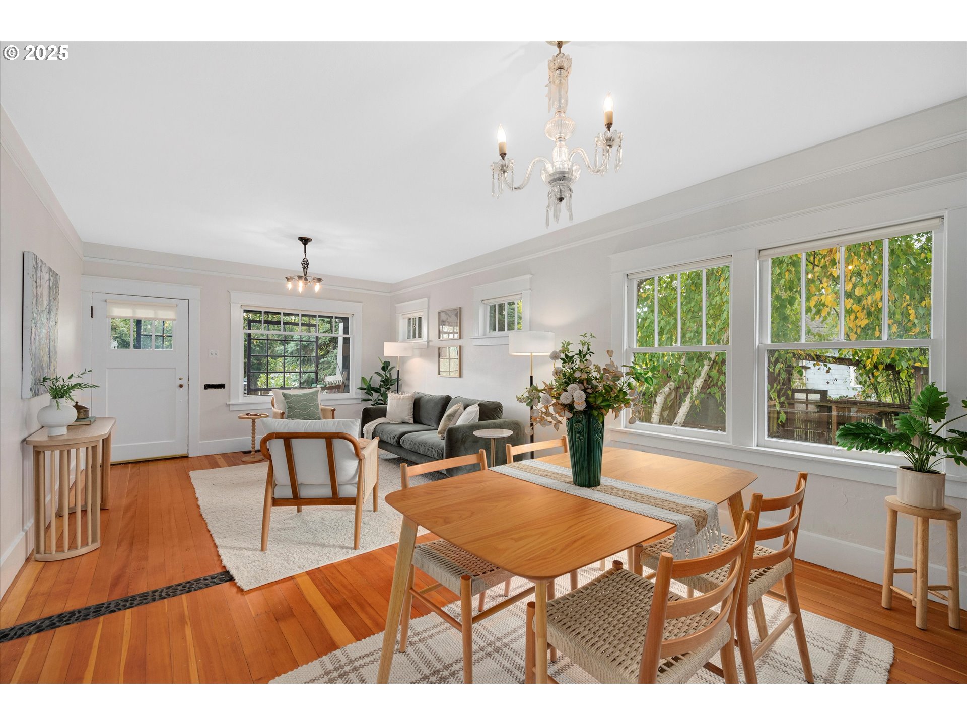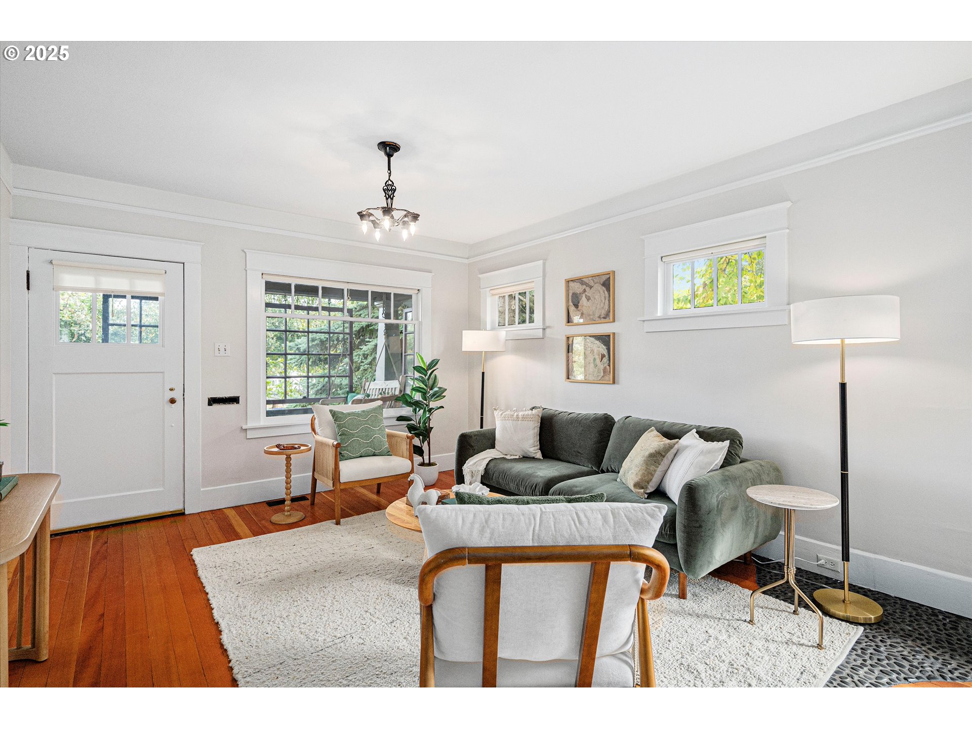 Welcome to this delightful St. Johns bungalow, where high ceilings, hardwood floors, and an open floor plan create a bright, inviting space filled with character. Sunlight pours through large windows overlooking a garden sanctuary bursting with life — from kiwi, pomegranate, and plum trees to Japanese wisteria and a thriving vegetable garden. A rain barrel system keeps things green year-round, and a deluxe chicken coop and run make this home a true urban homestead.The open kitchen features stainless steel appliances and a gas Wolf range that’s perfect for everyday cooking or sharing meals with friends. The bathroom is light and airy with a vintage clawfoot tub and hex-tile flooring. The basement offers flexible space for an office, workshop, or creative studio, the large light filled attic offers great storage and the possibility for future living space, while the detached garage—with power already installed—awaits your next project.Located on an oversized corner lot, this home offers a sense of peace and privacy while keeping you close to everything that makes St. Johns special. Just moments from downtown St. Johns, you’ll enjoy local coffee shops, restaurants, and boutique stores, as well as the scenic trails and river views of Cathedral Park. It’s a welcoming neighborhood with a small-town feel, community events, and the kind of charm that makes you feel right at home.Upgrades include refinished hardwood floors, interior paint, exterior paint, garage doors and electrical.