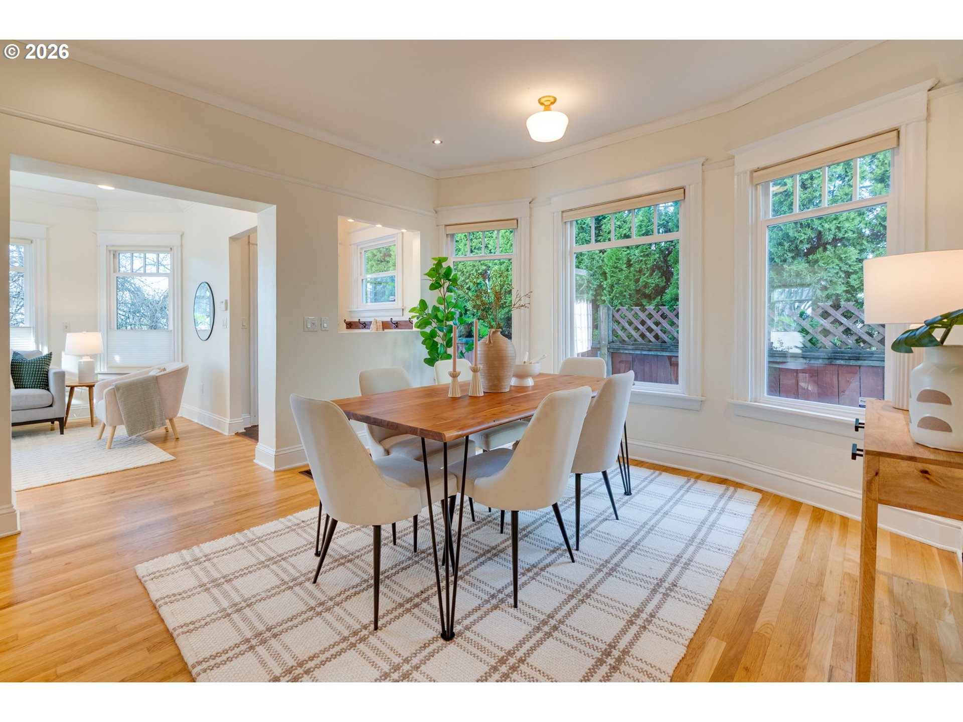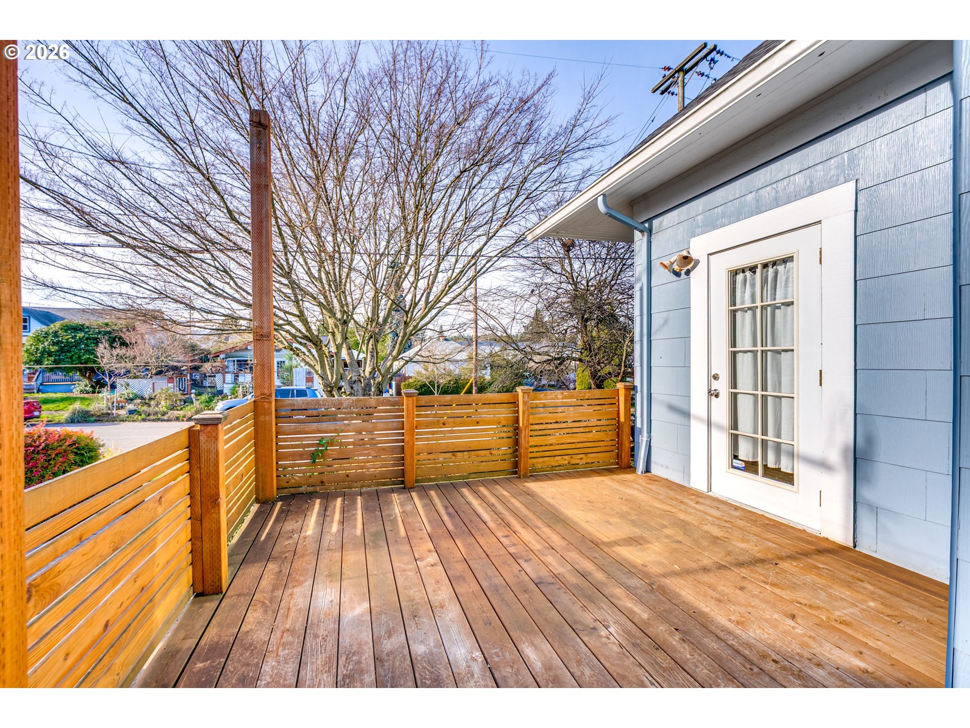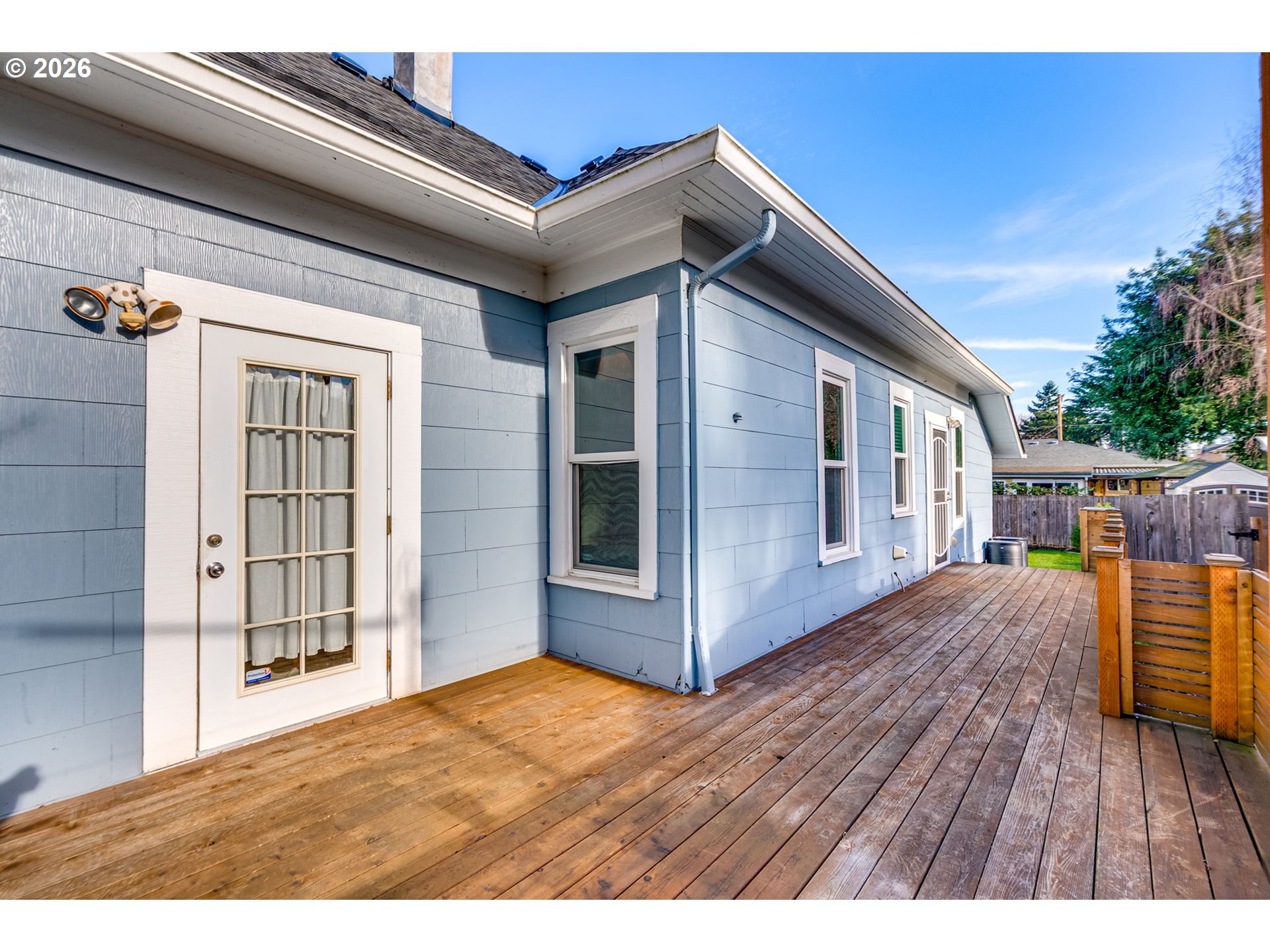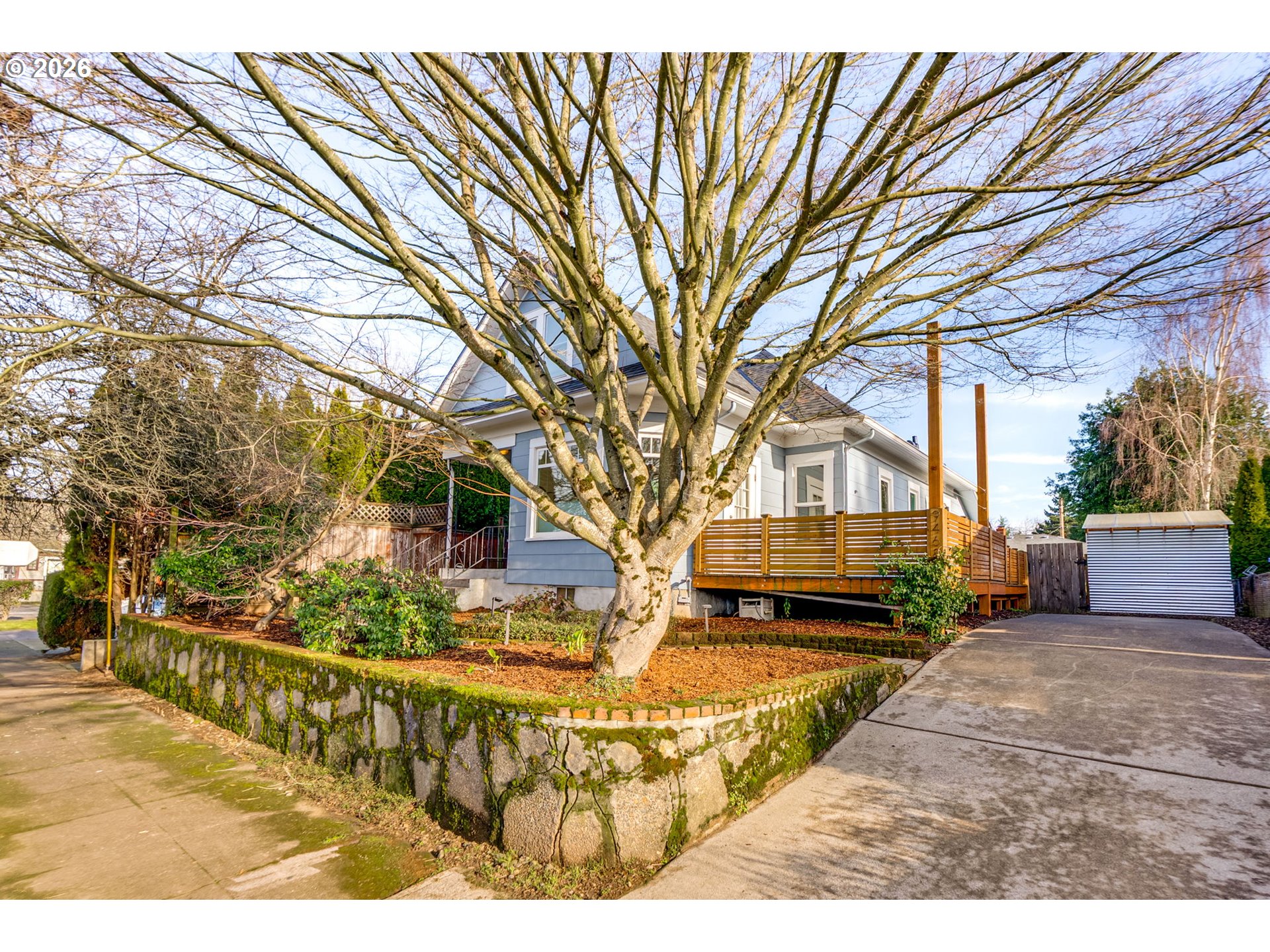 Welcome to this charming, updated, and cozy 1903 St. Johns home. A brick path framed by mature plantings guides you to the front porch, and a formal tiled entry invites you to hang your coat and stay a while. Warm wood floors, high ceilings, an exposed brick reveal, and a subtle architectural bay projection wall bring character to the living room, which also opens to a sunny south-facing deck that extends the living space. Filtered light through the mature maple tree out front is a delight through three seasons. Wood floors and original moulding continue throughout, with a large dining room featuring another bay projection wall. The connected floor plan balances openness with definition and allows for a lovely flow of natural light. The modernized kitchen offers ample counter space, glass cabinets, great storage, a double sink, and stainless steel appliances. The spacious primary bedroom includes a walk-in closet and direct access to the south-facing deck, and the updated bathroom is generous in size. The basement provides abundant storage and space for hobbies, while a roomy unfinished attic presents additional potential. Outside, enjoy a newer patio designed for summer dining, cozy fires, gardening, or simply lounging on sunny days, along with a recently tiled back porch. The raised beds are ready for your urban garden. Notable improvements include a brand new 2025 roof with transferable warranty, newer water heater, modern double-pane windows, and high-efficiency gas furnace with central AC for year-round comfort. Conveniently close to Pier Park, Forest Park access, St. Johns Farmers Market, downtown St. Johns, and multiple grocery options, this is an exceptionally walkable and nature-connected location.