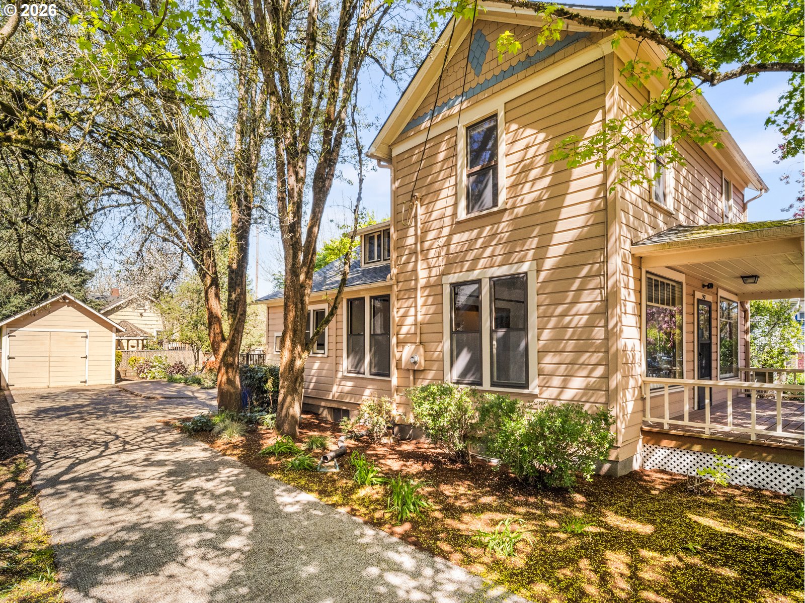 For over 40 years, in sought after Sellwood on Southeast Spokane Street, the sounds of some of the top musical artists from the last half of the century could be heard drifting throughout the property and under the foliage in the yard. The stellar location of this appealing home is not to be missed and it awaits the next person to enjoy it for years to come too. Built in approximately 1898 this house is situated on a long flat lot in the middle of a truly exceptional block in Sellwood. The main level features beautiful wood floors, kitchen and nook, the full bathroom, a gas stove in the comfortable living room as well as large picture windows that let you look out to the bustling neighborhood just a few feet away. The classic front porch is a peaceful place to sit and enjoy the energy of this vibrant SE neighborhood. Shops and boutiques, multiple parks, dozens of restaurants, the Sellwood Community House, the Shack and pool at Sellwood park, and Oaks Park are all mere moments away. A delightful split staircase leads up to two bedrooms, the half bathroom and bonus office room on the top floor. The property features newer HVAC and AC as of 2024, a private back yard with a good size back deck made of Trex, plus a newer washer/dryer. A detached garage sits back in the lot allowing for maximum enjoyment and use of the yard and outdoor spaces. With 1822 square feet this home presents a strong opportunity for the next owner to invest in updates while securing that coveted Sellwood location. Arrange for a tour of this classic old-Sellwood style home for yourself!