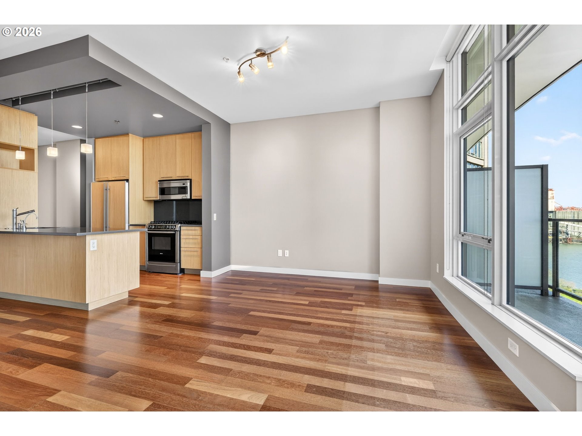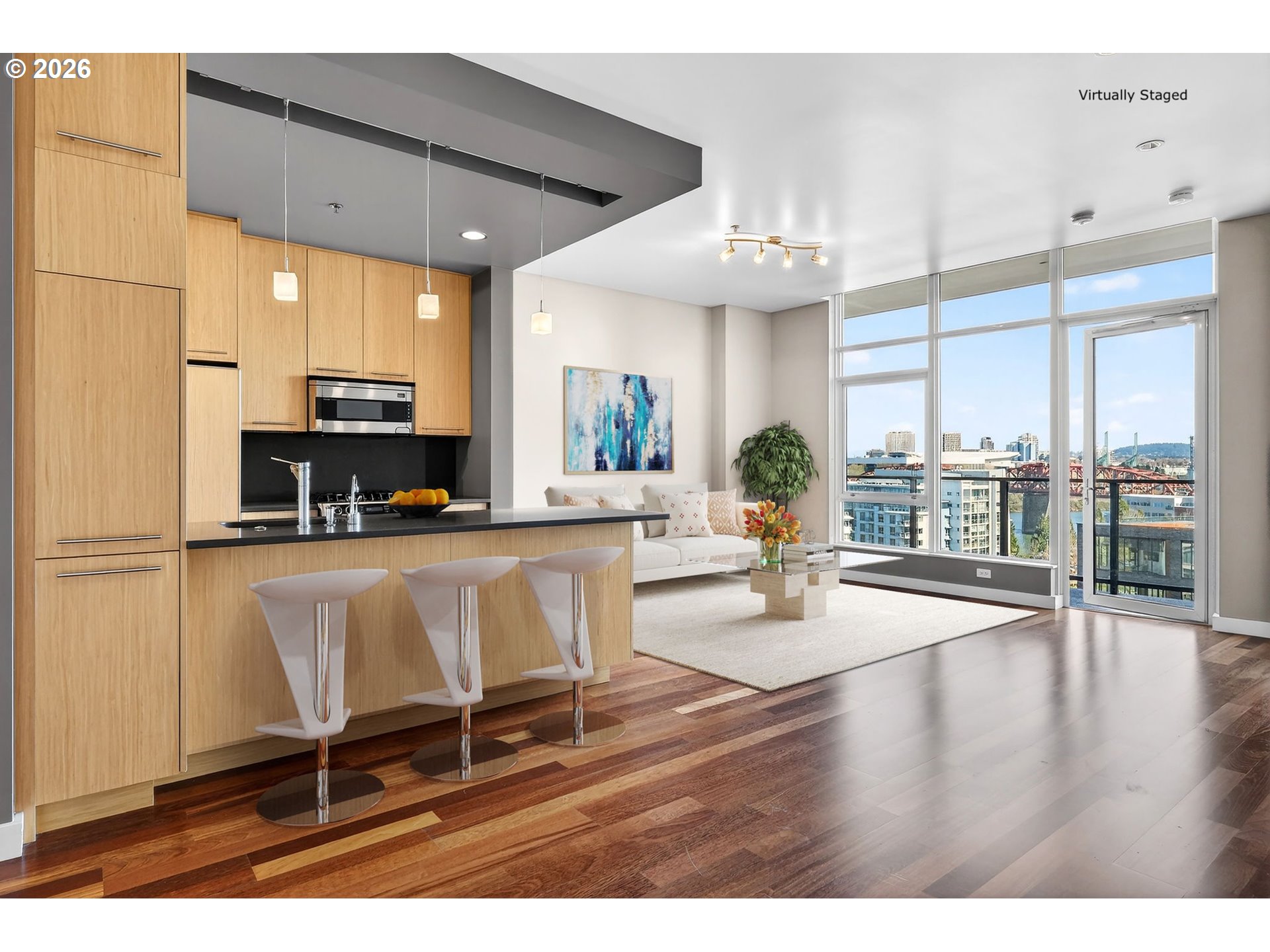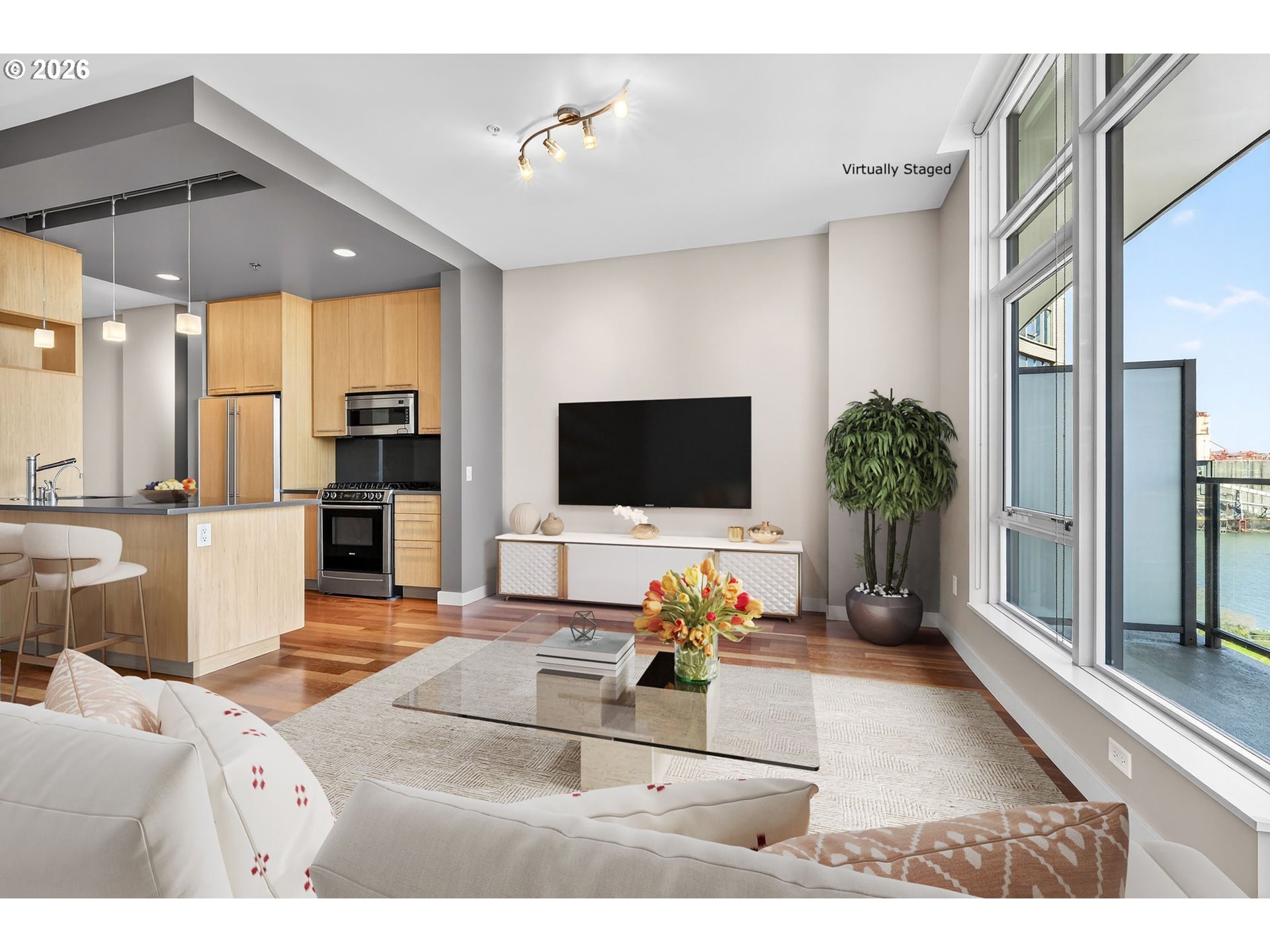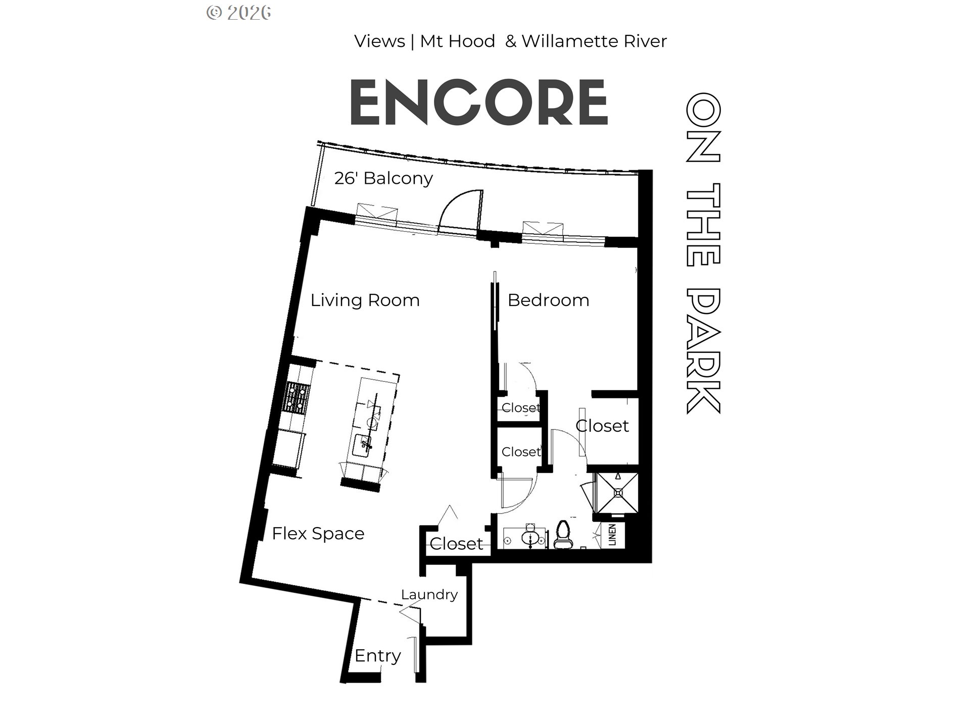 Perched on the 11th floor of The Encore, one of the Pearl District’s most sought-after buildings, this impeccably maintained residence delivers style, comfort, and unforgettable views. The light-filled open floor plan includes a versatile flex space ideal for a home office, reading nook, or guest accommodations. The kitchen is both stylish and functional with Bosch appliances, quartz slab countertops, and abundant storage. Additional upgrades include a NEW HVAC system and multiple custom closet organizers that make everyday living feel effortless. Step outside onto the expansive 26-foot covered balcony and take in views of the Willamette River, Mt. Hood, and the city skyline. Building amenities include an on-site manager, strong HOA, gym, community room, deeded parking, and storage. Walk out the front door to a 3-acre park - with a fenced off-leash dog area makes life especially easy for four-legged family members. Ovation Café is right downstairs, while breweries, restaurants, fitness studios, and sports venues are all just minutes away. A Perfect place to call home!