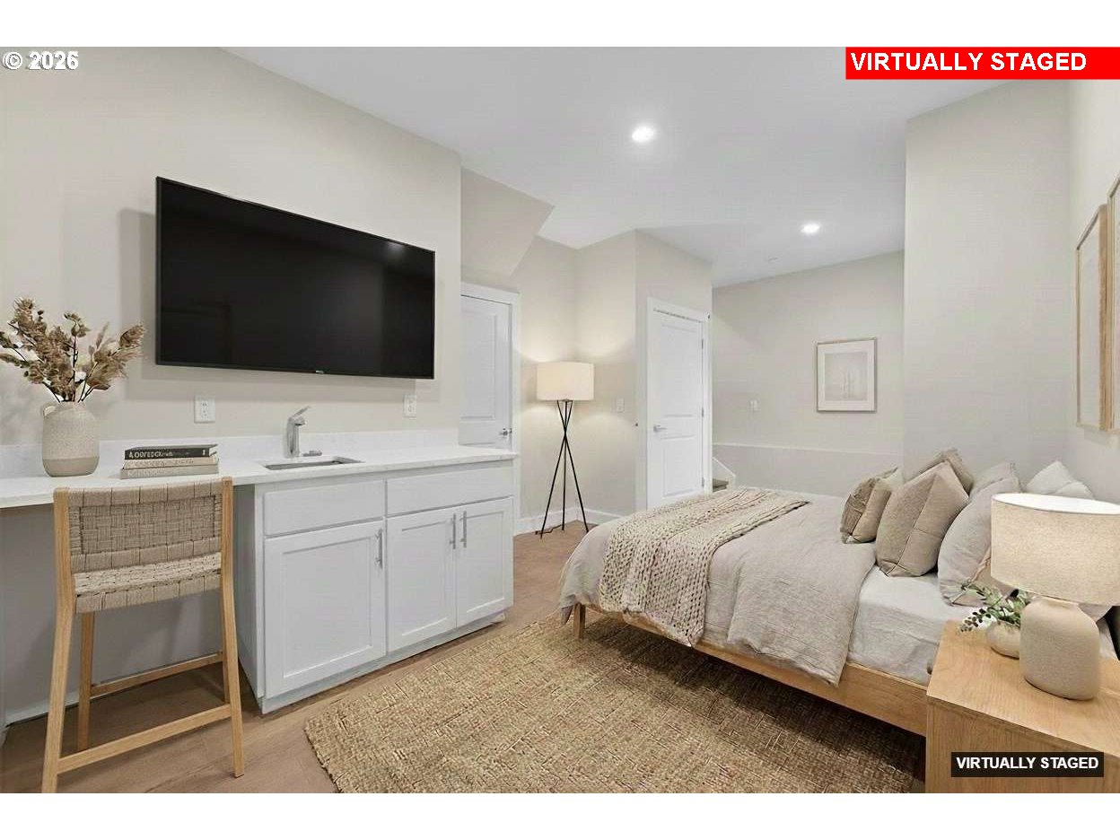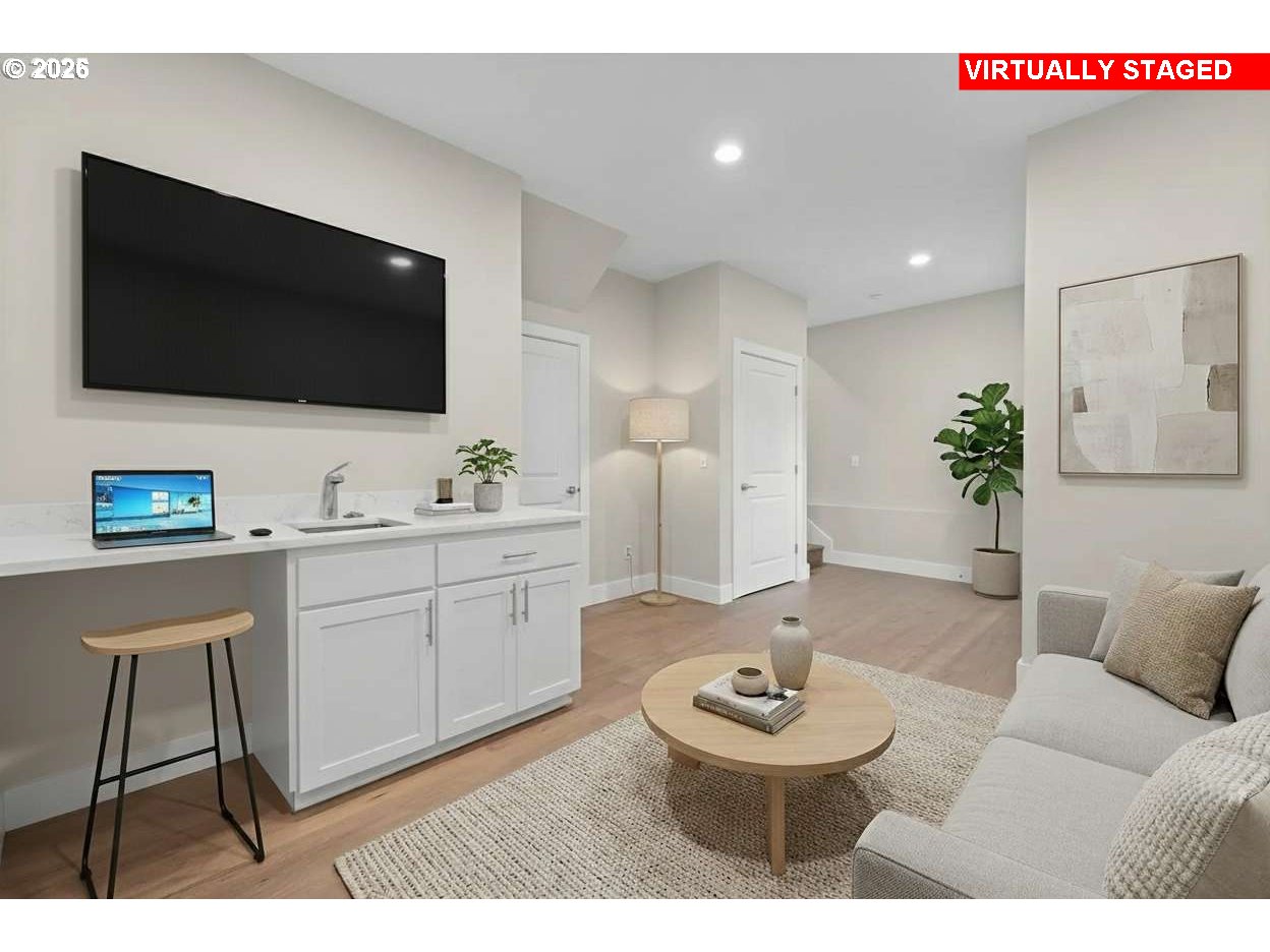 Come see this beautifully designed attached residence offering two bedrooms and two full bathrooms, perfect for comfortable modern living. The primary bedroom features a private en-suite bathroom with elegant finishes, creating a peaceful retreat just for you. The lower level adds a flexible living space with a full bathroom, versatile room that can be used as an extra bedroom, office or bonus room, plus a convenient wet bar ideal for entertaining family and friends.You'll appreciate the engineered hardwood floors throughout the entire home and the sleek quartz countertops in the kitchen and bathrooms, combining style and durability. Step outside onto the deck, a great space to relax. A 210 builder warranty included in sale, this home provides a wonderful blend of thoughtful design and modern amenities ready to welcome you to your next chapter.