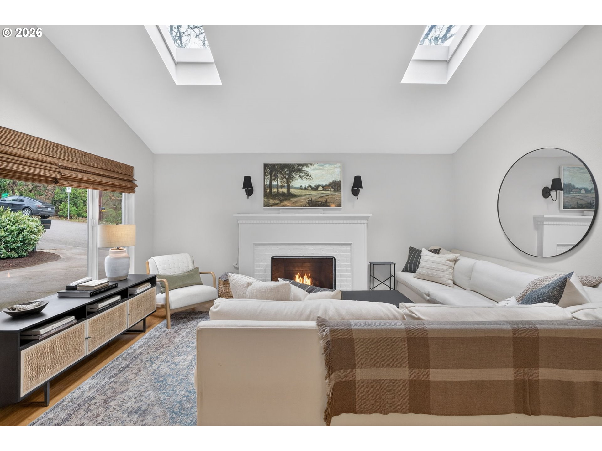 Beautifully remodeled one-level home in the heart of SW Portland. Light-filled and impeccably maintained, nearly every surface has been thoughtfully updated. Step inside to a spacious great room with vaulted ceilings and skylights, connecting the large living and dining areas to a beautifully appointed kitchen. Floor-to-ceiling built-ins make a stunning statement, while the gas fireplace creates a warm and inviting focal point. The kitchen features beautiful Cloé tile, open shelving, new stainless steel appliances, ample storage, generous counter space, and a pantry. A Dutch door leads to additional storage or a cozy spot for your pup. The primary suite is spacious, featuring a walk-in shower and a sliding door that opens to the backyard. The additional bedrooms are darling, and styled straight out of your Pinterest board. The backyard was recently renovated and offers a low-maintenance space perfect for entertaining or relaxing while enjoying the serene natural surroundings.Recent upgrades include a new washer and dryer, new kitchen appliances, new skylights, fresh interior paint, a new crawlspace system, new heat pump and furnace, a backyard renovation, a sizable fully finished garage and the addition of a dog run. The location is fantastic—within walking distance to Marshall Park and Tryon Creek, with everything Lake Oswego has to offer just five minutes away. Easy freeway access makes commuting simple. With beautiful updates, inviting spaces, and an incredible location near parks and nature, this home is a true standout in SW Portland. [Home Energy Score = 4. HES Report at https://rpt.greenbuildingregistry.com/hes/OR10198288]