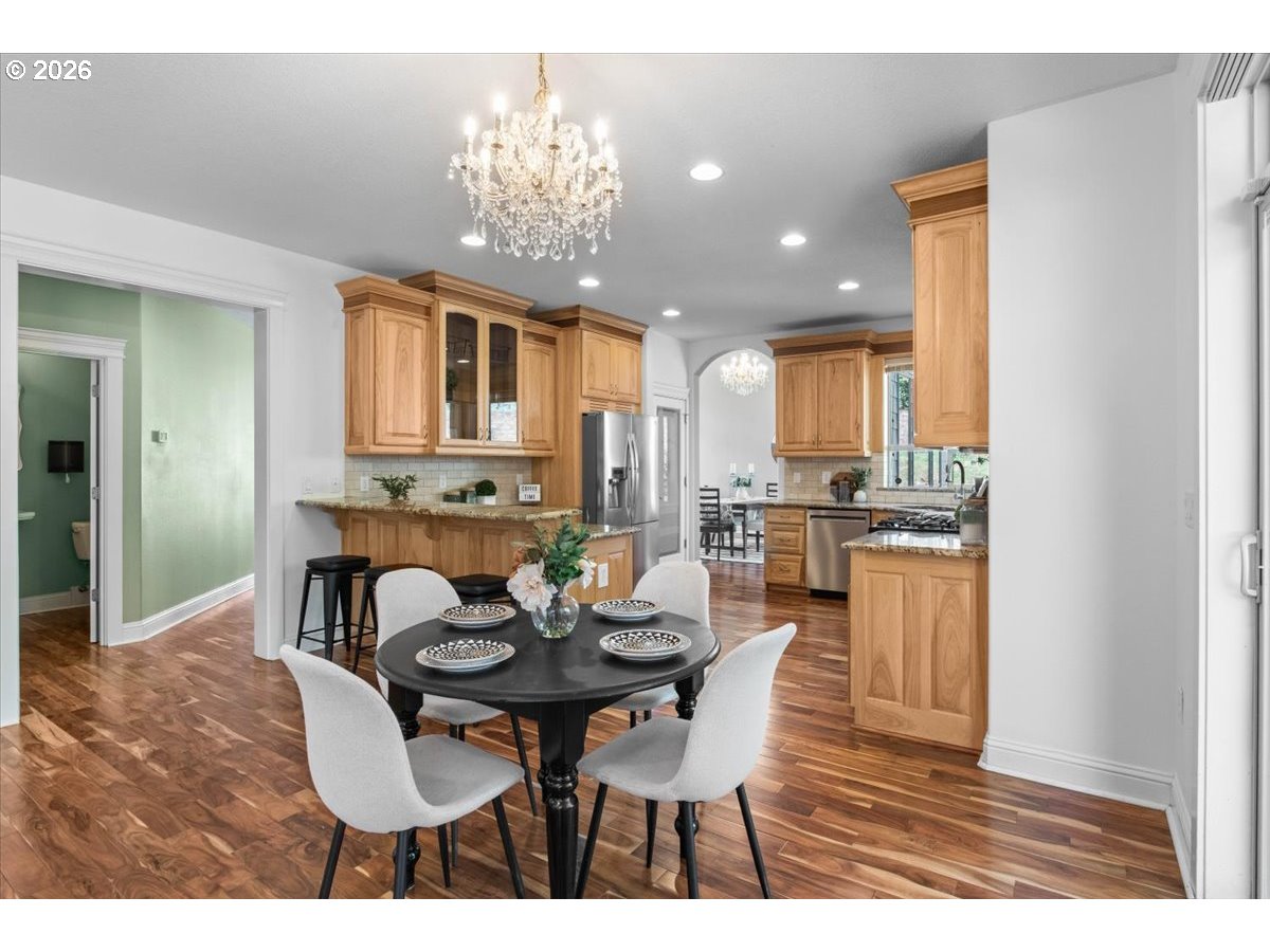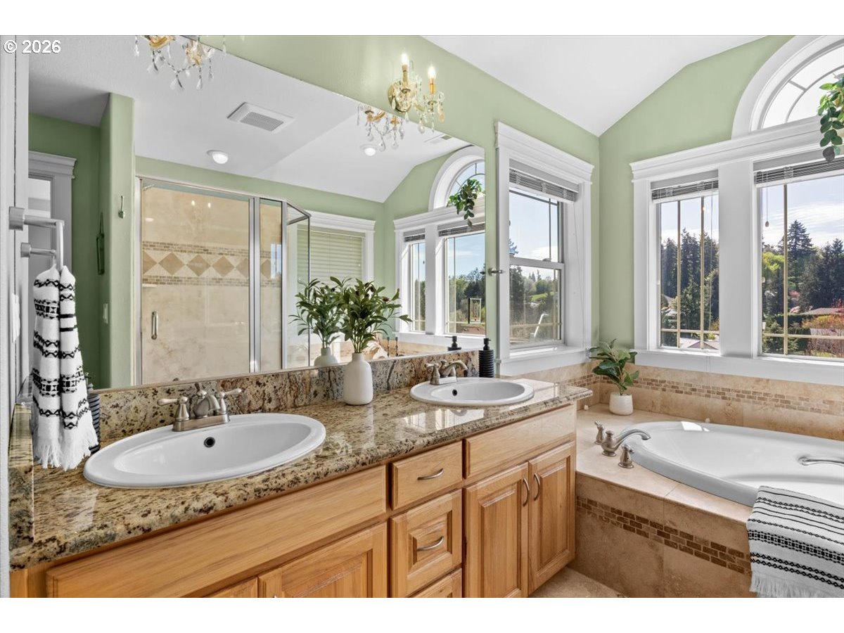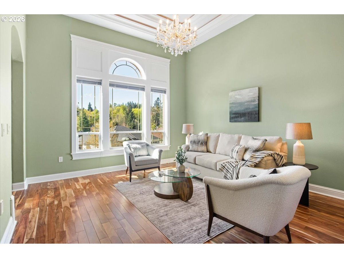 Executive-style home on 2 tax lots, offering space, elegance & distinctive design. A grand two-story entry, open staircase & statement chandelier. 3,164 SF, 5BR + office. Acacia hardwood flooring-Formal living w/12+ ft ceilings, tray ceilings & crown molding. Gourmet kitchen w/granite, stainless steel appliances, gas range & double ovens. 13 chandeliers & spacious 3-car garage. Updates include furnace/AC, Trex deck, & copper gutters. Ideally located near parks, schools & scenic neighborhood walking routes.