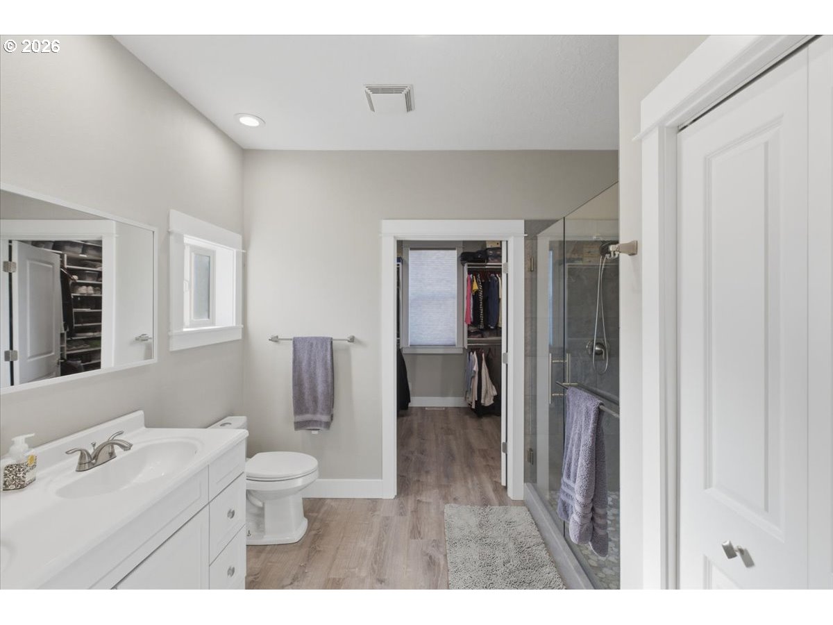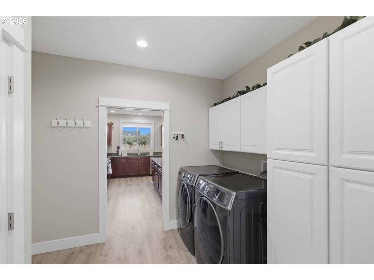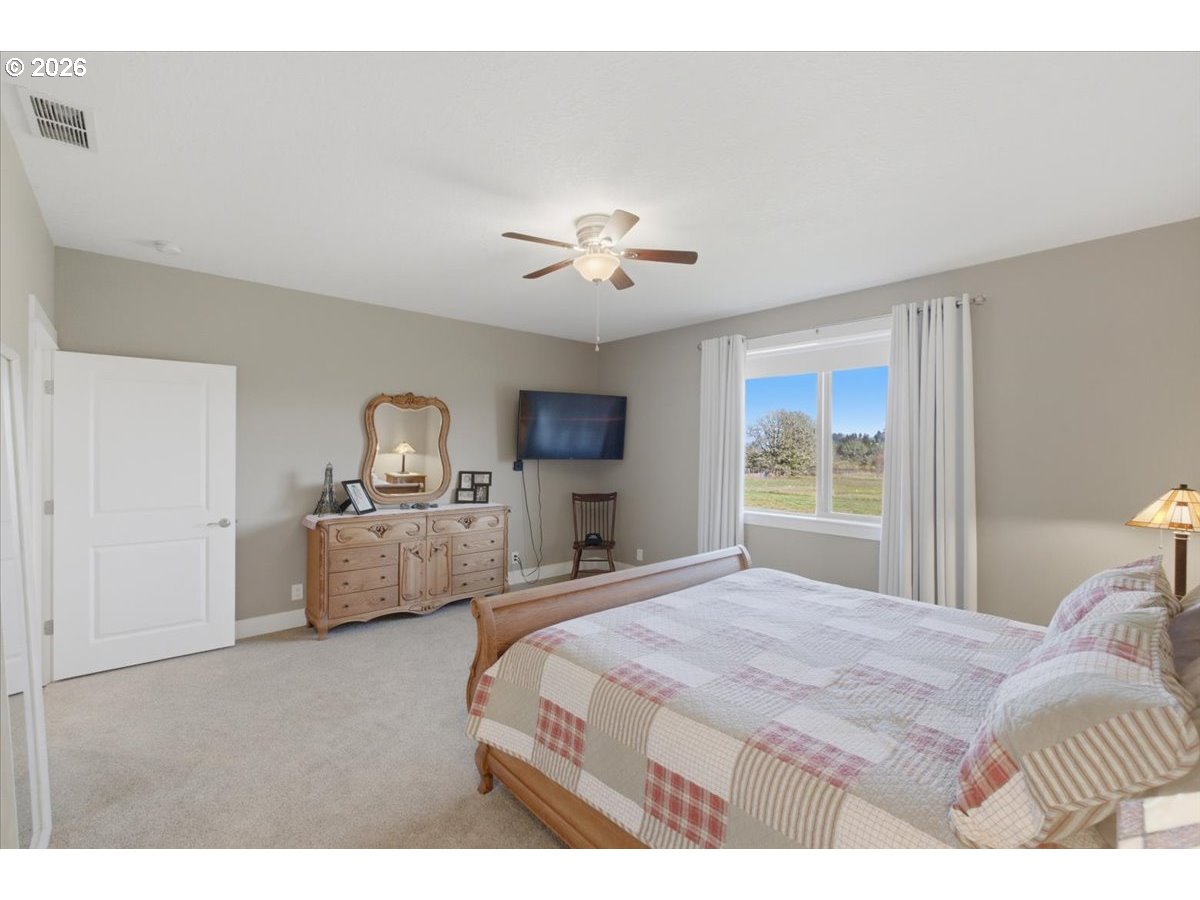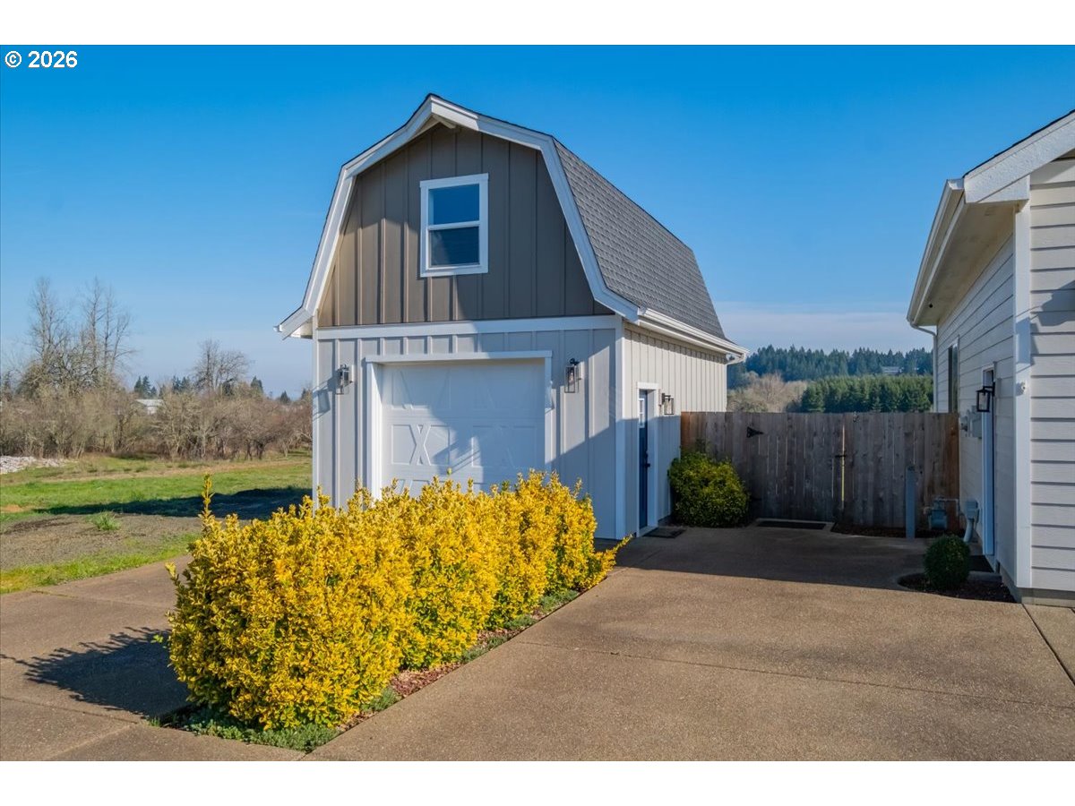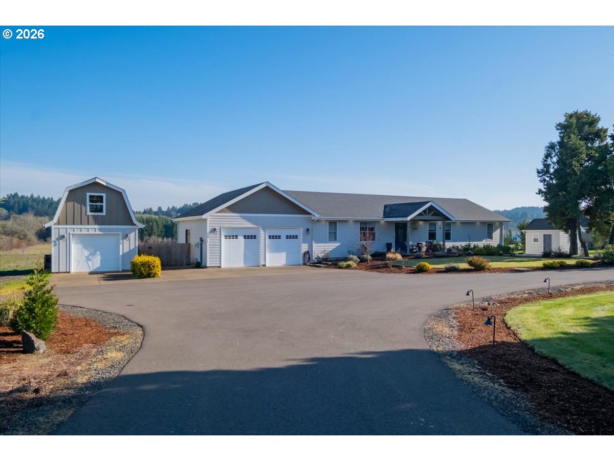 This stunning acreage property offers a beautifully renovated, single-level home on 2.67 acres, an exceptional shop and sweeping pastoral views! The light filled, open concept floor plan features wide plank LVP flooring and a cozy gas fireplace, all perfectly positioned to capture the views through expansive windows. The spacious kitchen offers an oversized island, granite counters and S.S appliances. The primary suite is a true retreat with a spa style tile shower and an impressive custom walk-in closet. Enjoy seamless indoor-outdoor living on the back deck overlooking peaceful fields and the rolling hills beyond. This property truly shines with RV parking, raised garden beds, a separate shed and a two-story shop featuring a freight elevator, heat and 220v power. The attached 3+ car tandem garage also provides 832 sq.ft of additional space for hobbies, storage and workshop use. Other highlights include Tesla solar panels, a paved circular driveway, accent lights, UGS, low taxes and three separate tax lots which offer excellent flexibility and multiple use potential. This is a rare opportunity to enjoy a quiet, rural lifestyle while still benefiting from city services, utilities and convenient access to everyday amenities.
