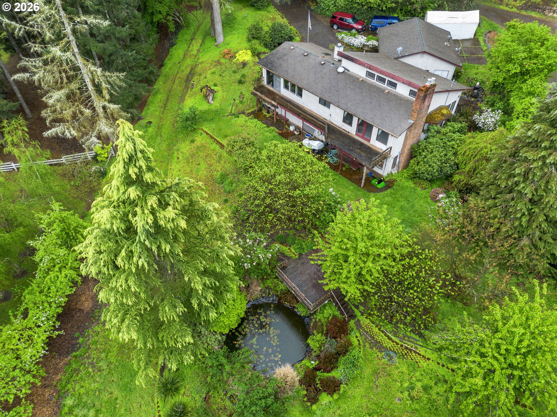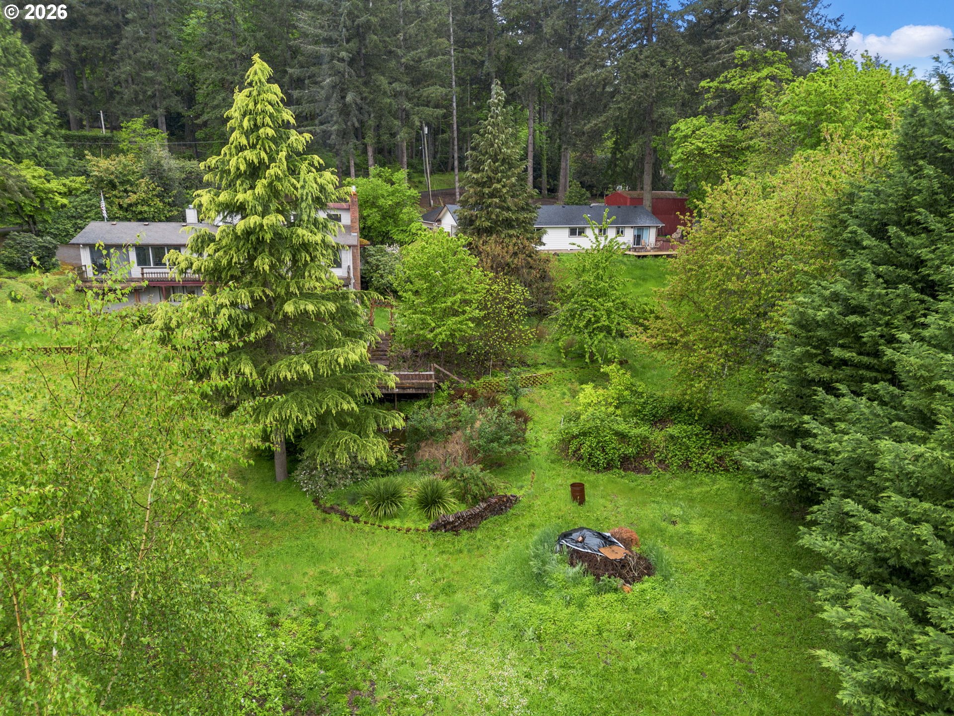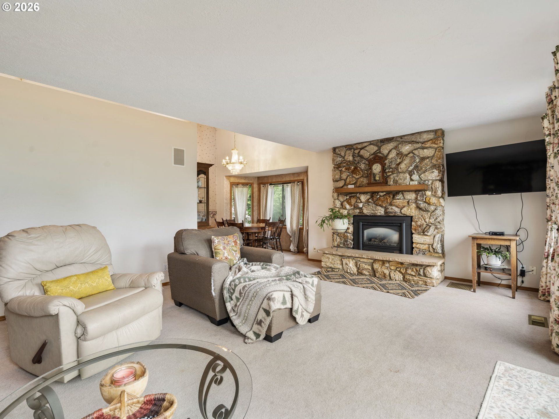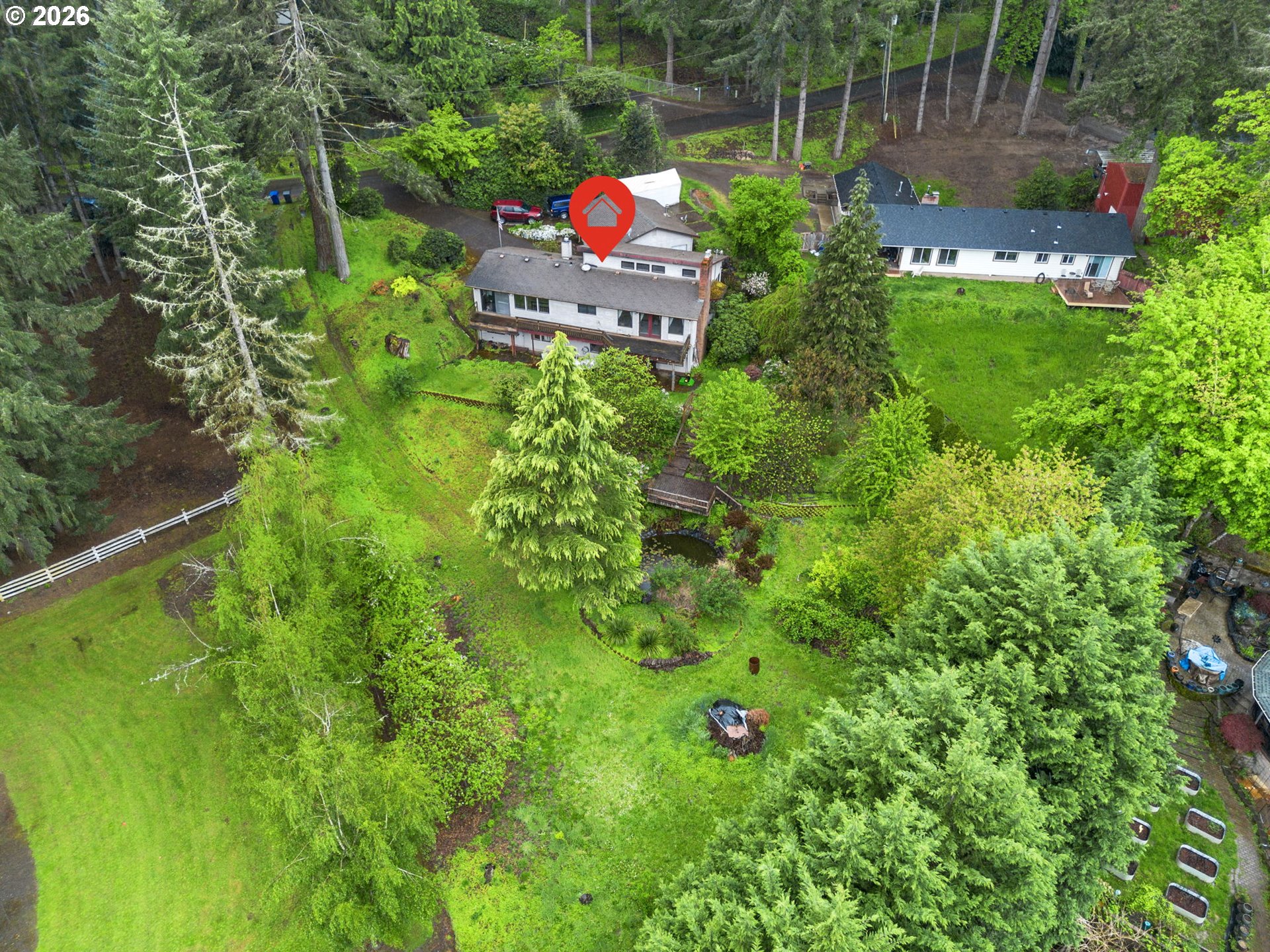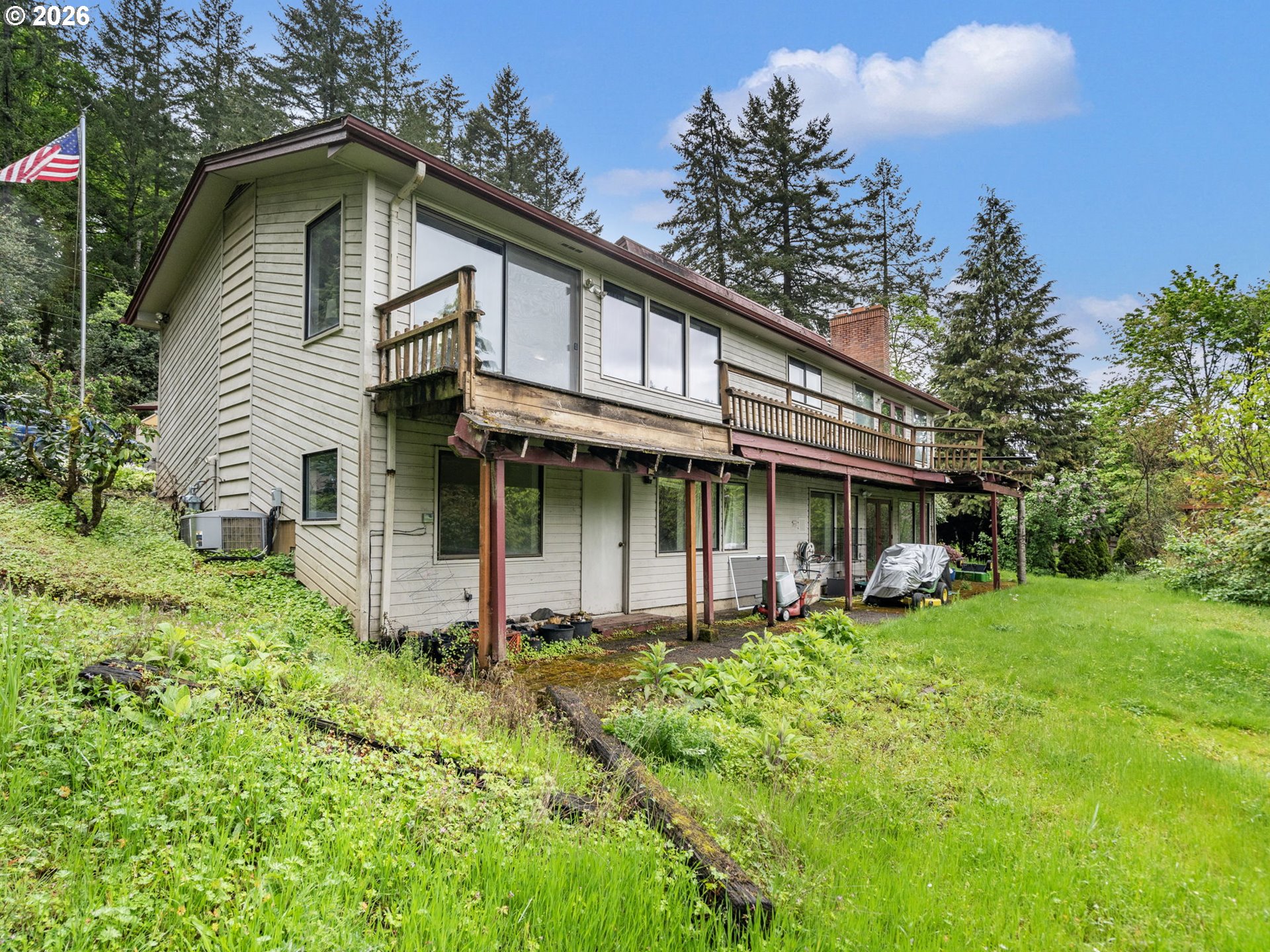 Incredible Opportunity on Nearly an Acre in NW Salem – A Ranch with Endless Potential! Nestled in the peaceful hills of NW Salem, this spacious property offers a rare chance to own a large home on 0.85 acres of serene, private land. Full of charm and character, this property is ready for your vision and updates—perfect for buyers looking to build equity and create their dream home. Features 4 beds/2.1 baths, 3056 SF, the home boasts a well-designed layout with high ceilings, skylights & bonus rooms that provide flexibility for a home office, hobby space or additional living areas. The interior is finished with carpet flooring throughout, and two gas fireplaces—one on each level. The main living areas flow comfortably, while the basement expands your options for multi-generational living or guest quarters. Formal living & dining rooms leads to a spacious kitchen offering built-in-appliances-dishwasher, range & oven, island, fridge, tile countertops, ample cabinetry & a breakfast nook overlooking the greenery around. Two bedrooms on main including the private suite offers a sitting area, a slider deck access & an ensuite bath with walk-in-closet & shower. The basement features a large family room, a wet bar, two bedrooms, bonus room, storage room & laundry room with washer/dryer. Major systems include a forced air gas furnace with central AC & gas water heater. The home is serviced by public water & septic system. A brand new water line runs from the meter to the home, offering added peace of mind. Outside, enjoy the tranquil setting, complete with a pond in the backyard, decks, patios, mature surroundings & plenty of room for garden. A detached oversized 2-car garage provides ample storage. The home needs TLC but has endless potential. A true diamond in the rough with exceptional upside potential. Bring your vision and unlock the possibilities!