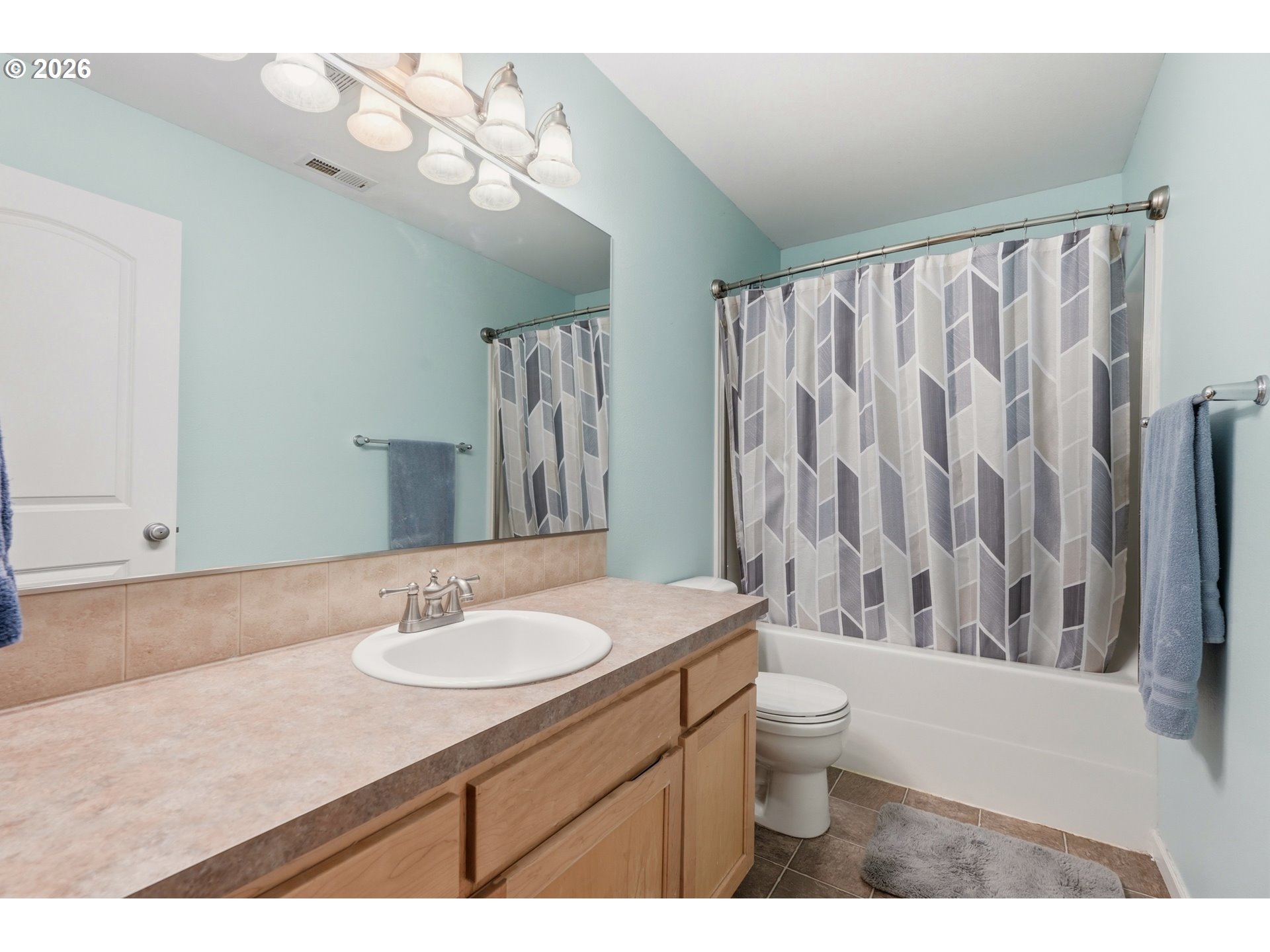 Charming 3-bedroom, 3-bath home tucked into a quiet cul-de-sac right by the park! Bonus room that could easily be a fourthbedroom, office, or hangout space. The cozy gas fireplace makesthe living area feel warm and inviting, and the spacious primarysuite is a perfect place to unwind, with a soaking tub andseparate shower. New covered patio for outdoor entertaining.