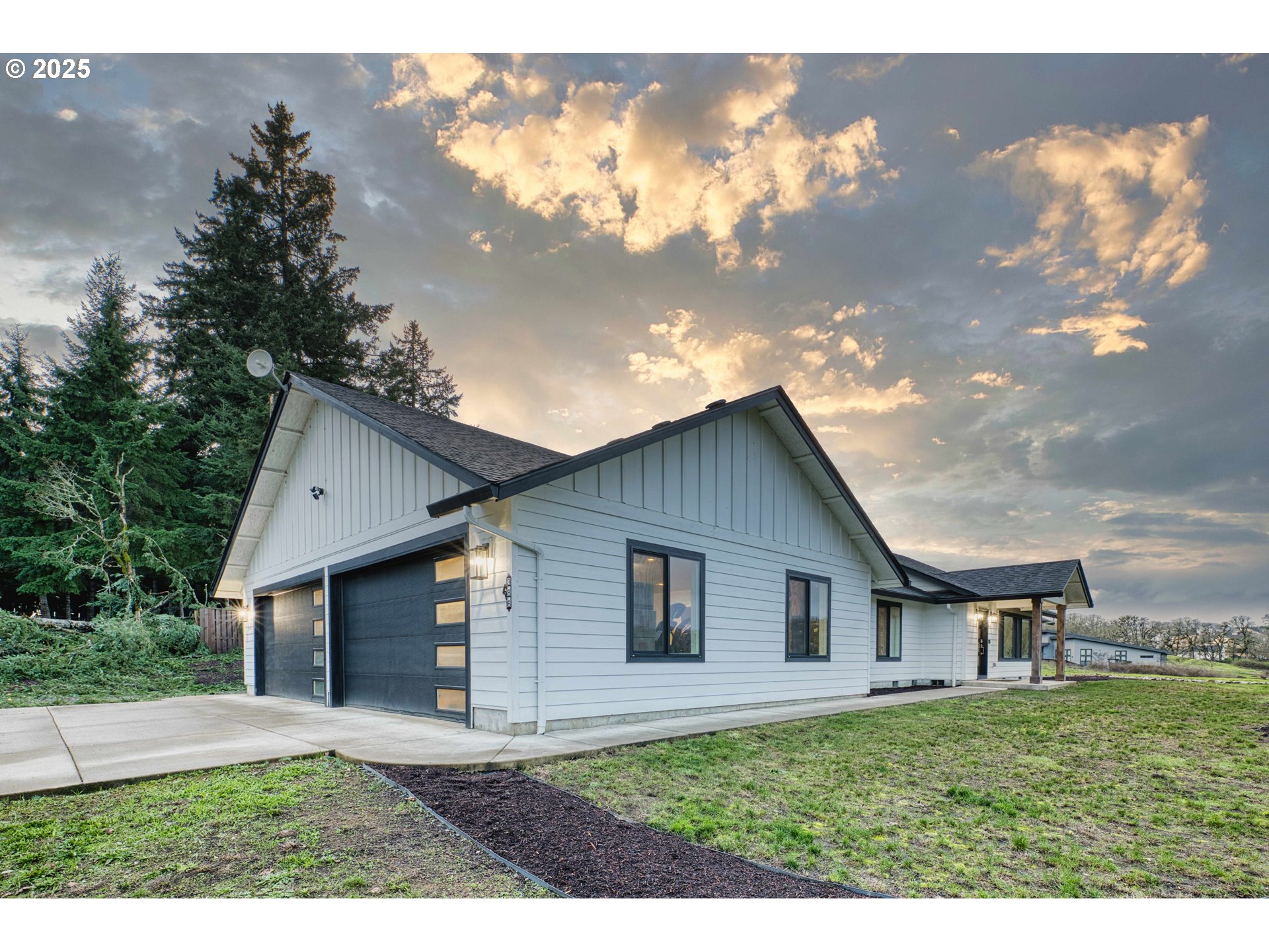 Exquisite single-level luxury home built in 2021, offering three bedrooms and two baths on five acres. This refined residence showcases a chef’s kitchen with high-end finishes, a large pantry, vaulted and soaring ceilings, and a thoughtfully designed open floor plan. The primary suite is a private retreat, complete with a spa-inspired walk-in shower, dual sinks, quartz countertops, and a generous walk-in closet. The backyard is designed for both relaxation and recreation, featuring a fenced area, covered patio, and a hot tub. A spacious 1,200 sqft finished four-car garage adds both convenience and functionality, while the expansive acreage provides privacy, space, and endless possibilities—all wrapped in effortless one-level living. Fully paved drive to the home. Peaceful living with convenient access to restaurants, shopping, parks and local amenities.