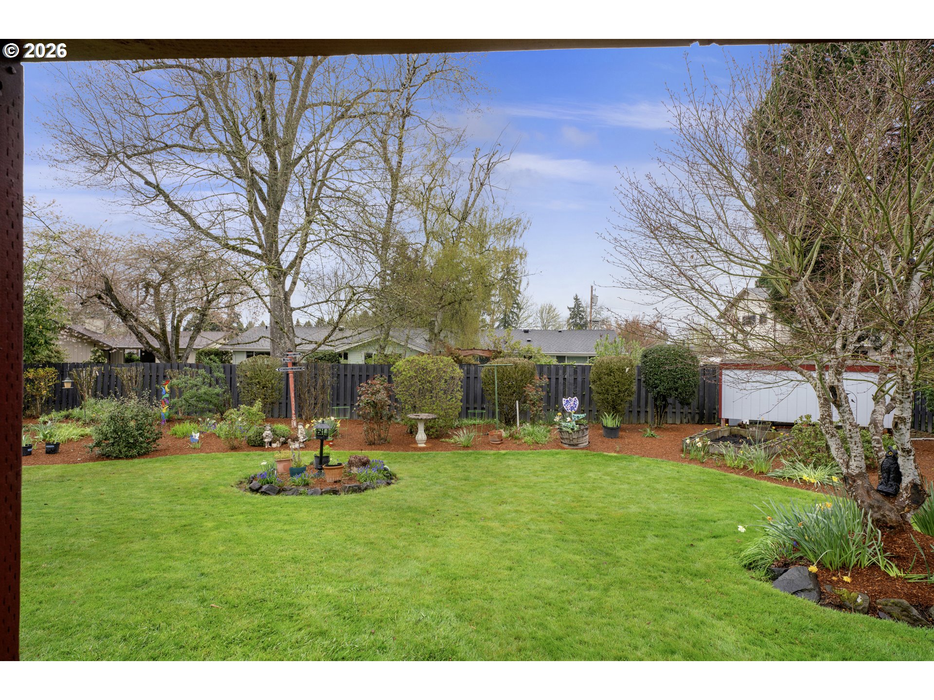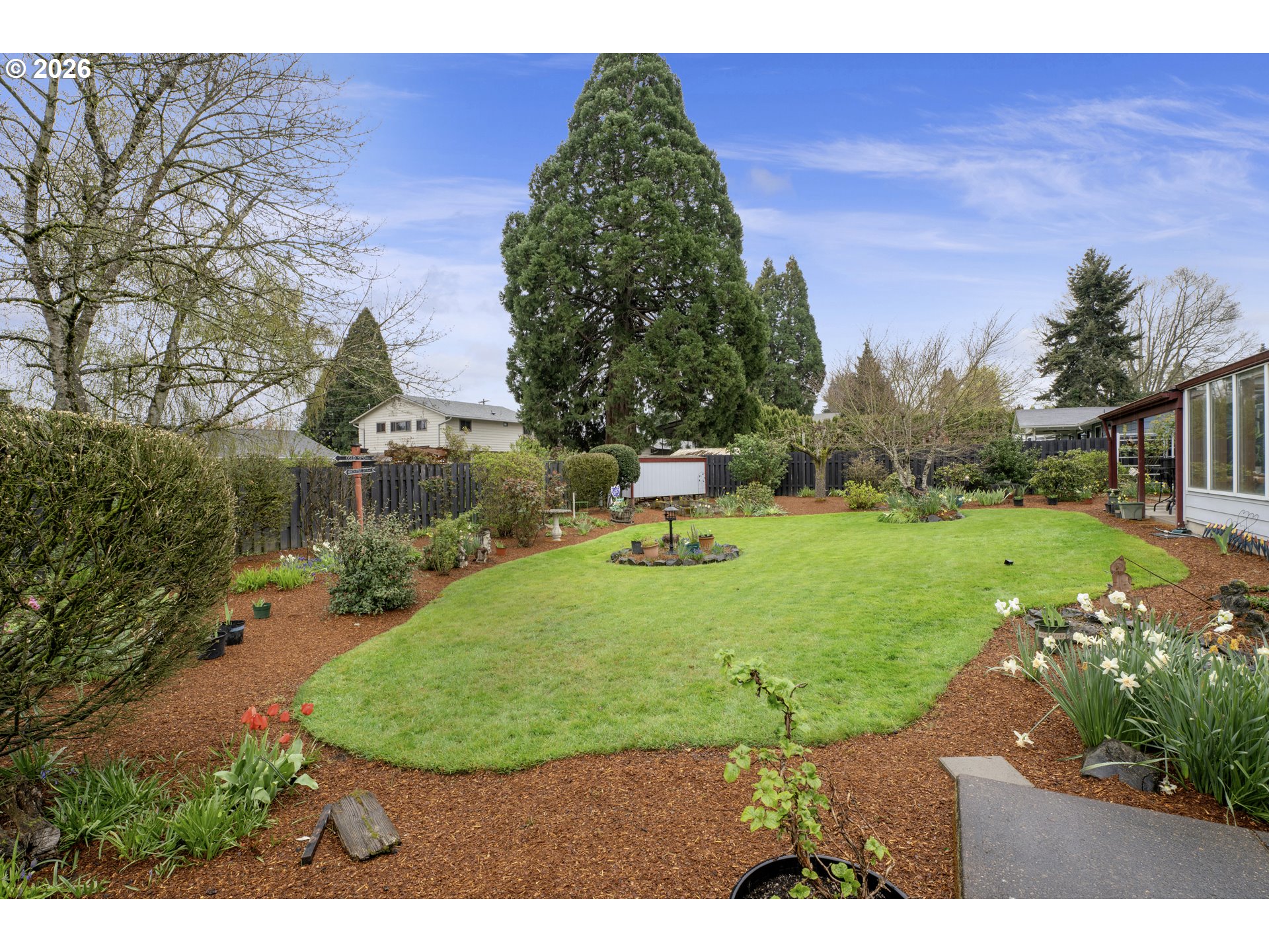 Welcome home to this beautifully maintained and thoughtfully designed property, where comfort, charm, and functionality come together in perfect balance. Situated close to shopping, restaurants & more, this inviting residence offers exceptional curb appeal with its manicured landscaping, lush green lawn, hardi-plank siding, and welcoming covered front porch Step inside the enclosed entry and you’re greeted by a spacious living area featuring abundant natural light, built-ins, china cabinets, beamed ceilings, a cozy fireplace.The sunroom, surrounded by expansive windows and natural wood accents, creates a light-filled retreat where you can enjoy the beauty of every season from the comfort of indoors.The kitchen features ample cabinetry, pull out drawers, pantry cabinets, generous counter space, and a convenient breakfast bar—perfect for casual meals or hosting guests with an adjacent dining space including a charming breakfast nook with views of the manicured lawn. Throughout the home, you’ll find four well-sized bedrooms that offer large closets with organizers, ceiling fans, offering comfort and versatility. The modern bathrooms are clean and functional, with thoughtful storage and layout that support busy lifestyles.One of the standout features of this home is the additional living space, complete with its own cozy fireplace, separate entrance from the yard, and flexible layout—ideal for a second living room, hobby area, or multi-generational living.Step outside into a backyard that truly feels like a private oasis. Beautifully landscaped w/ mature trees, tool shed, wood shed, garden beds, and open lawn space, it’s perfect for entertaining, gardening, or simply enjoying the outdoors. The covered patio provides year-round usability, making it easy to host gatherings or enjoy quiet evenings regardless of the season. The gated side allows for more parking space, and possible parking for a small boat or RV. This home is move in ready and waiting for you!