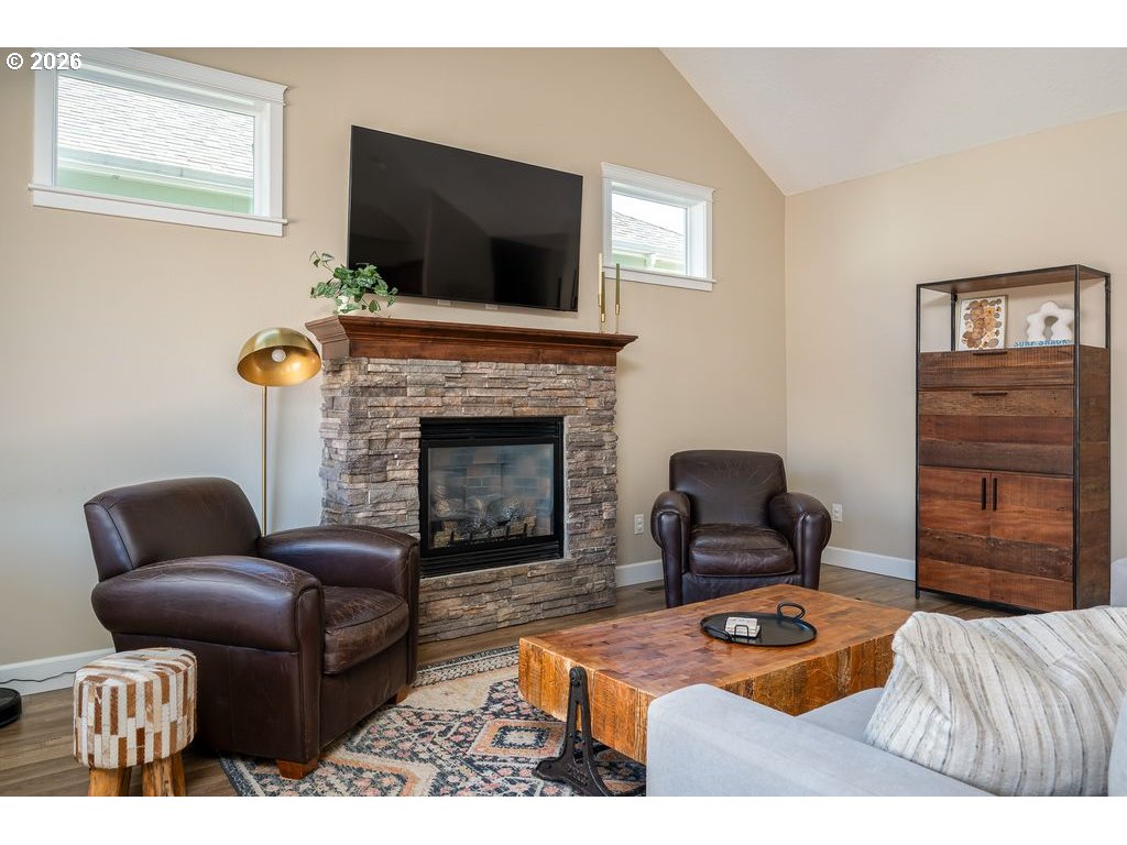Welcome to this beautifully crafted 3-bedroom, 2.5-bath home built in 2016, offering a perfect blend of comfort, style, and functionality. The main-level primary suite features elegant pan ceilings, a spacious walk-in closet, and a luxurious en-suite bath complete with elaborate tile work and a walk-in shower. The open-concept living room is filled with natural light and showcases soaring vaulted ceilings and a stunning cultured stone fireplace—perfect for relaxing or entertaining. The kitchen is well-appointed with granite countertops, a double-basin stainless steel sink, and gas appliances, making it both stylish and practical for everyday living. A dedicated den or office with French doors is conveniently located on the main level, ideal for remote work or a quiet retreat. Upstairs, you'll find a large bonus room offering flexible space for a media room, playroom, or additional living area. Outside, enjoy a beautifully landscaped front and back yard with a full sprinkler system, a fully fenced yard, and a partially covered patio and bonus sun Trex deck—perfect for outdoor gatherings. The property also features large gated RV parking, providing ample space for your recreational vehicles. This move-in-ready home offers thoughtful design and modern amenities—don’t miss your opportunity to make it yours!